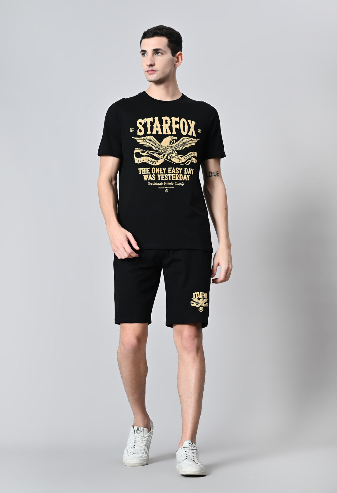 Raven Black Puff Printed Round Neck With Shorts Co-Ord Set