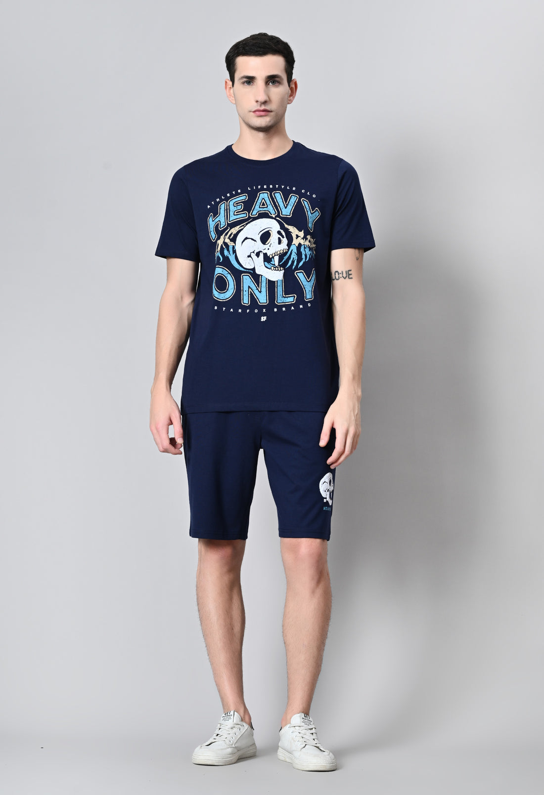 Navy Blue Puff Printed Round Neck With Shorts Co-Ord Set