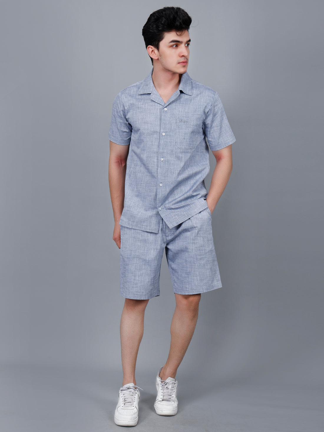 Indulge in timeless elegance with our Grey Shirt and Shorts Co-ord Set, crafted from pure...