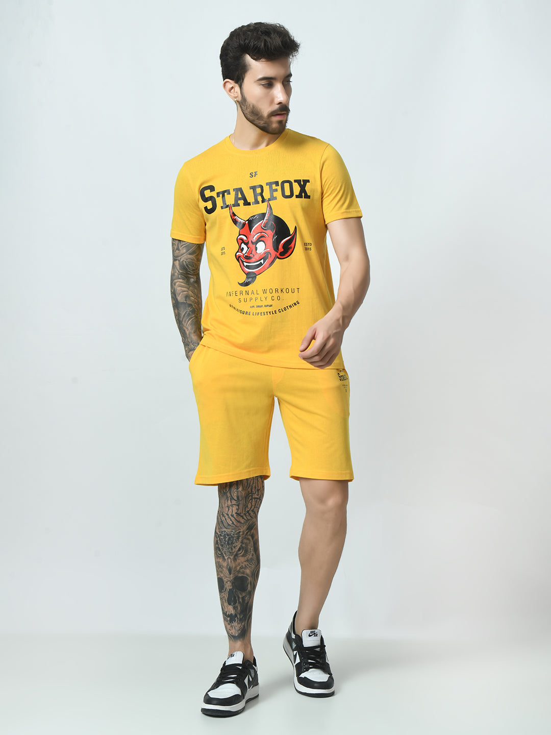 Yellow Printed T-Shirt With Shorts Co-Ord Set