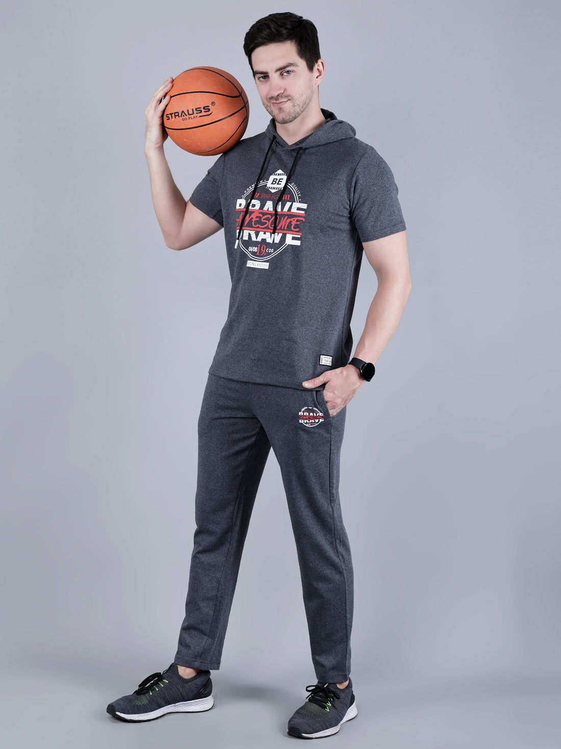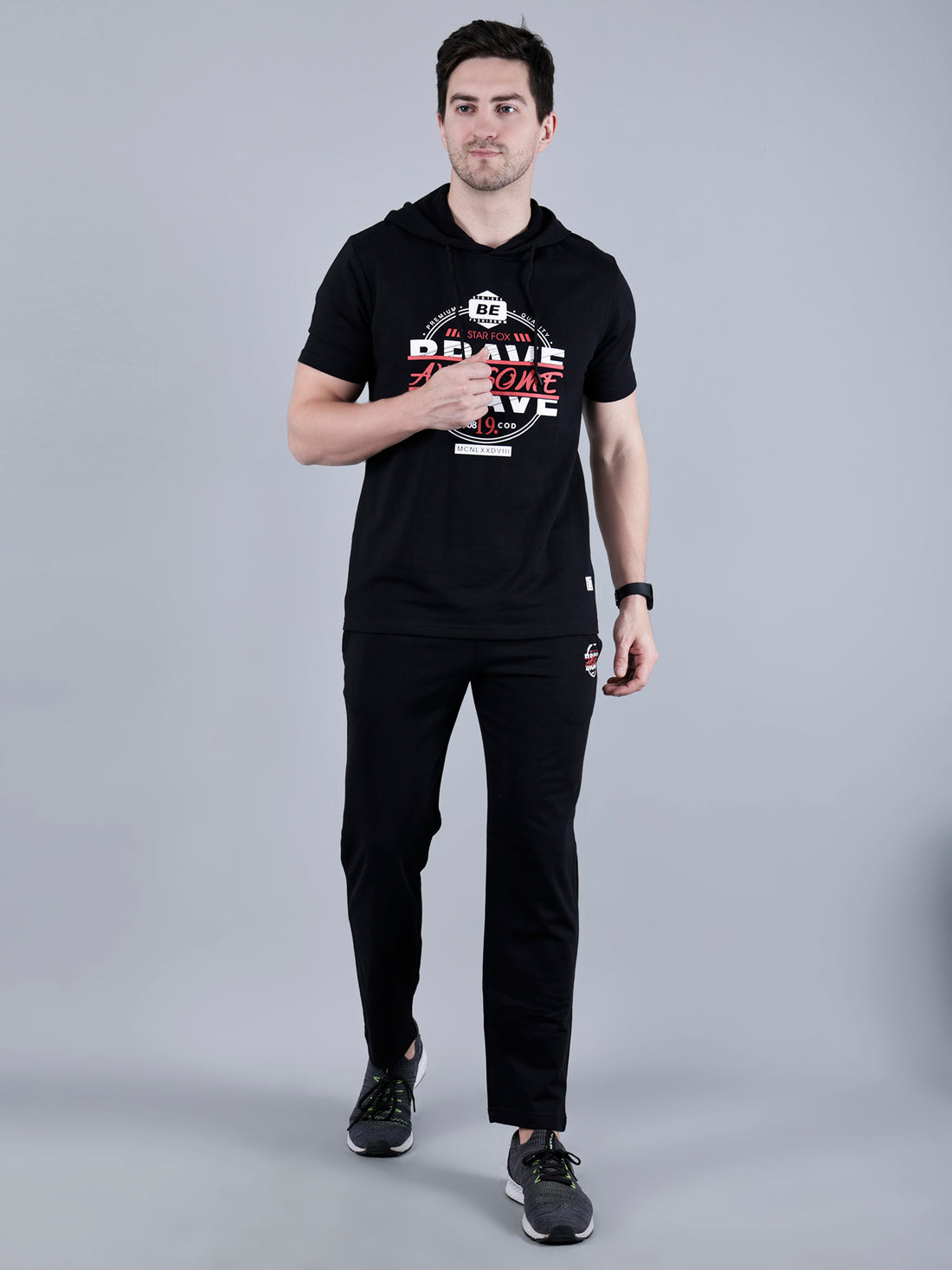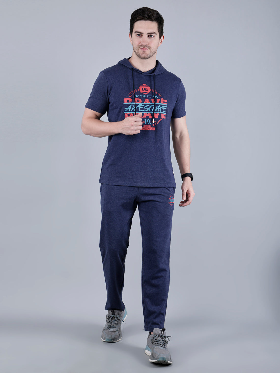 Printed Co-ord Set with Hooded T-shirt and Lower