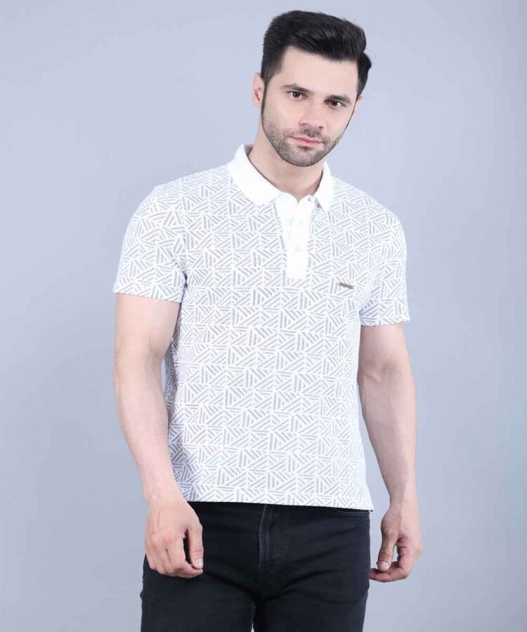 Introduce a touch of luxury to your wardrobe with our Geometrical All Over Printed Pique...