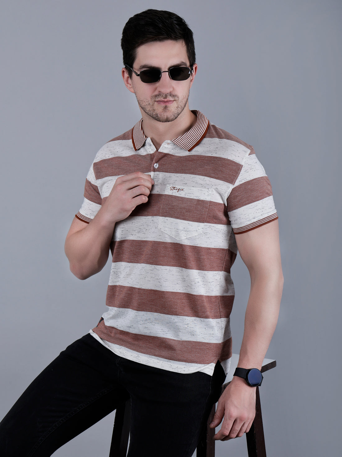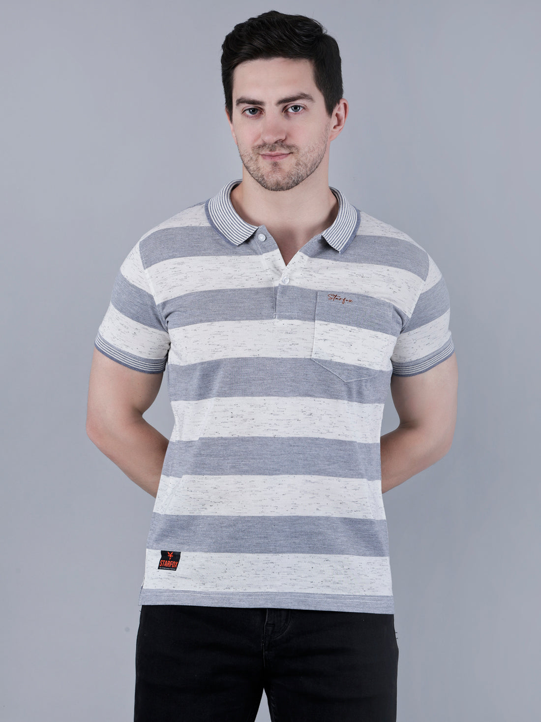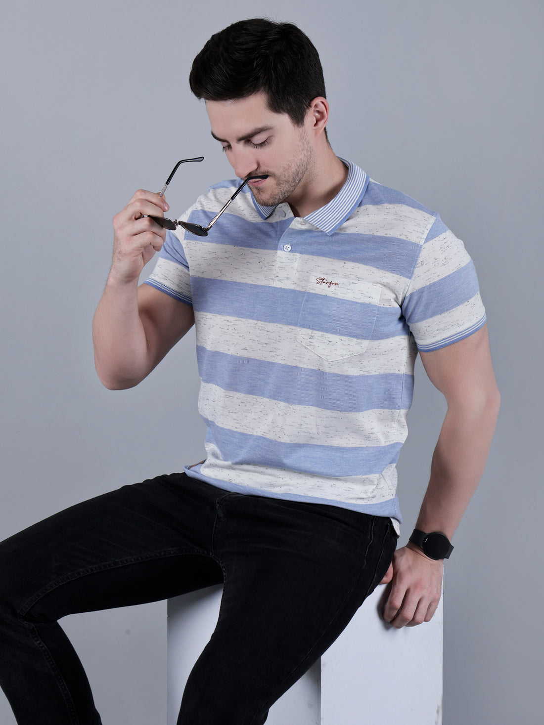 Men's Striped Polo Neck Cotton Blend T-Shirt
