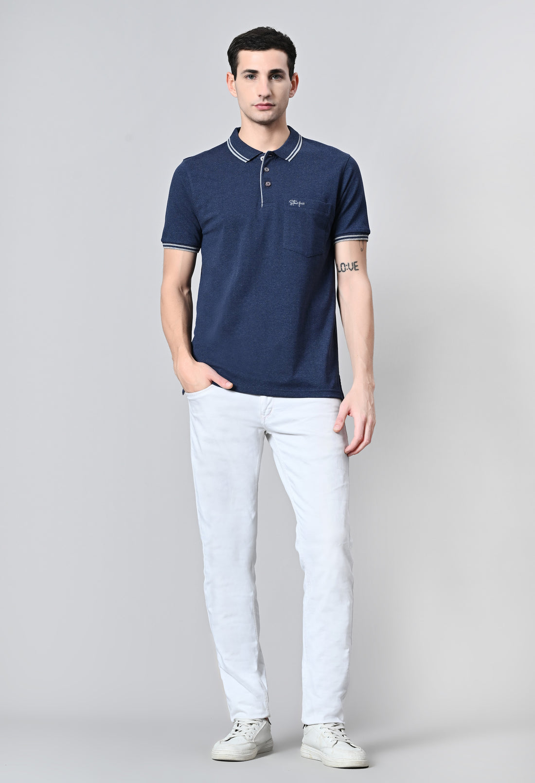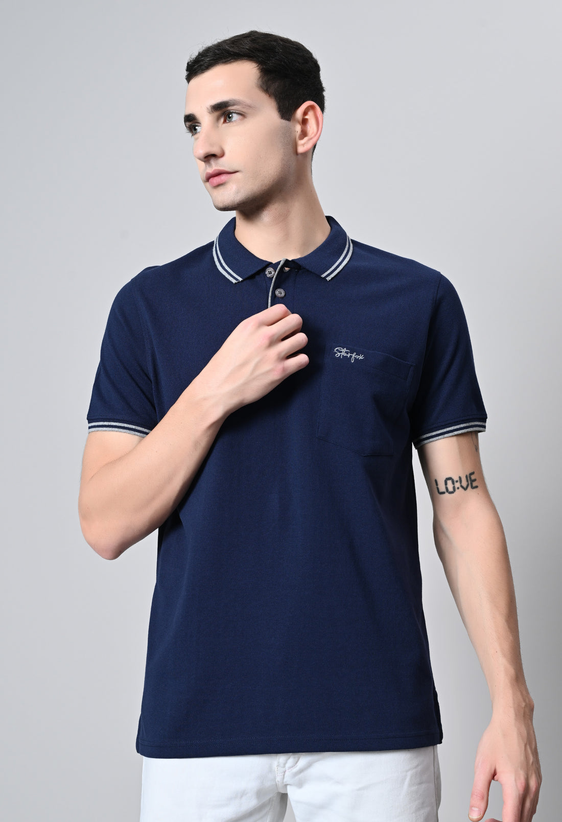 Navy Tipping Polo Half Sleeve T-Shirt with Pocket