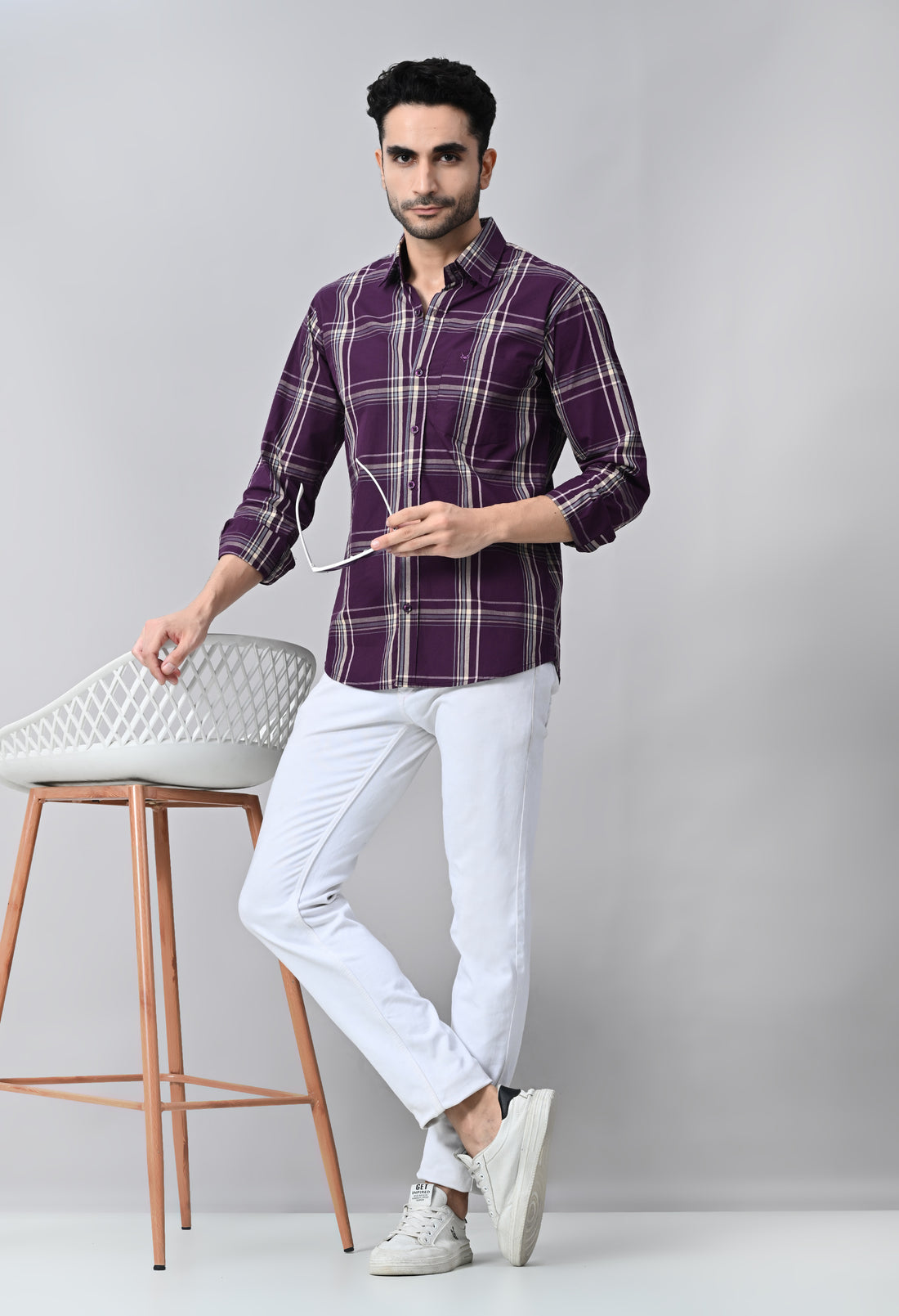 Elevate your formal wardrobe with our Purple Checked Formal Shirt. Crafted with a stylish windowpane...