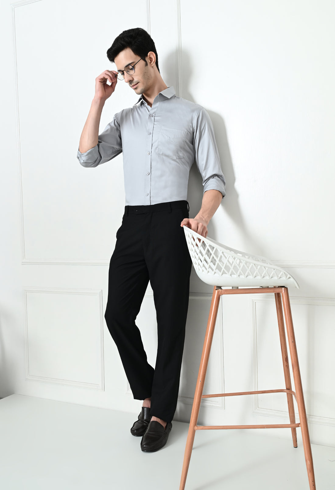 Elevate your formal wardrobe with our Light Grey and Black Checked Formal Shirt for men....