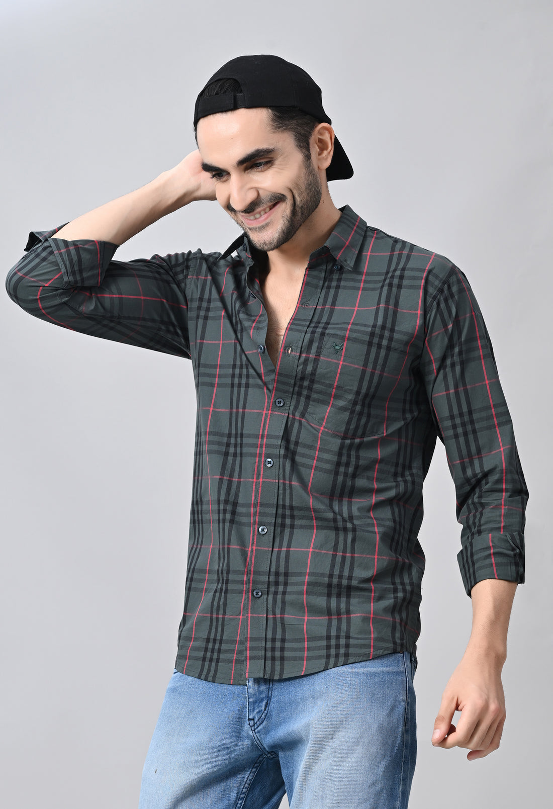 Elevate your formal wardrobe with our Light Olive and Brown Checked Cotton Shirt. Made from...
