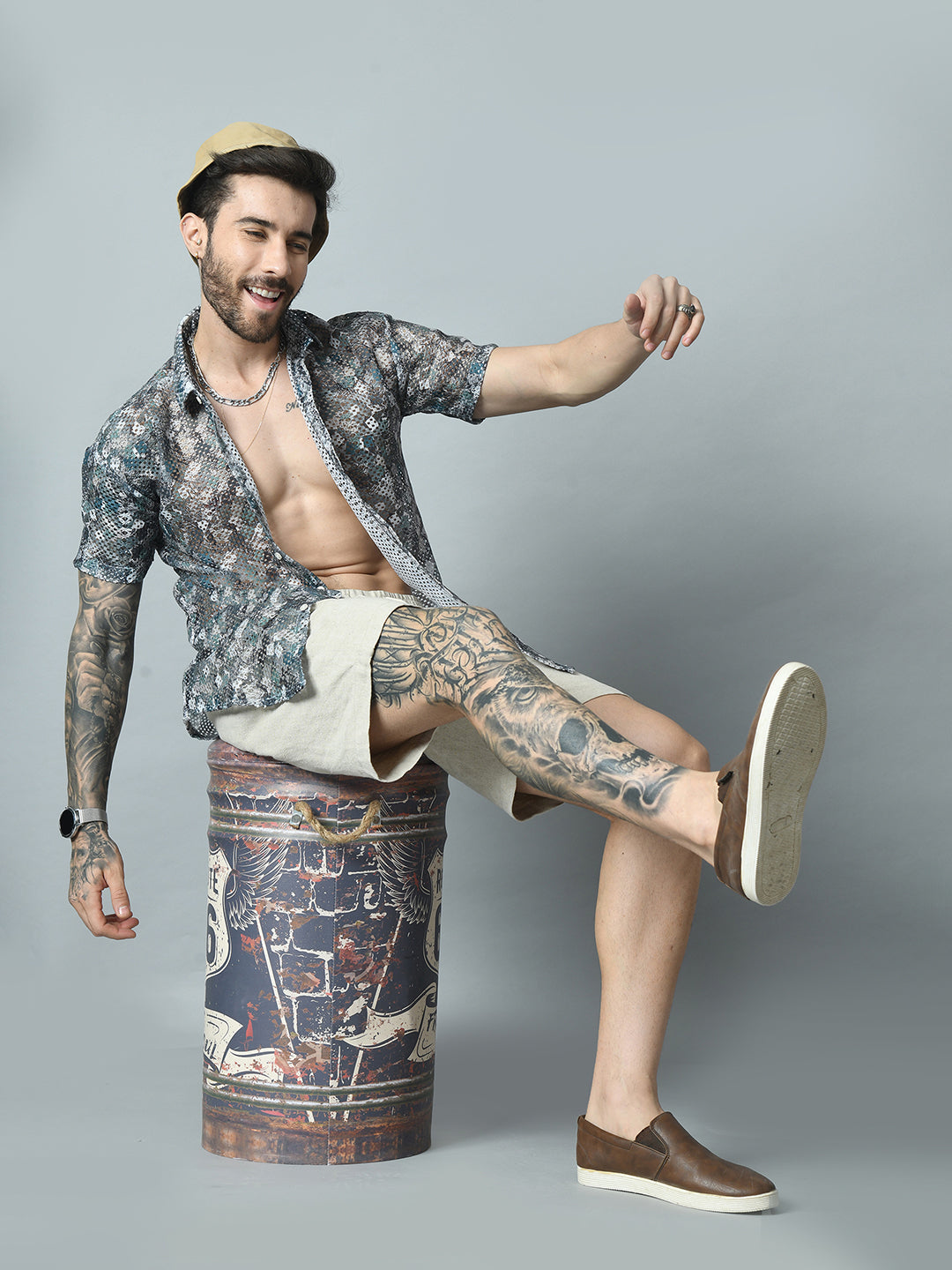 Experience the perfect blend of style and comfort with our Men Printed Round Neck Pure...