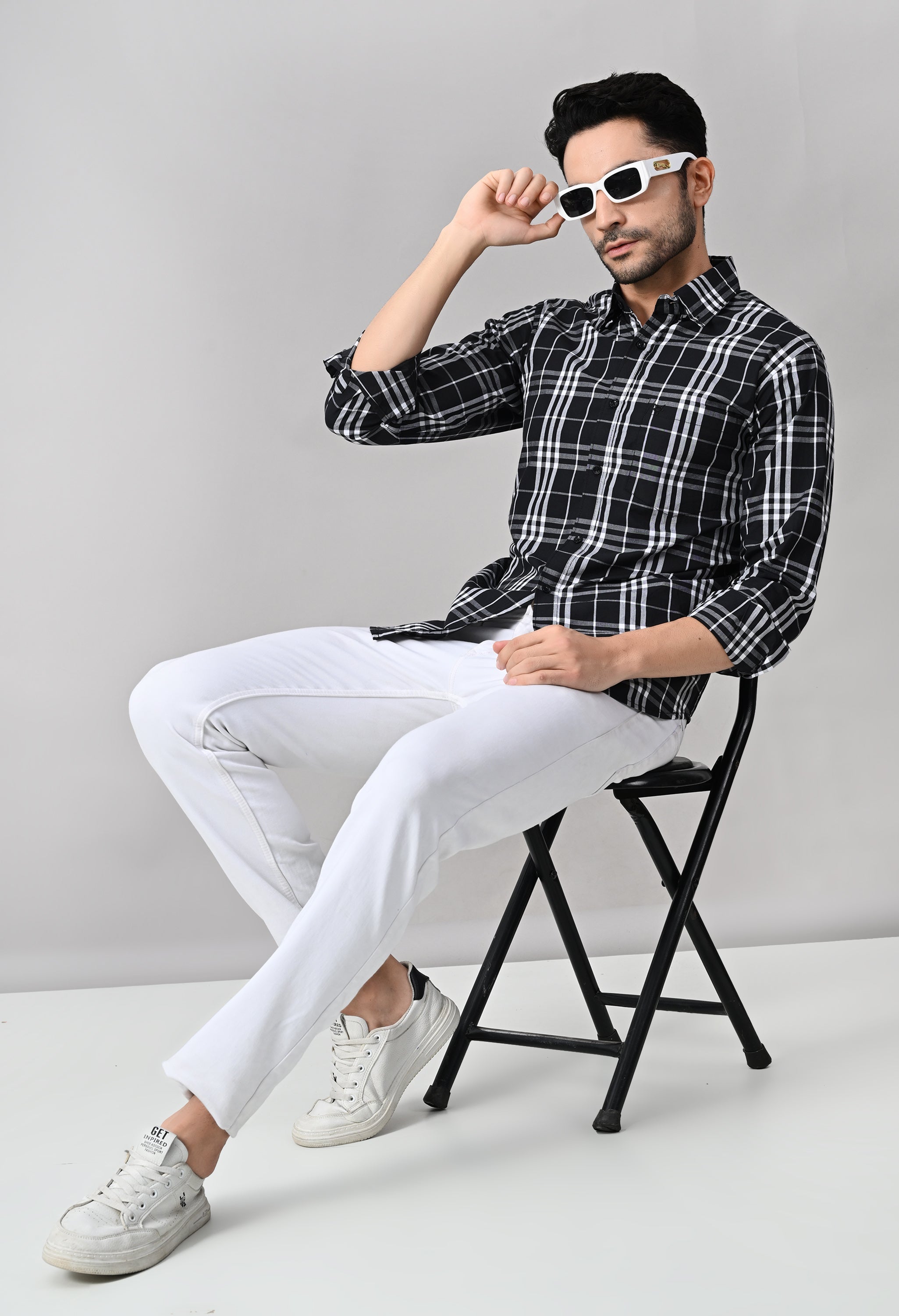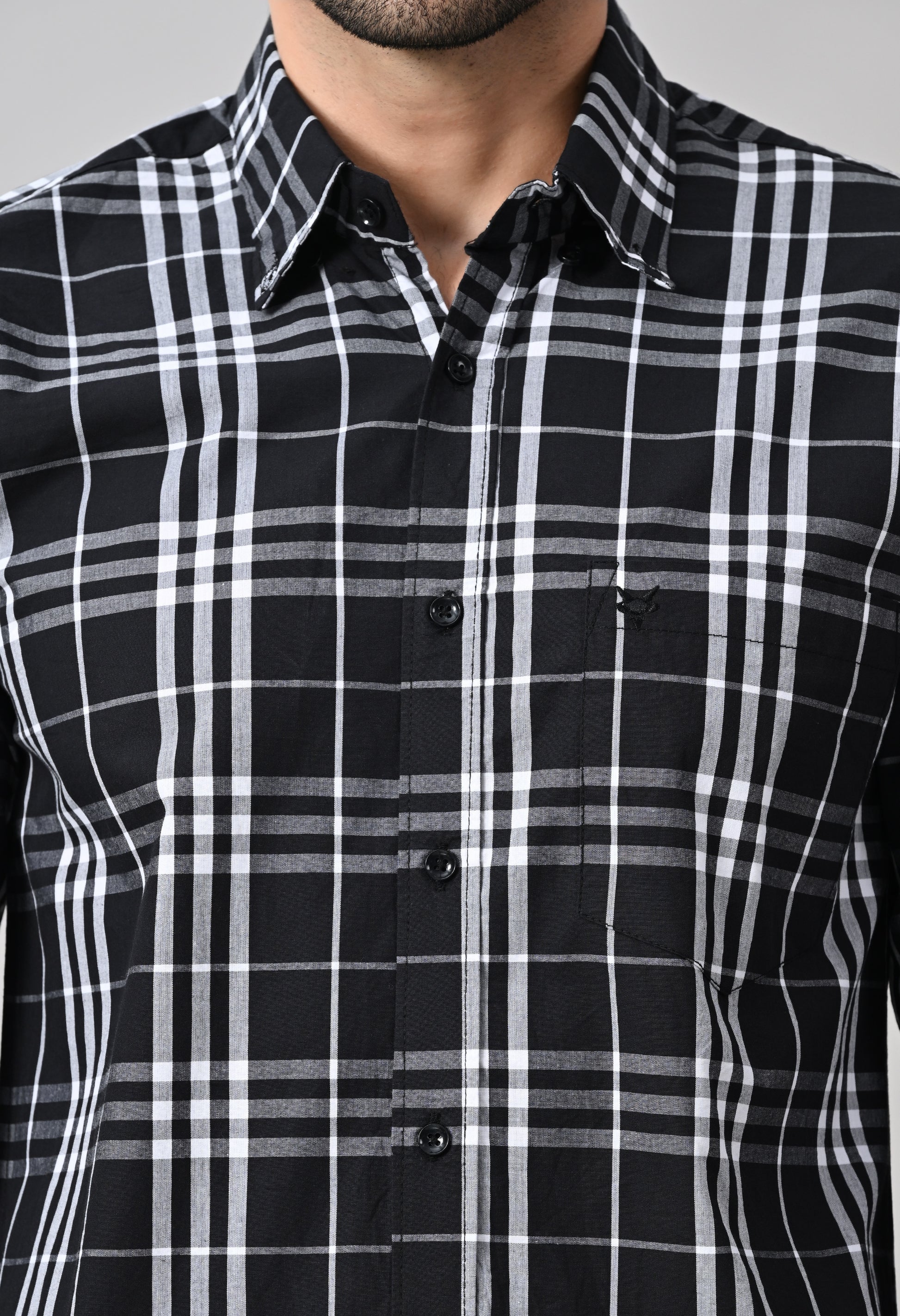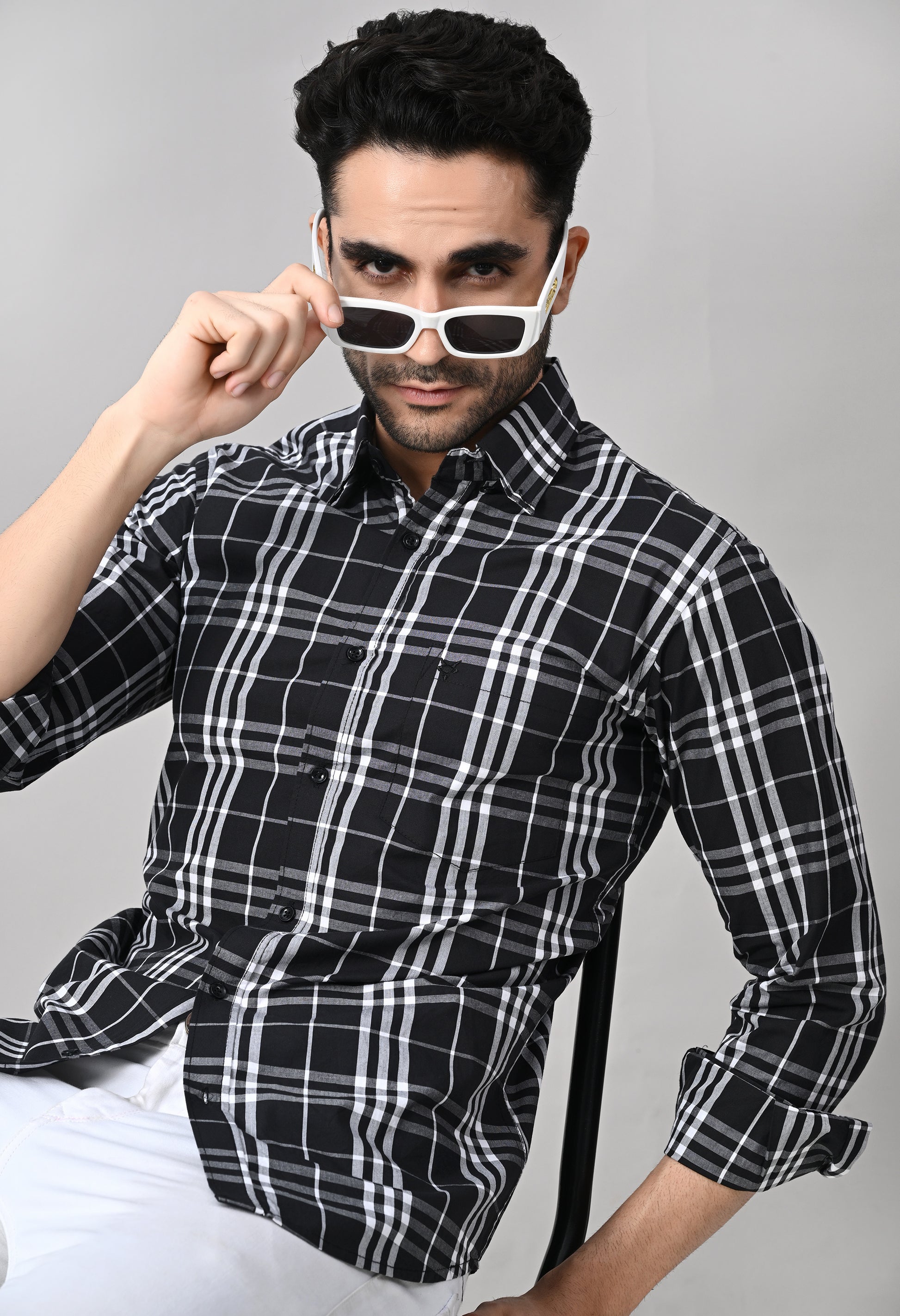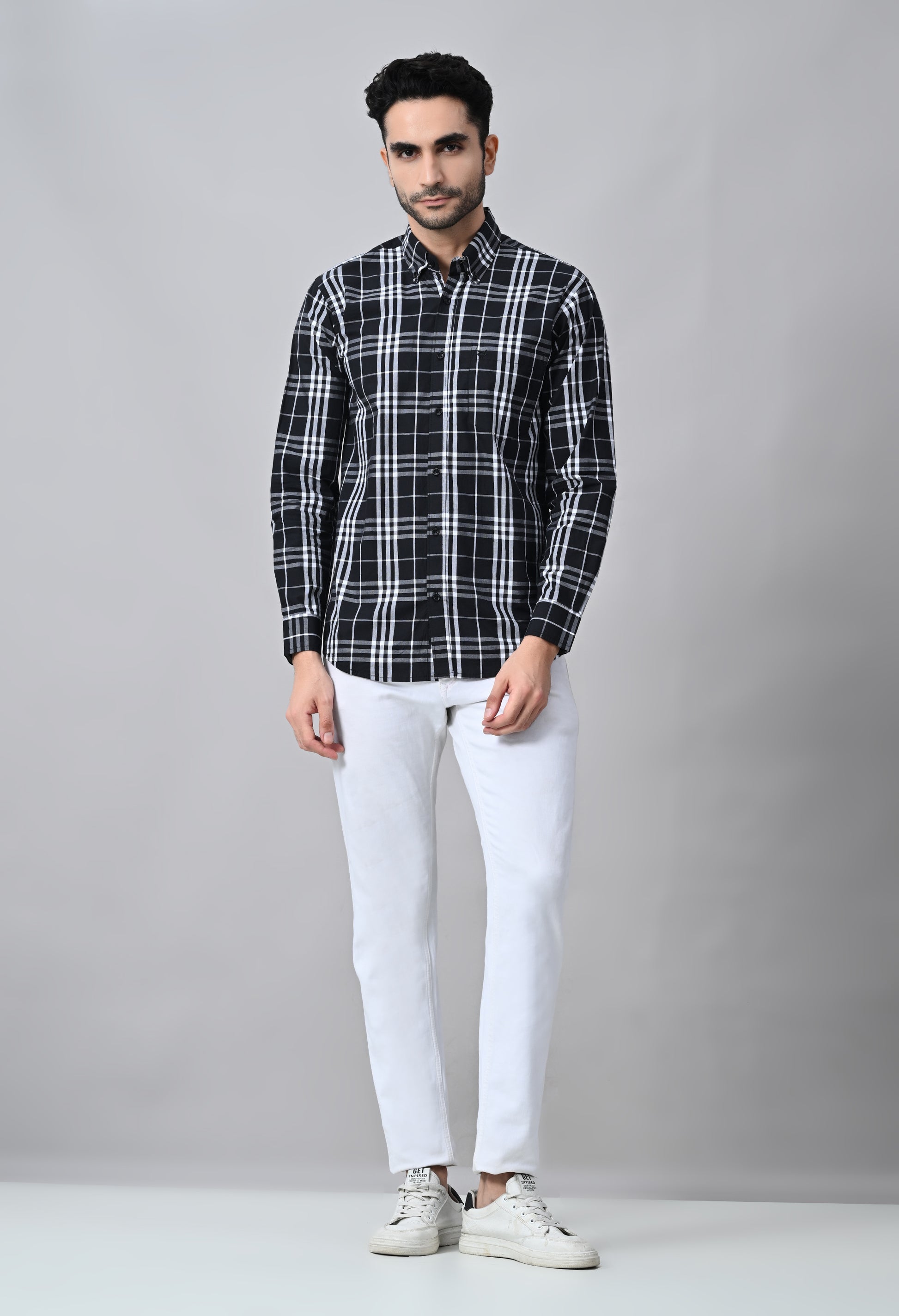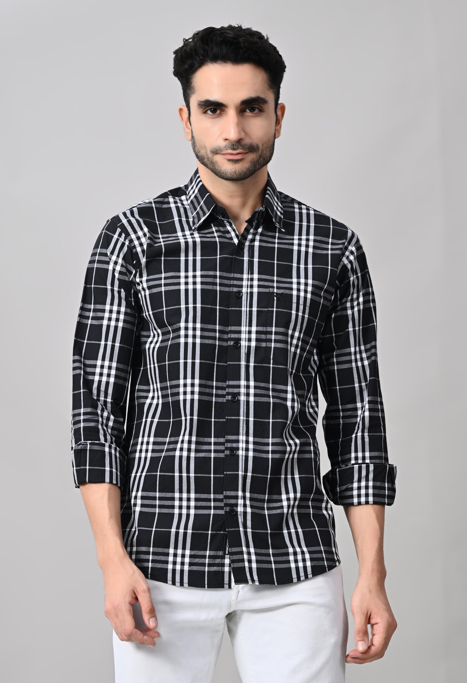 - This Item:Black And White Slim Fit Checked Cotton Shirt ₹1,799.00 ₹1,199.00