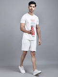 Introducing our Tshirt Regular Shorts Co-ords Set, the perfect addition to any man's wardrobe. Made from our high-quality cotton fabric and biowashed for extra softness, this set offers both style and comfort. The trendy design and graphic printed tshirt paired with 180 gsm single jersey fabric and 220 gsm loop knit fabric shorts make this set a must-have for any fashion-forward individual.