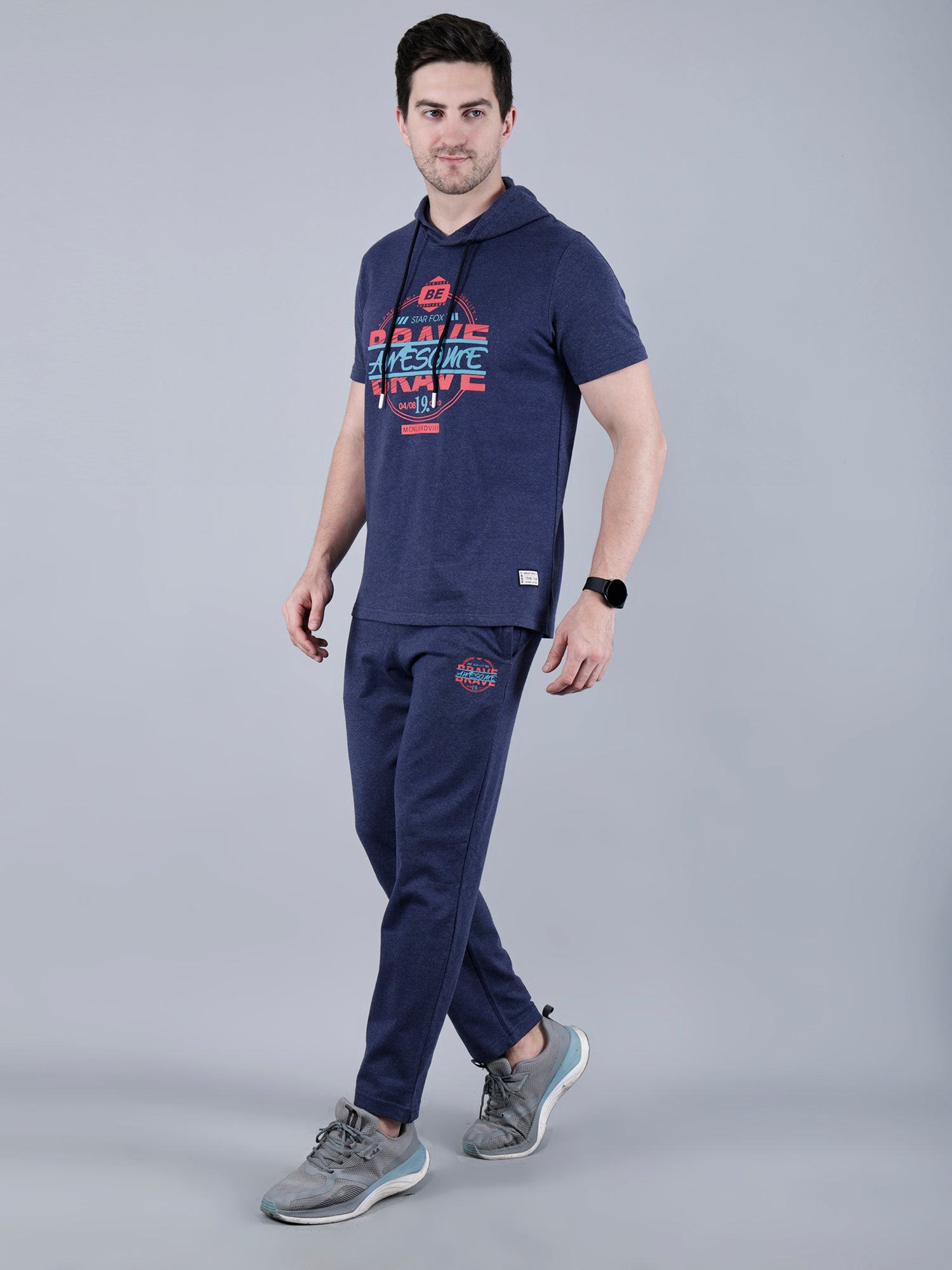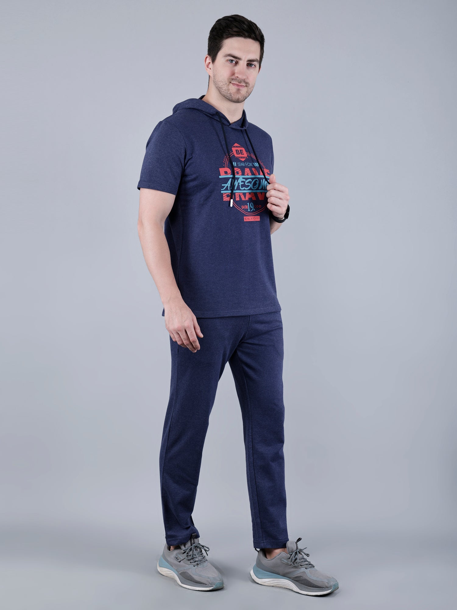 Printed Co-ord Set with Hooded T-shirt and Lower