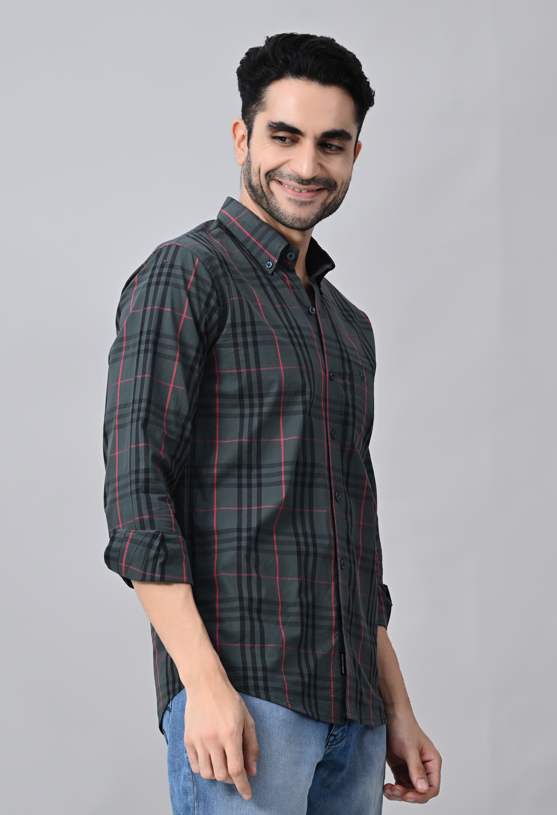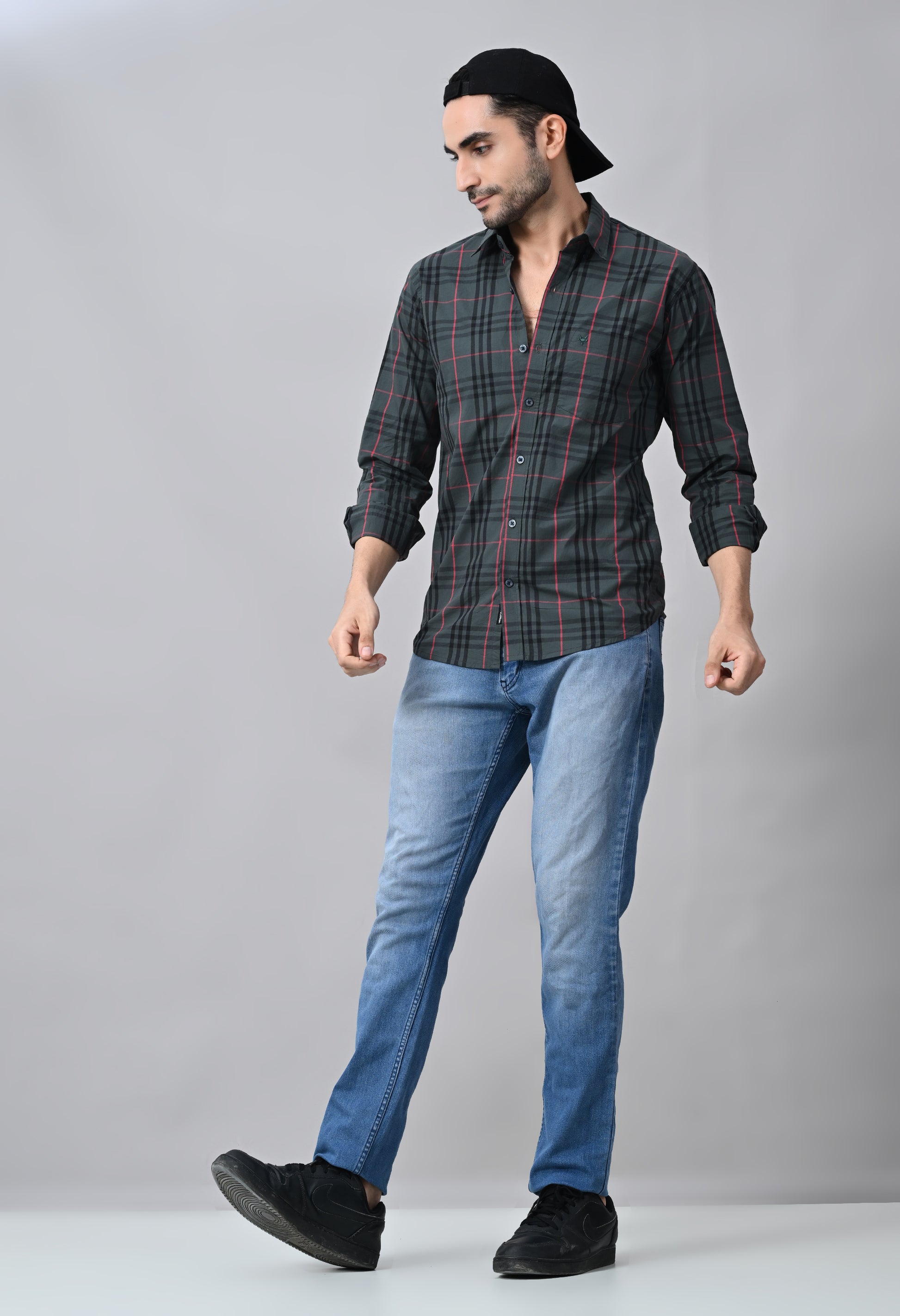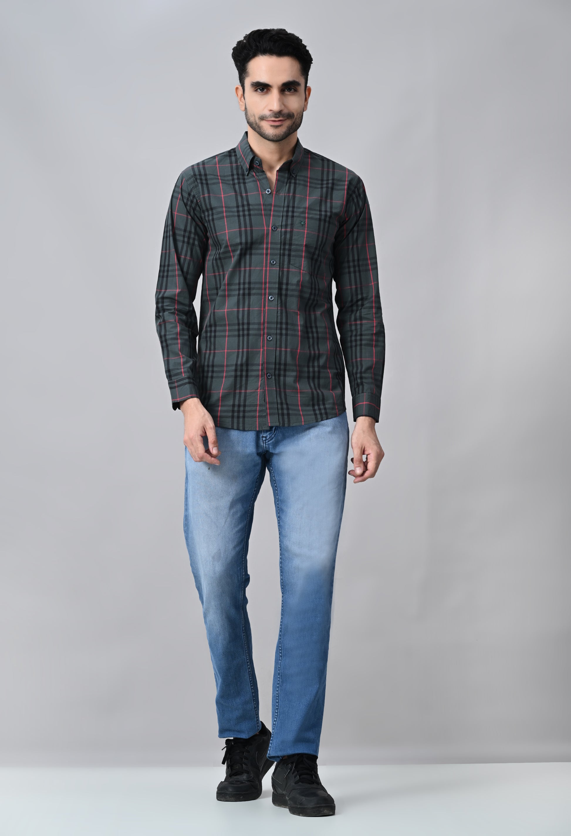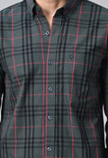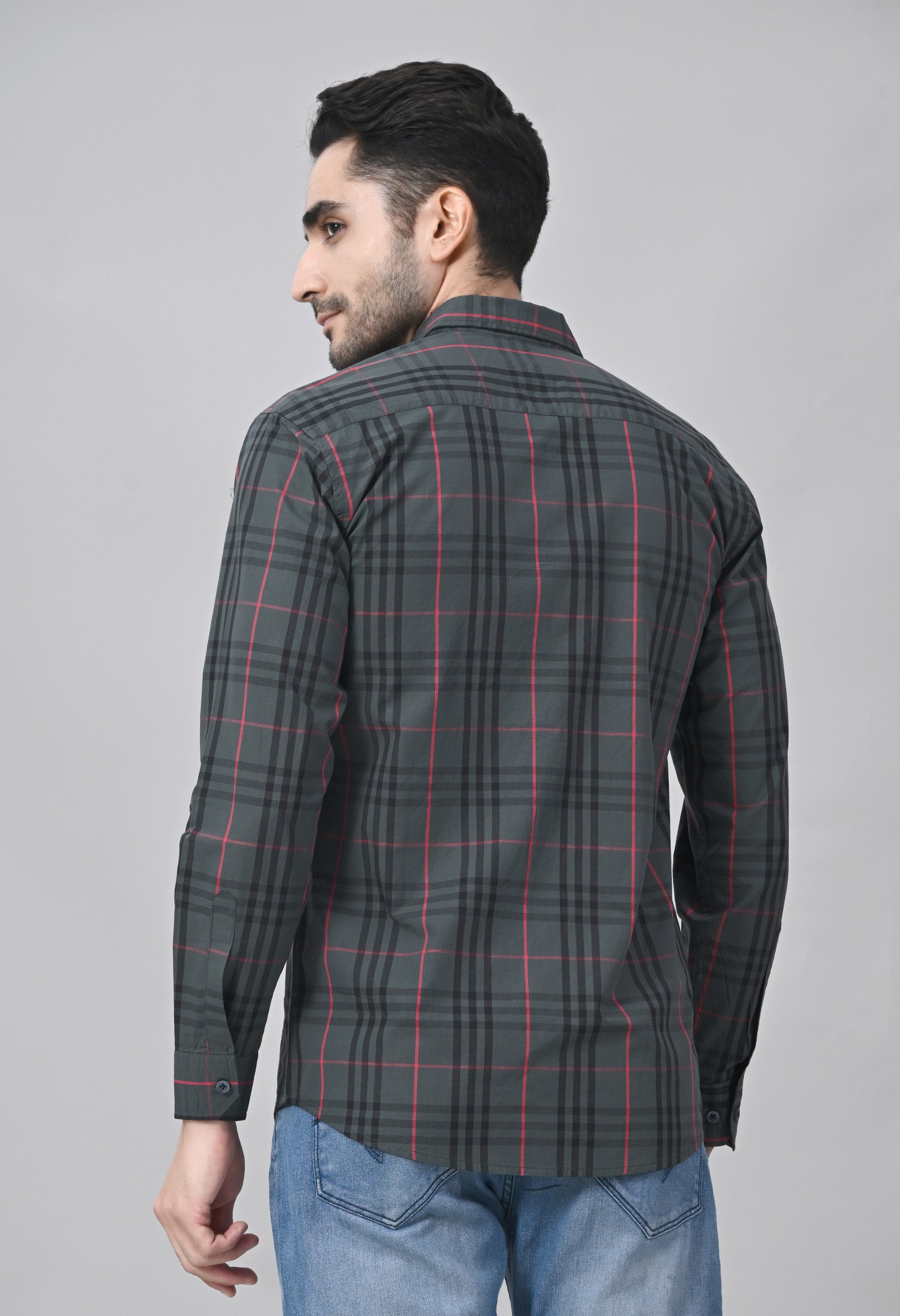 Achieve a sleek and sophisticated look with our Grey and Red Slim Fit Checked Cotton Shirt. Crafted with a windowpane checked pattern, this formal shirt for men will elevate your style game. Made from comfortable cotton, it offers a perfect fit and timeless style, making it a must-have in your wardrobe.