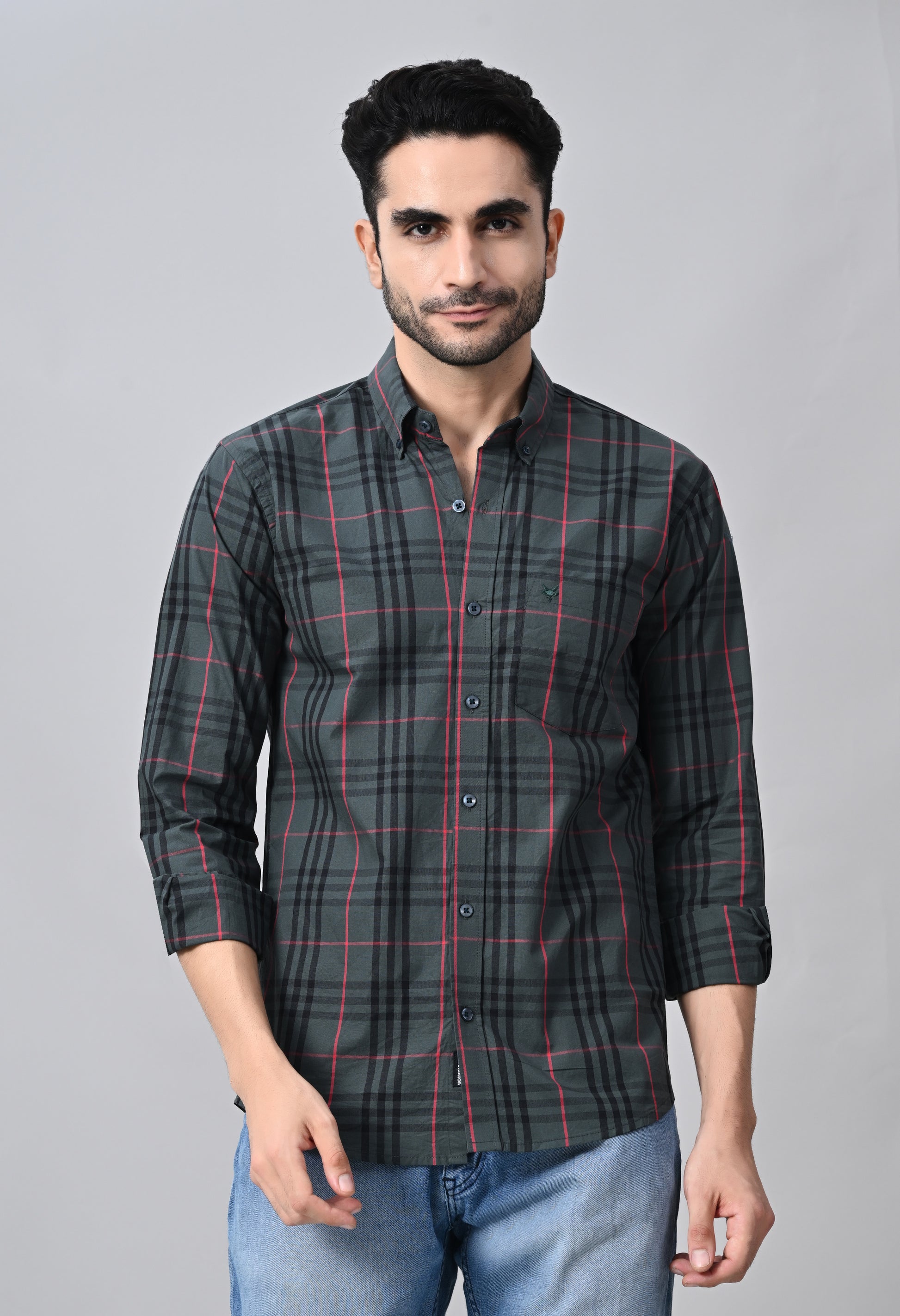- This Item:Grey and Red Slim Fit Checked Cotton Shirt ₹799.00 ₹1,199.00