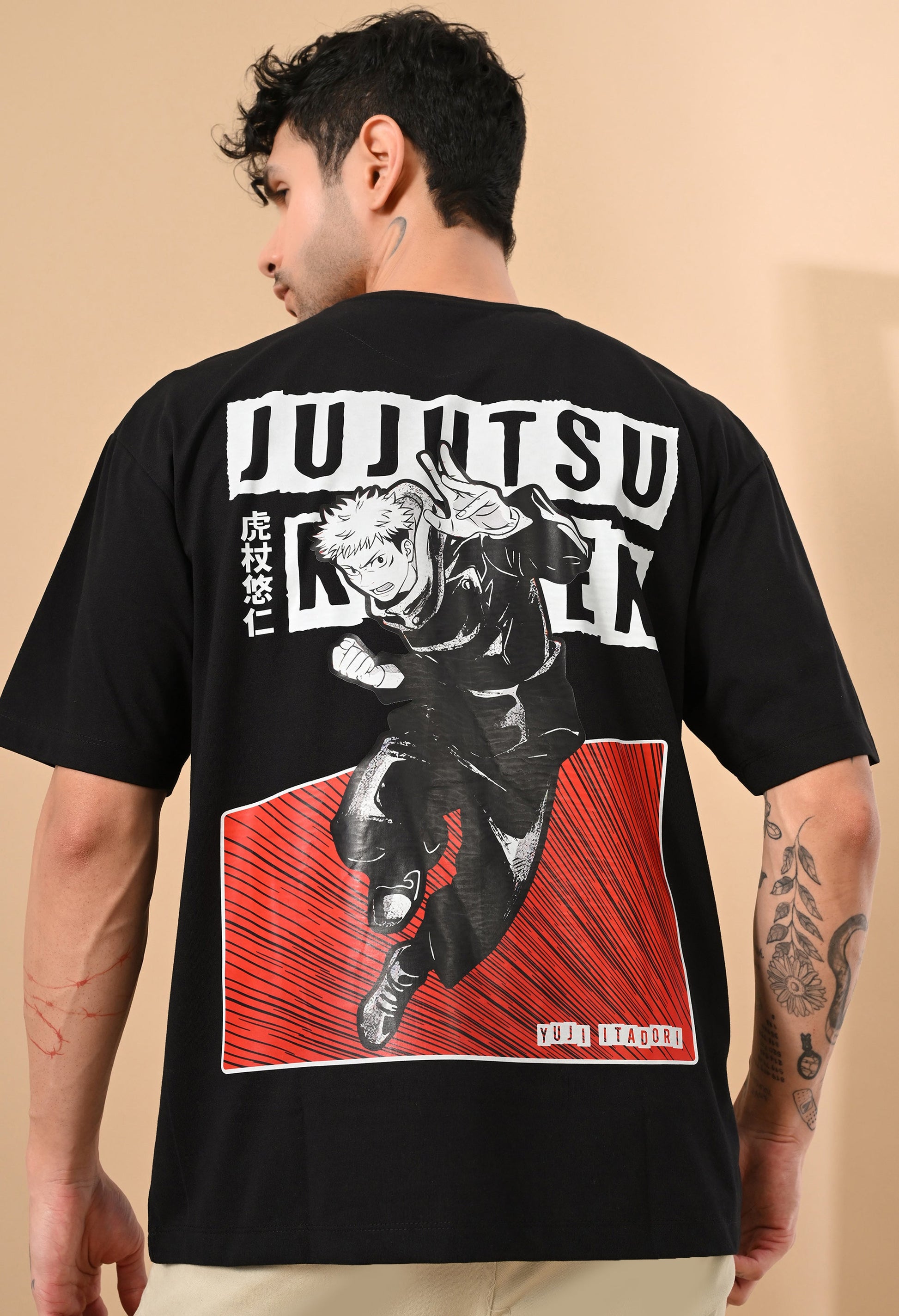 Unleash your inner weeb with our JUJUTSU KAISEN PRINTED OVERSIZED T-SHIRT! Made with 230 GSM cotton biowash fabric for added comfort, this mens printed tee features an oversized fit for a laid-back and stylish look. Perfect for any Jujutsu Kaisen fan, just remember to hand wash only! (Model is wearing size L.)