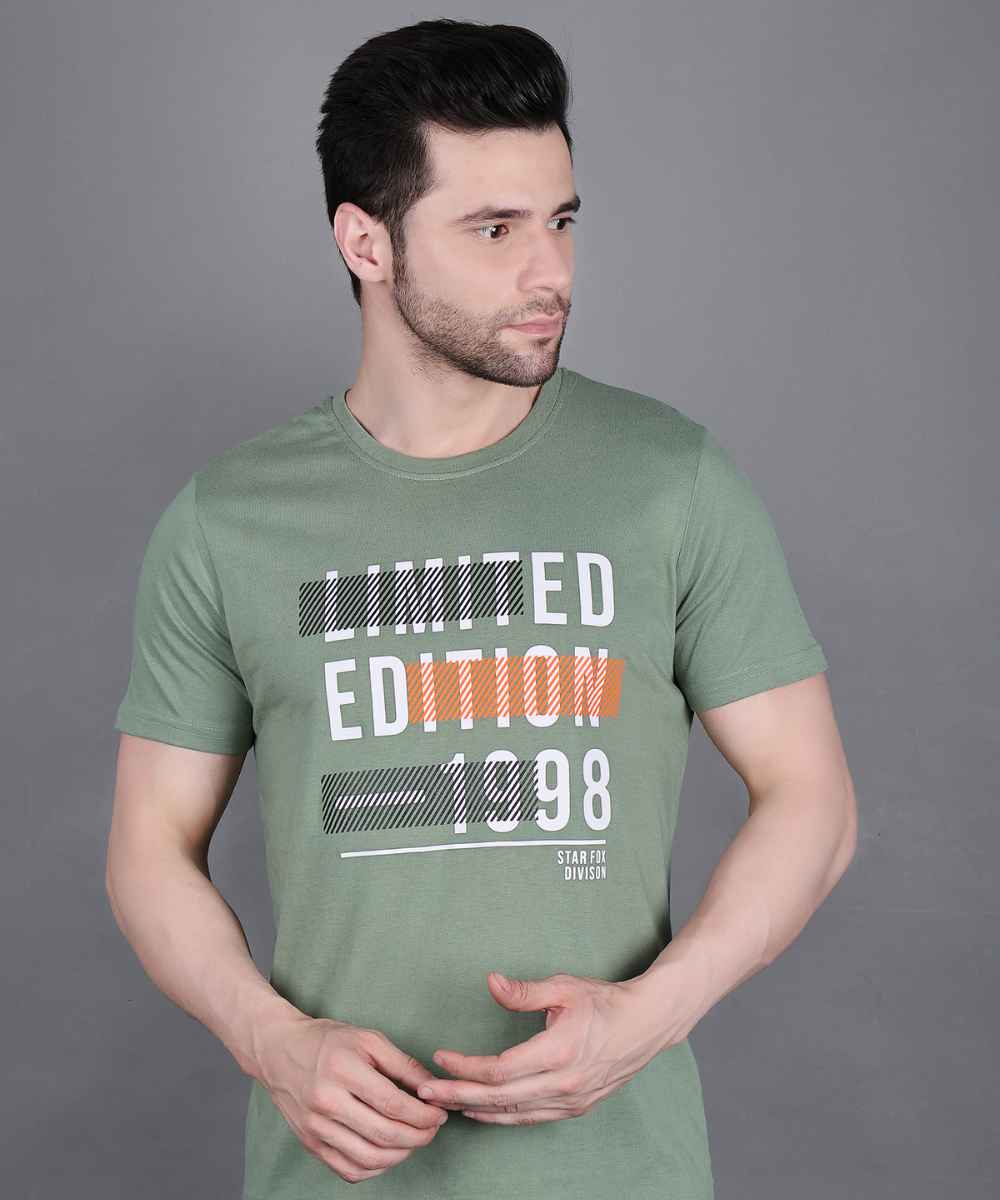 Step up your t-shirt game with our Typography Printed Sage Green T-Shirt. Made from a breathable and light cotton blend fabric, you can comfortably wear it all day long. The bio-washed fabric adds a softness that you won't be able to resist. The graphic print adds a touch of quirkiness to the slim fit design. Try out this super fine gauge single jersey fabric in a unique sage green color!