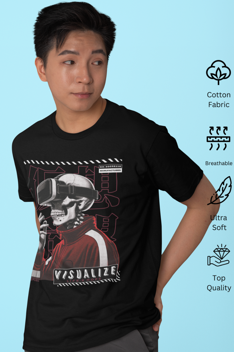Indulge in comfort and style with our Men Printed Round Neck Pure Cotton Black T-Shirt. Made from high-quality, pure cotton fabric, this t-shirt is perfect for everyday wear. The round neck design and unique print add a touch of sophistication to your casual look. Upgrade your wardrobe with this must-have t-shirt today!