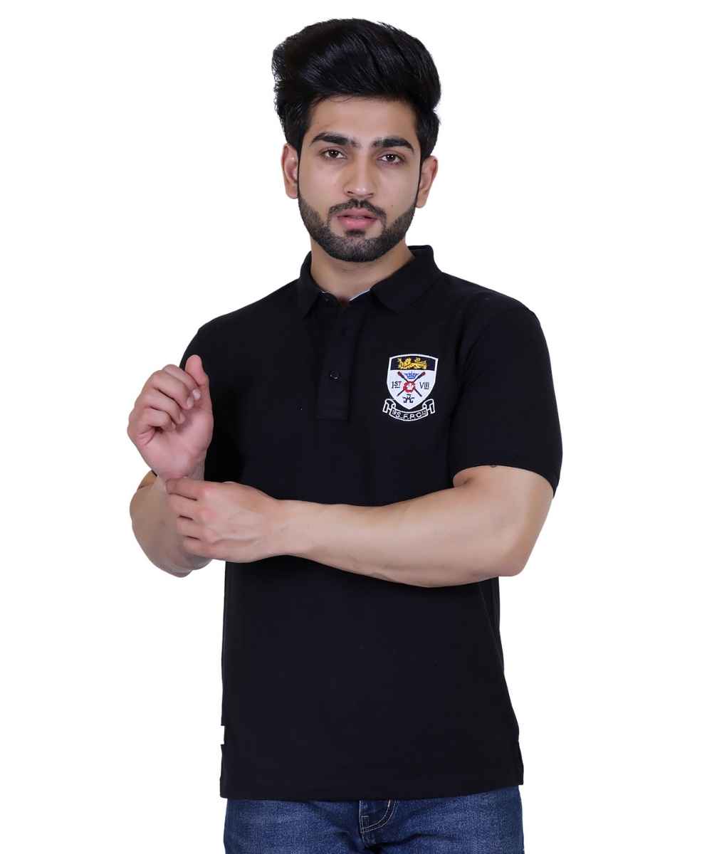 - This Item:Embroidered Black Pique Polo T-Shirt ₹1,399.00 ₹599.00