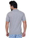 Men's Grey Half Sleeve Chest Logo Polo Neck T-Shirt