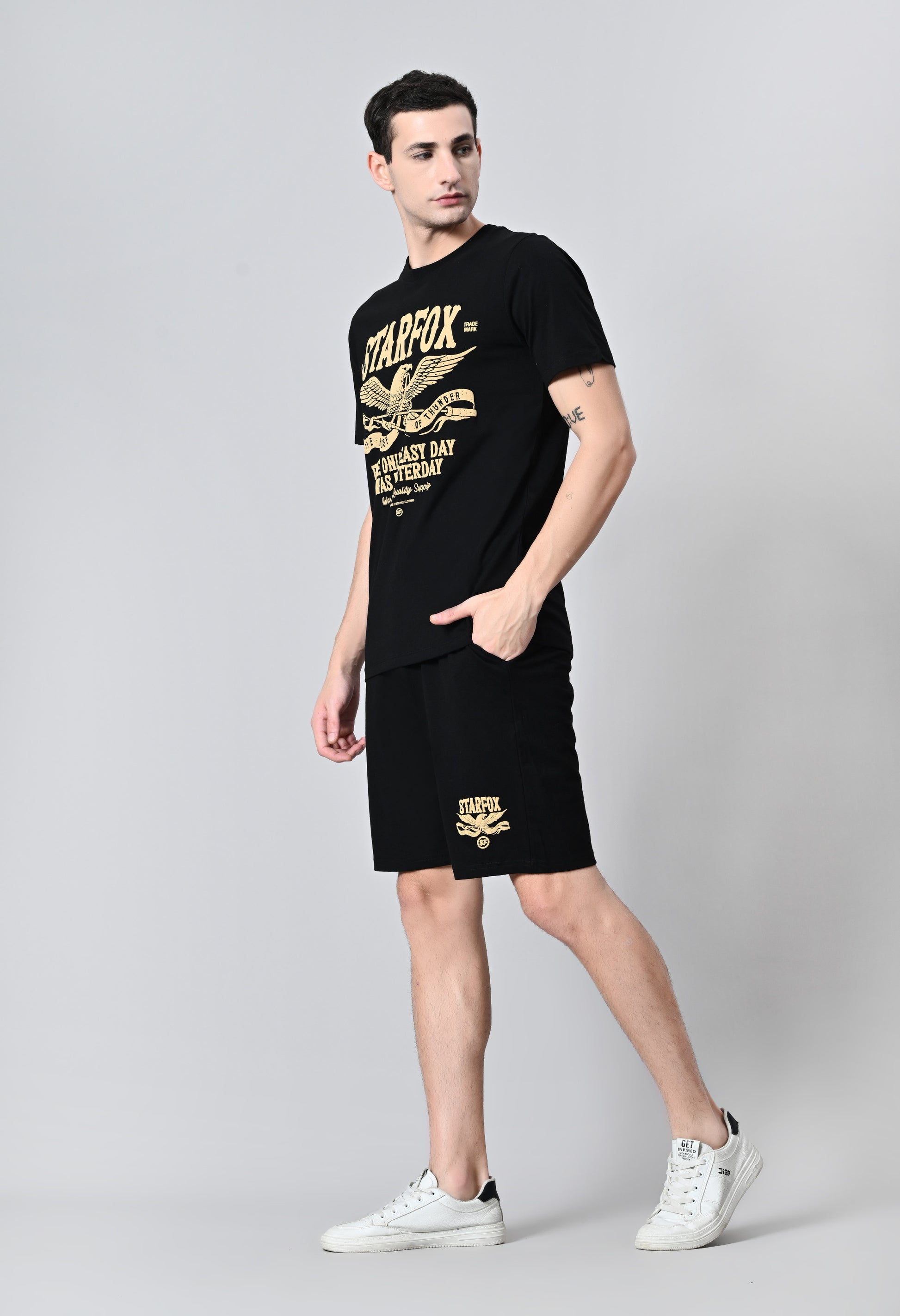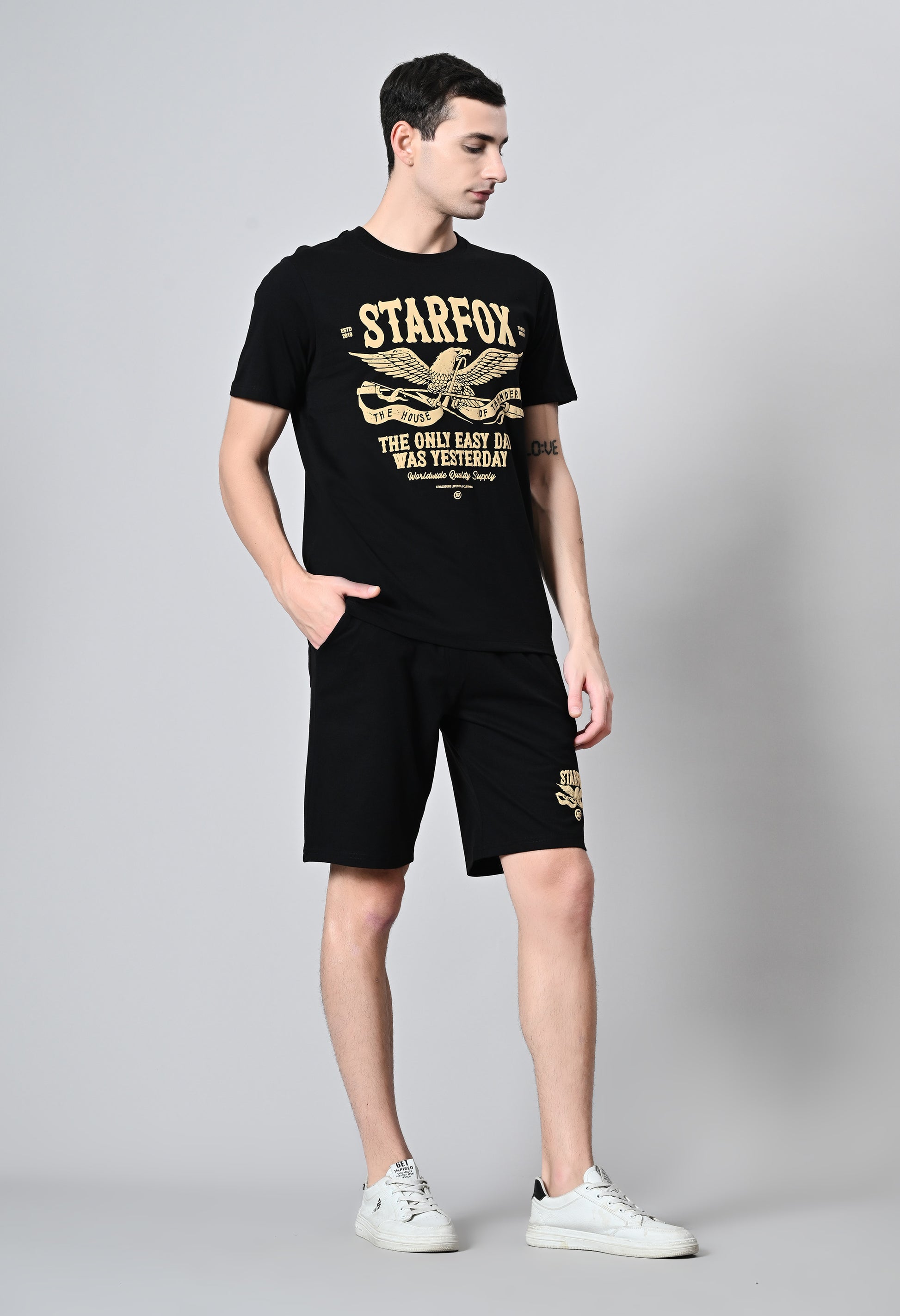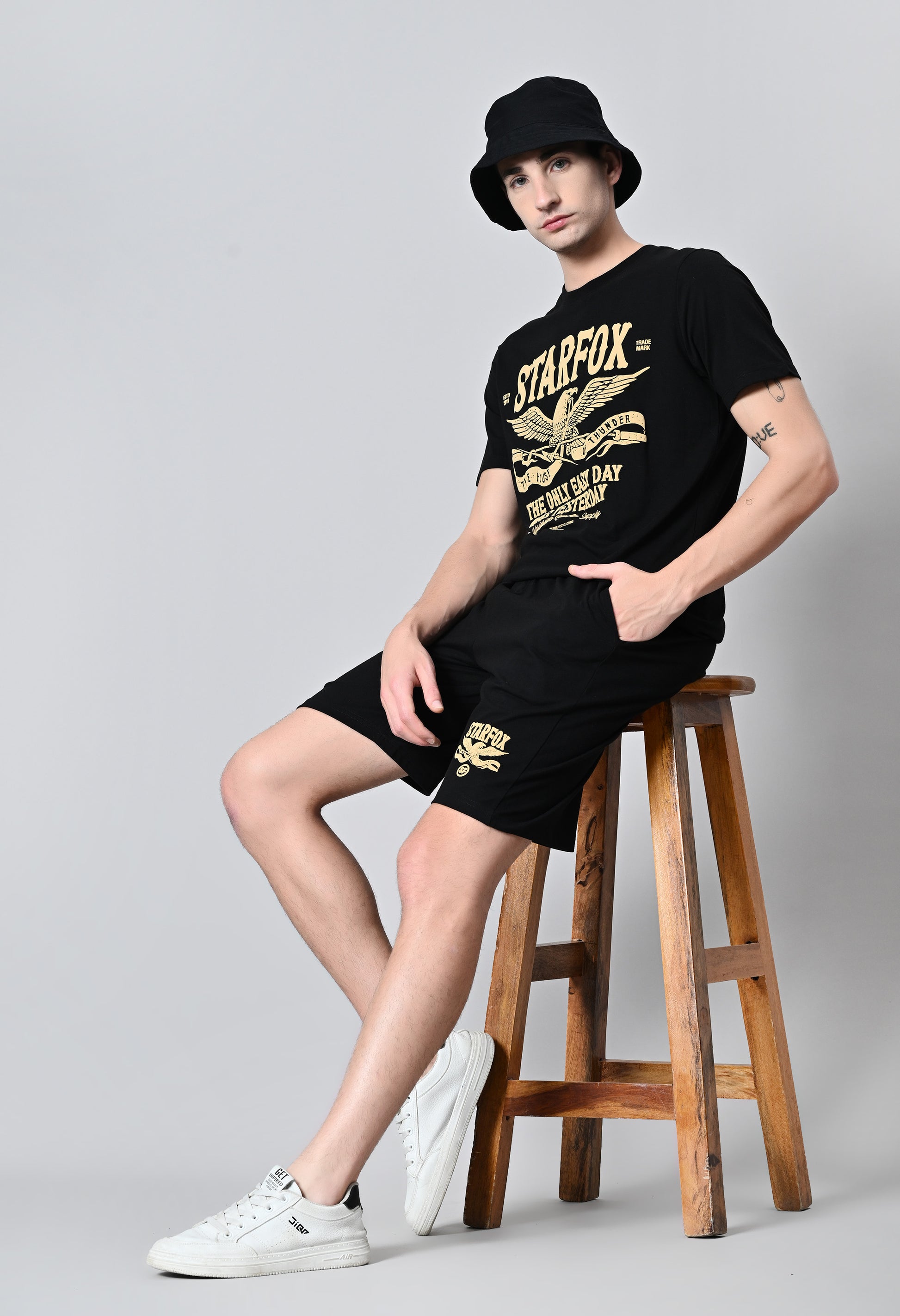 Get ready to embrace boldness and adventure with our STARFOX Men's Printed Round Neck With Shorts Co-Ord Set! Featuring a puff printed T-shirt and elasticated waistband shorts, this co-ord set is perfect for taking risks and standing out. Made with 220 GSM biowashed cotton fabric for extra softness.