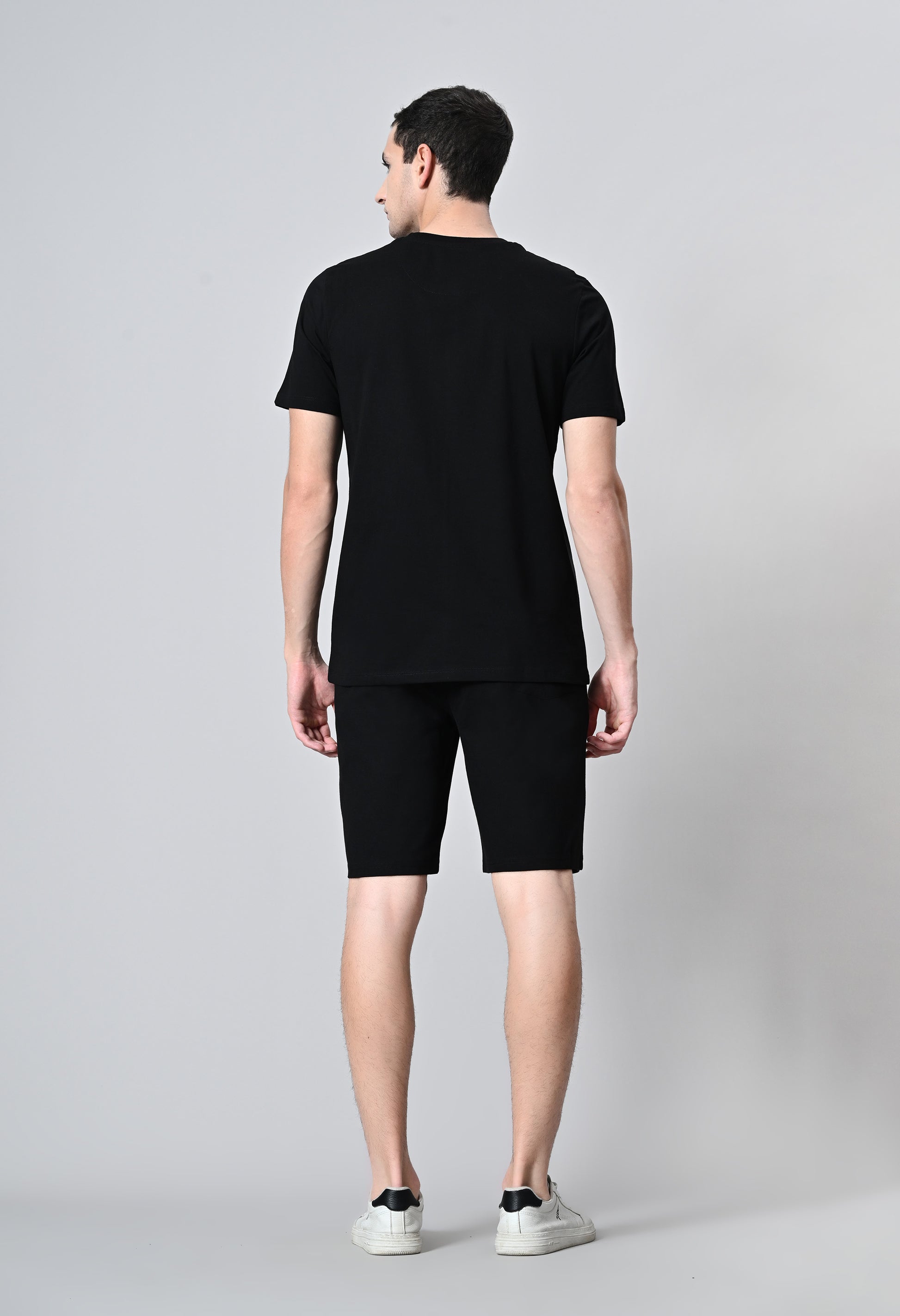 Raven Black Puff Printed Round Neck With Shorts Co-Ord Set