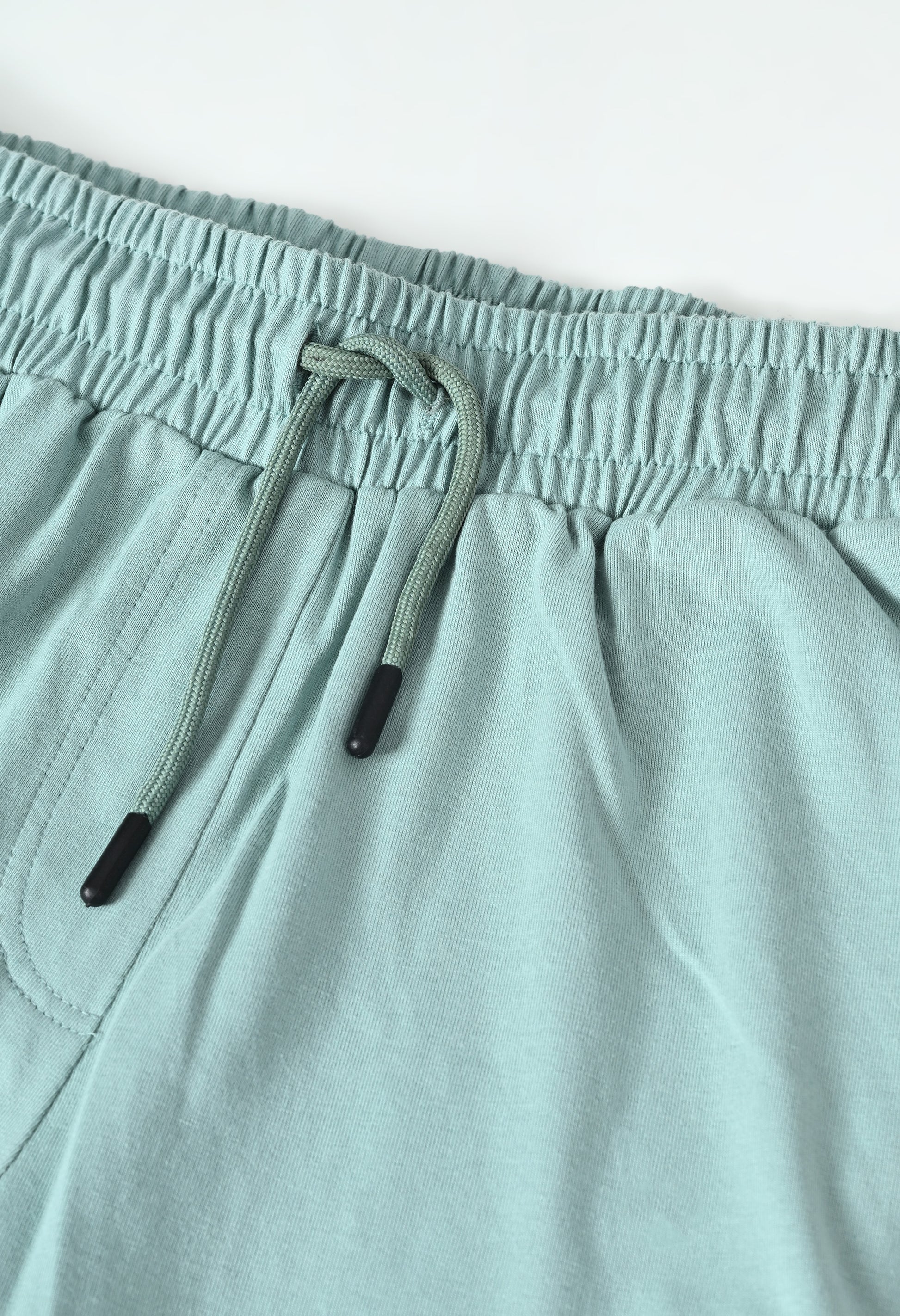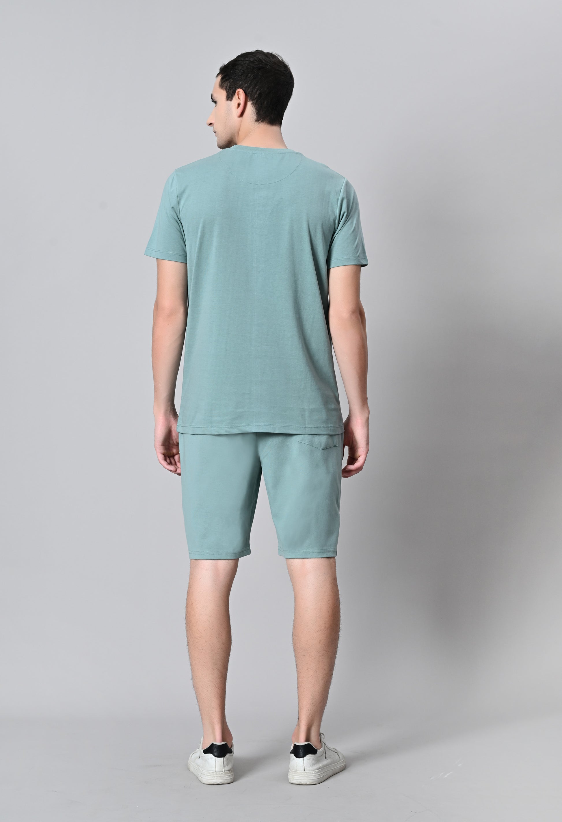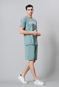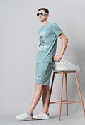 Sage Green Puff Printed Round Neck With Shorts Co-Ord Set