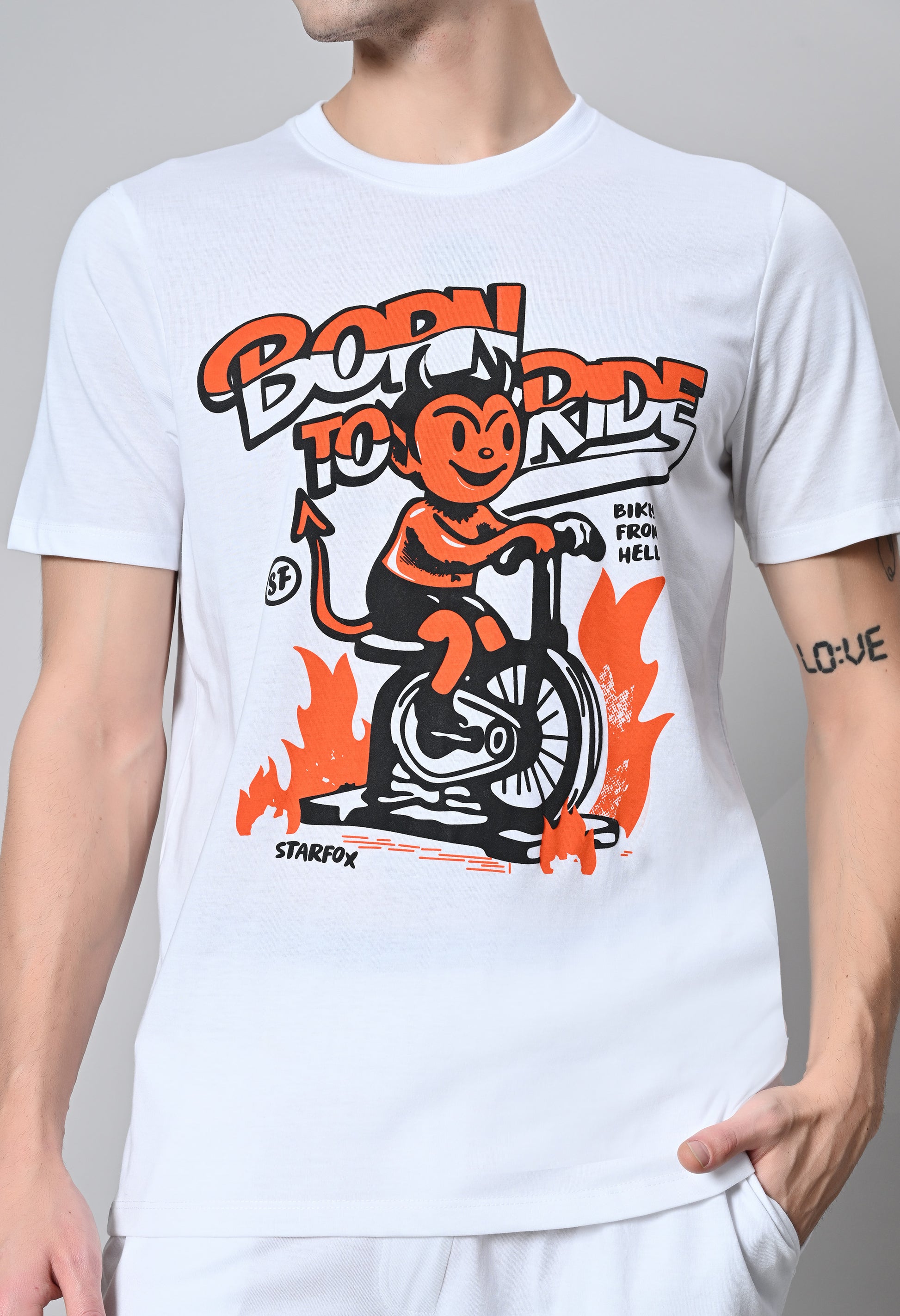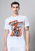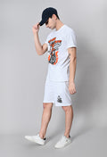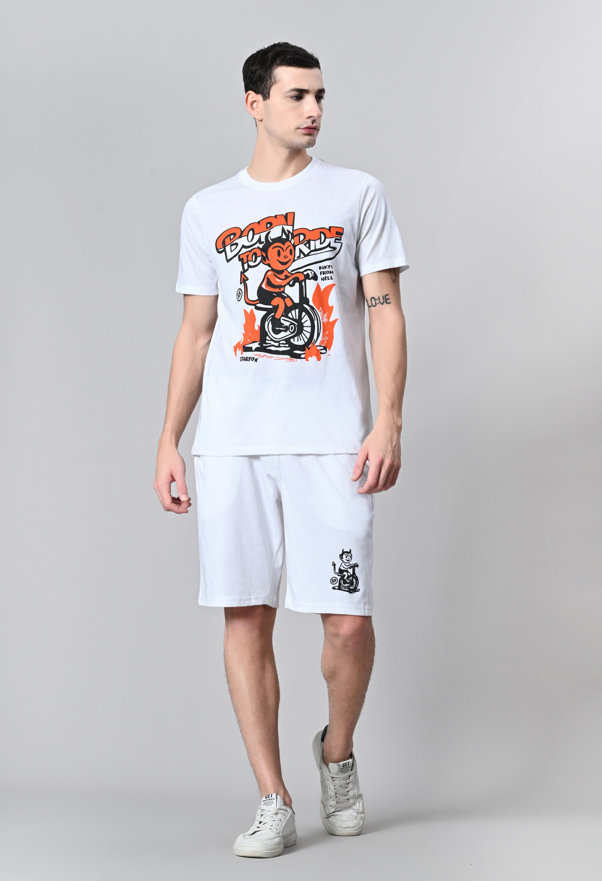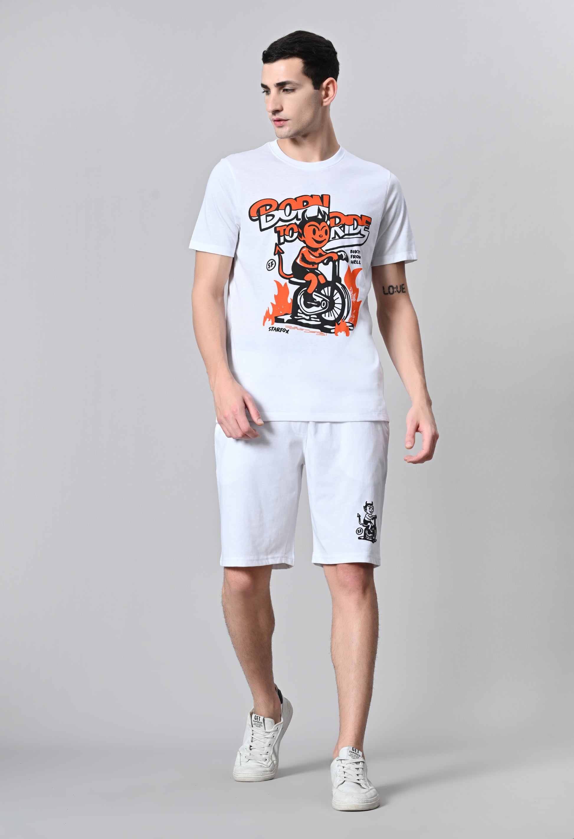 Men's White Printed Puff Round Neck With Shorts Co-Ord Set