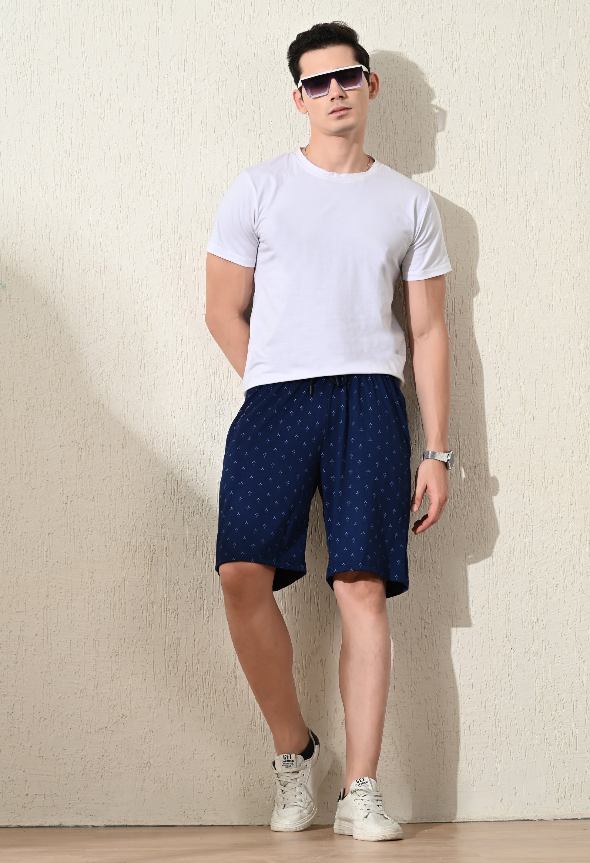 Experience ultimate comfort and style with our Mens Printed Shorts. Featuring an all-over print and made with soft cotton fabric, these shorts are perfect for any activity. The elasticated waistband with drawstring and zipper pockets add convenience and a slim fit gives a tailored look. Upgrade your wardrobe with these versatile shorts!