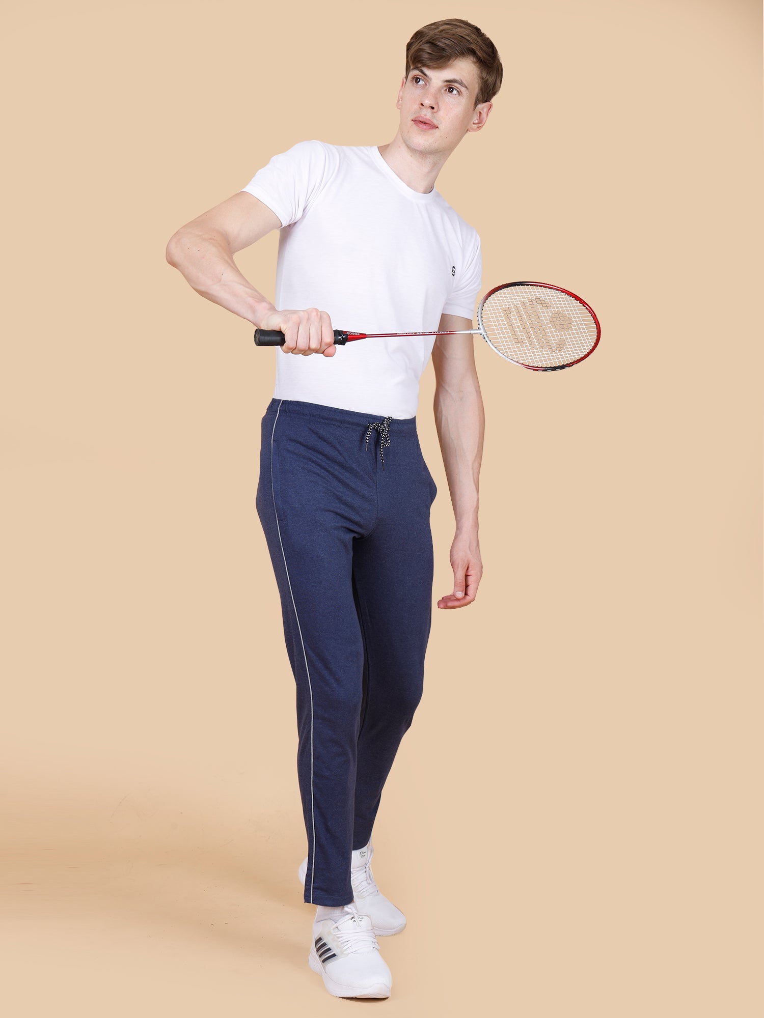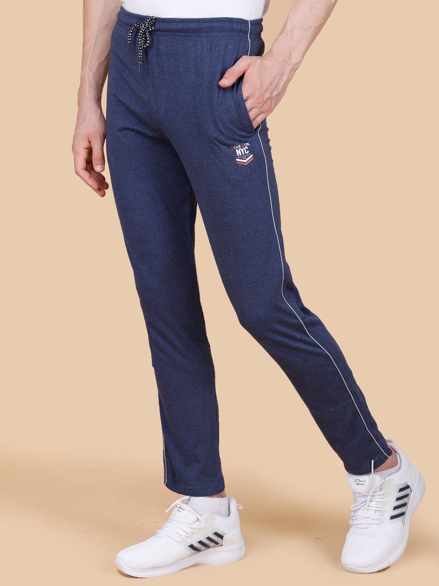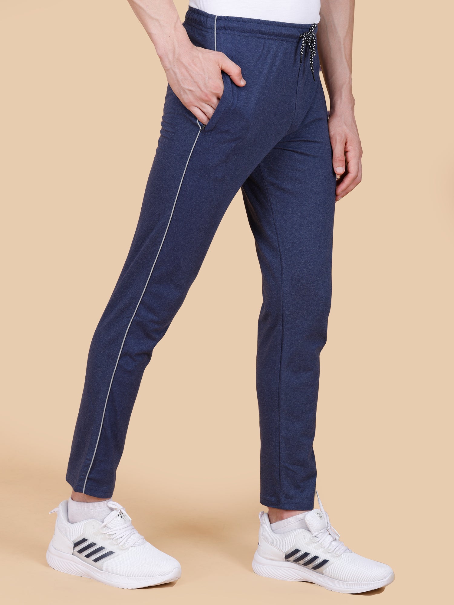 Elevate your athletic style with our Denim Track Pant with Contrast Pipping. The sleek design features convenient side pocket zippers and a dynamic contrast piping, providing both style and functionality. Move freely and confidently with this must-have addition to your workout wardrobe.