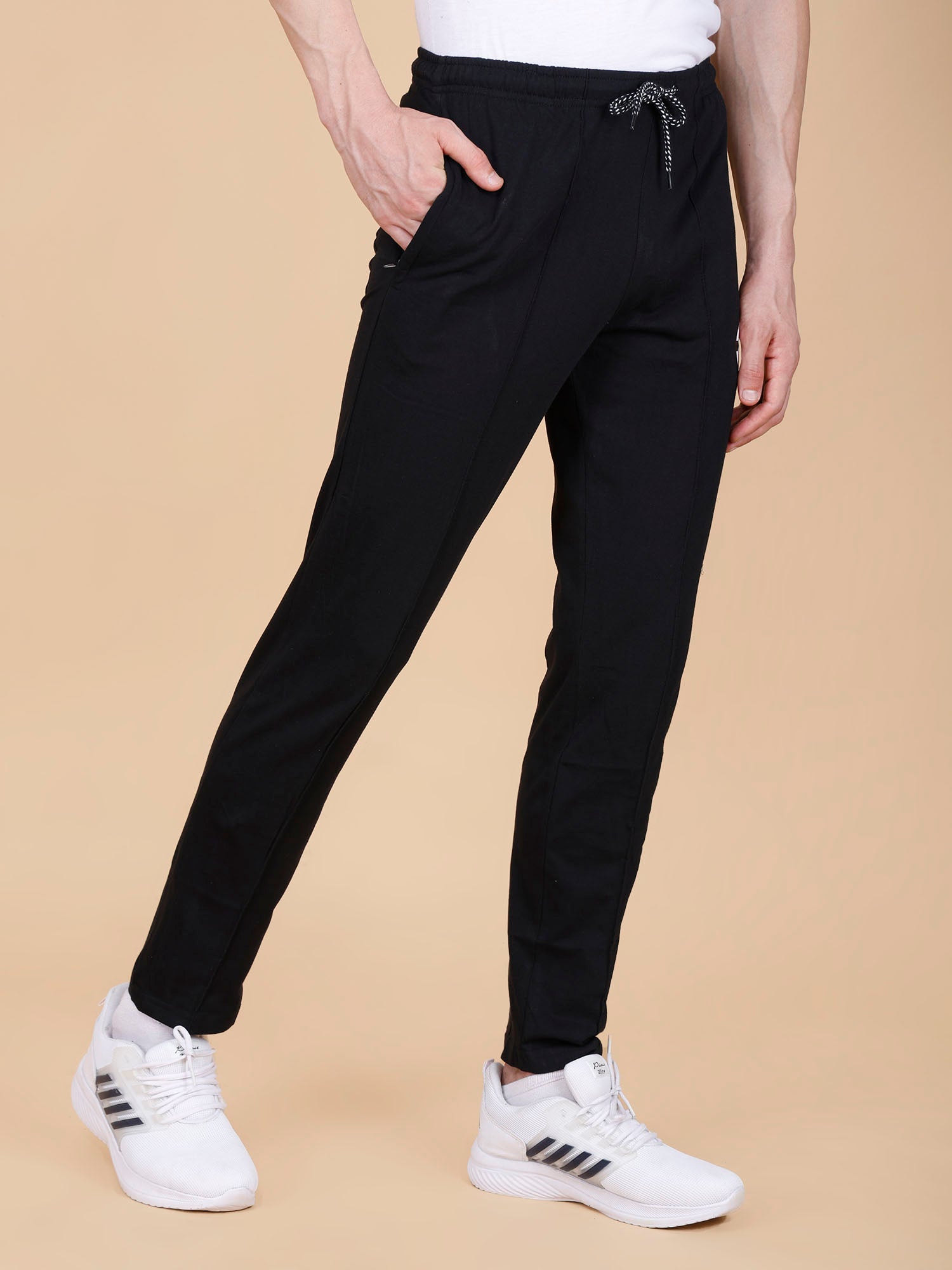 Upgrade your workout wardrobe with our Black Track Pant With Pleats. Designed for both style and comfort, these pants feature side pockets with zippers for added convenience. Upgrade your workouts with functionality and style!
