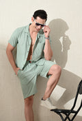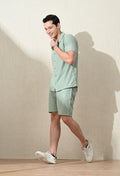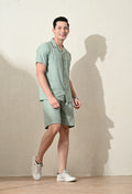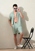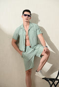 Elevate your style game with our MENS SELF TEXTURED CO-ORD SET! Made with a self textured fabric, this regular fit shirt and shorts set will keep you comfortable and stylish. The full button closure on the shirt adds a touch of sophistication. Upgrade your wardrobe now!