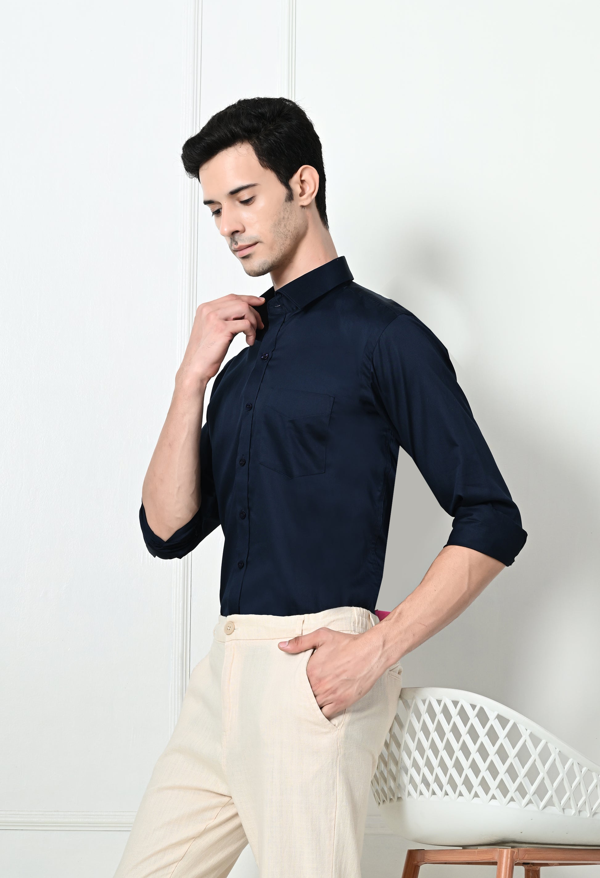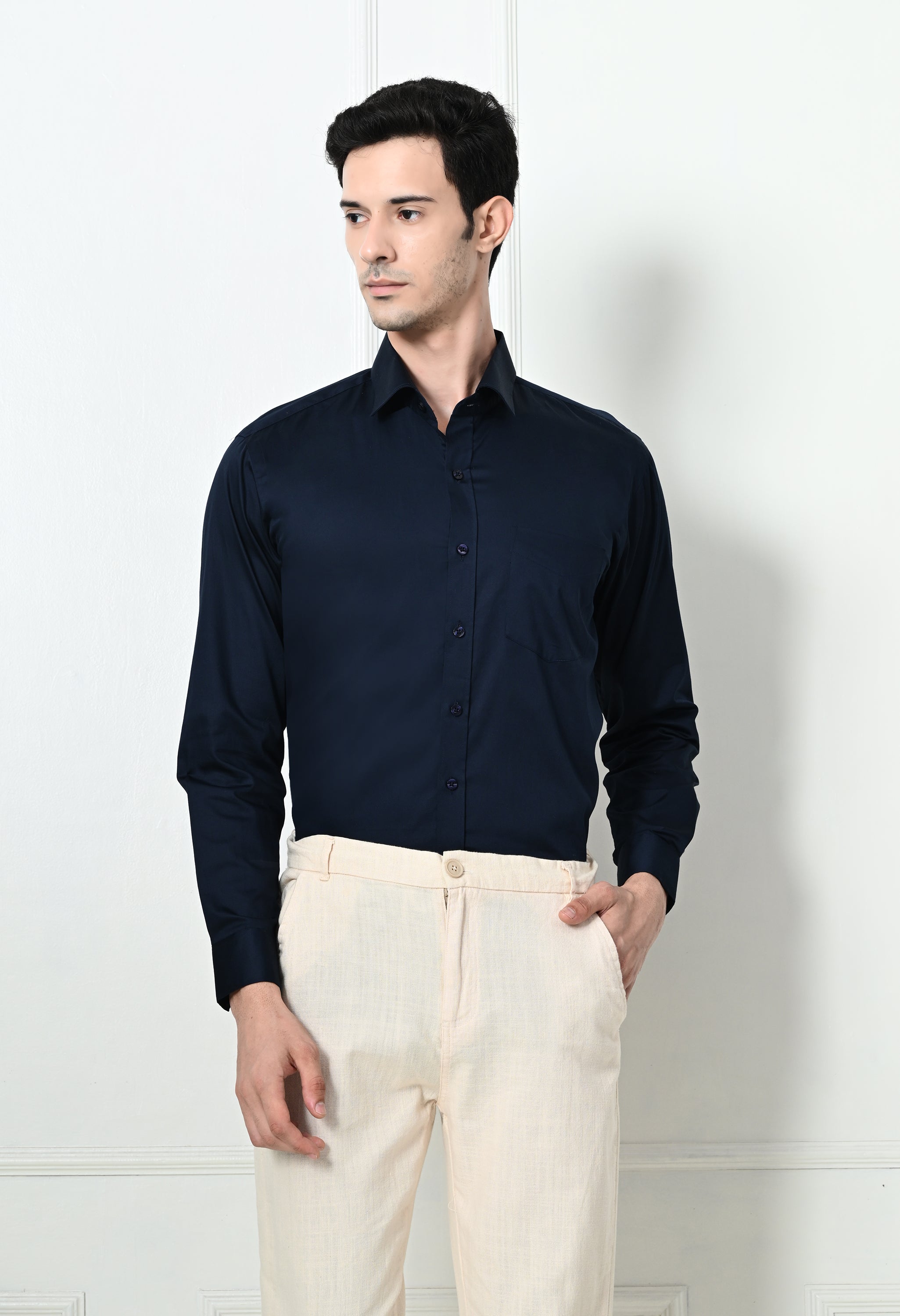 Experience the perfect blend of style and comfort with our Mens Slim Fit Solid Formal Shirt. Made from pure cotton, this formal shirt will keep you looking sharp and feeling comfortable all day long. Elevate your formal wardrobe with our slim fit design and timeless solid color.