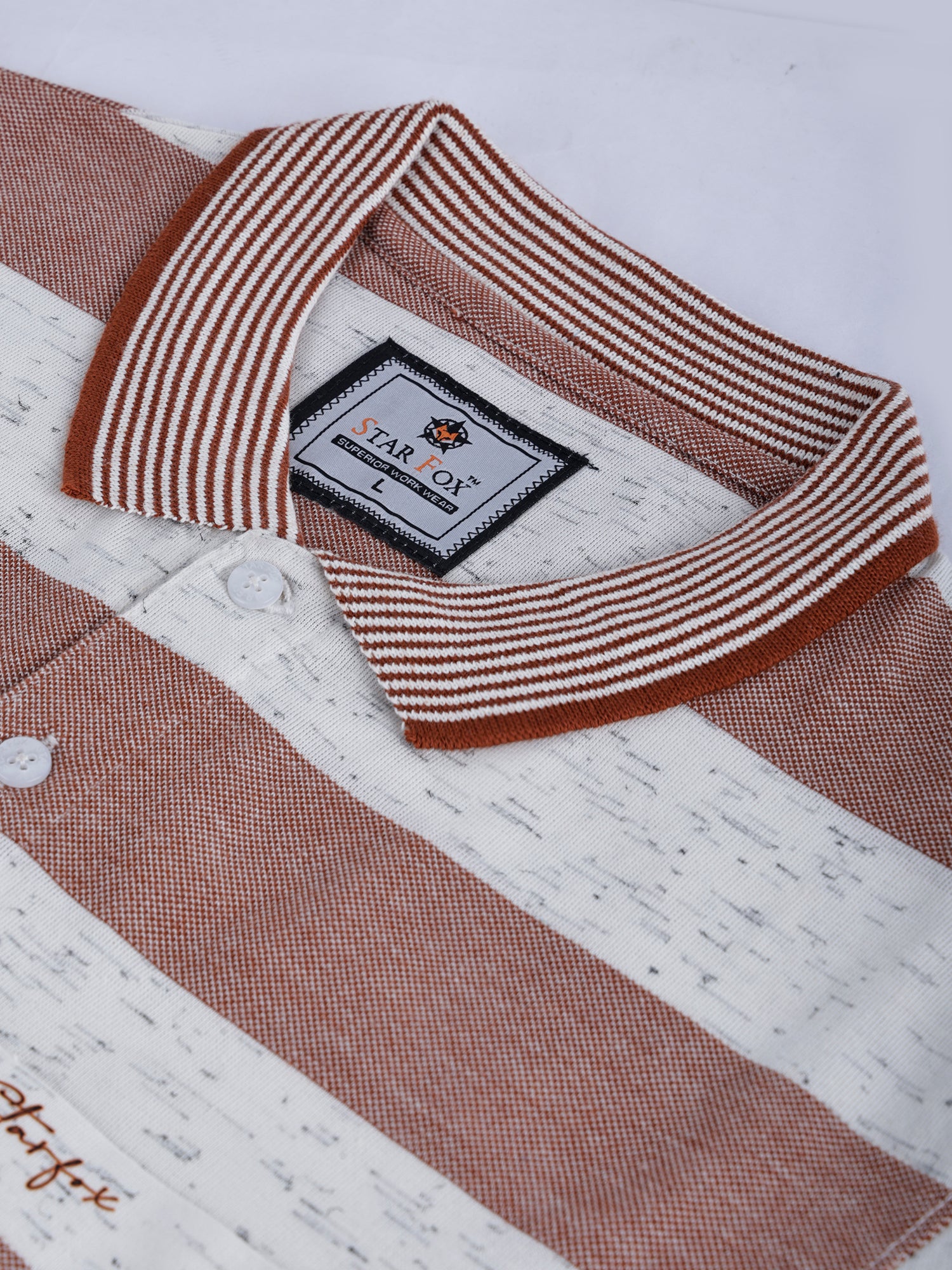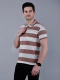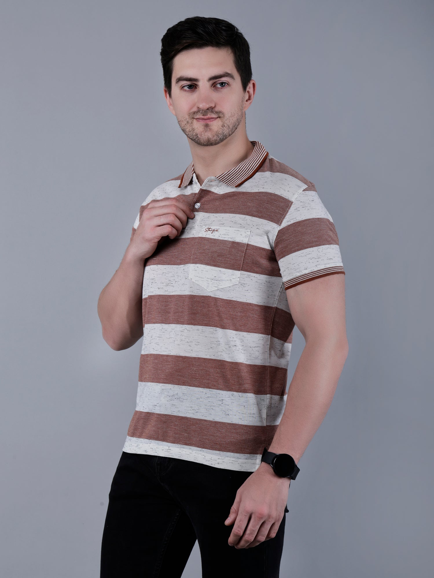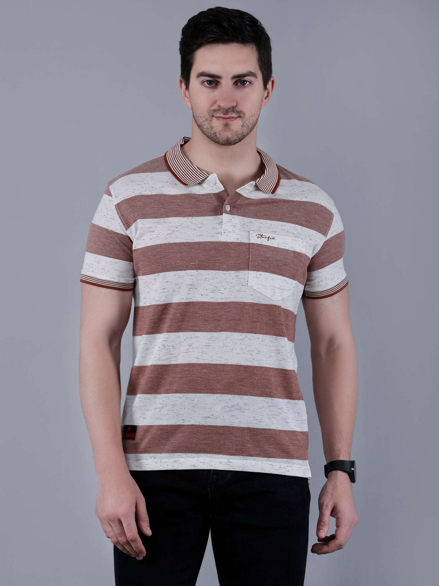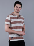 Men's Striped Polo Neck Cotton Blend T-Shirt
