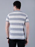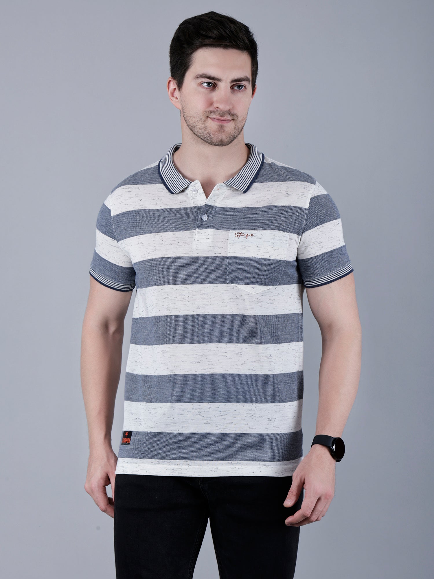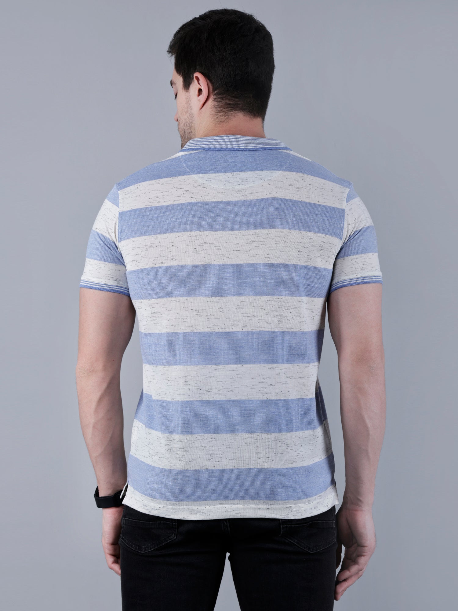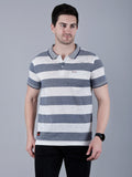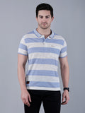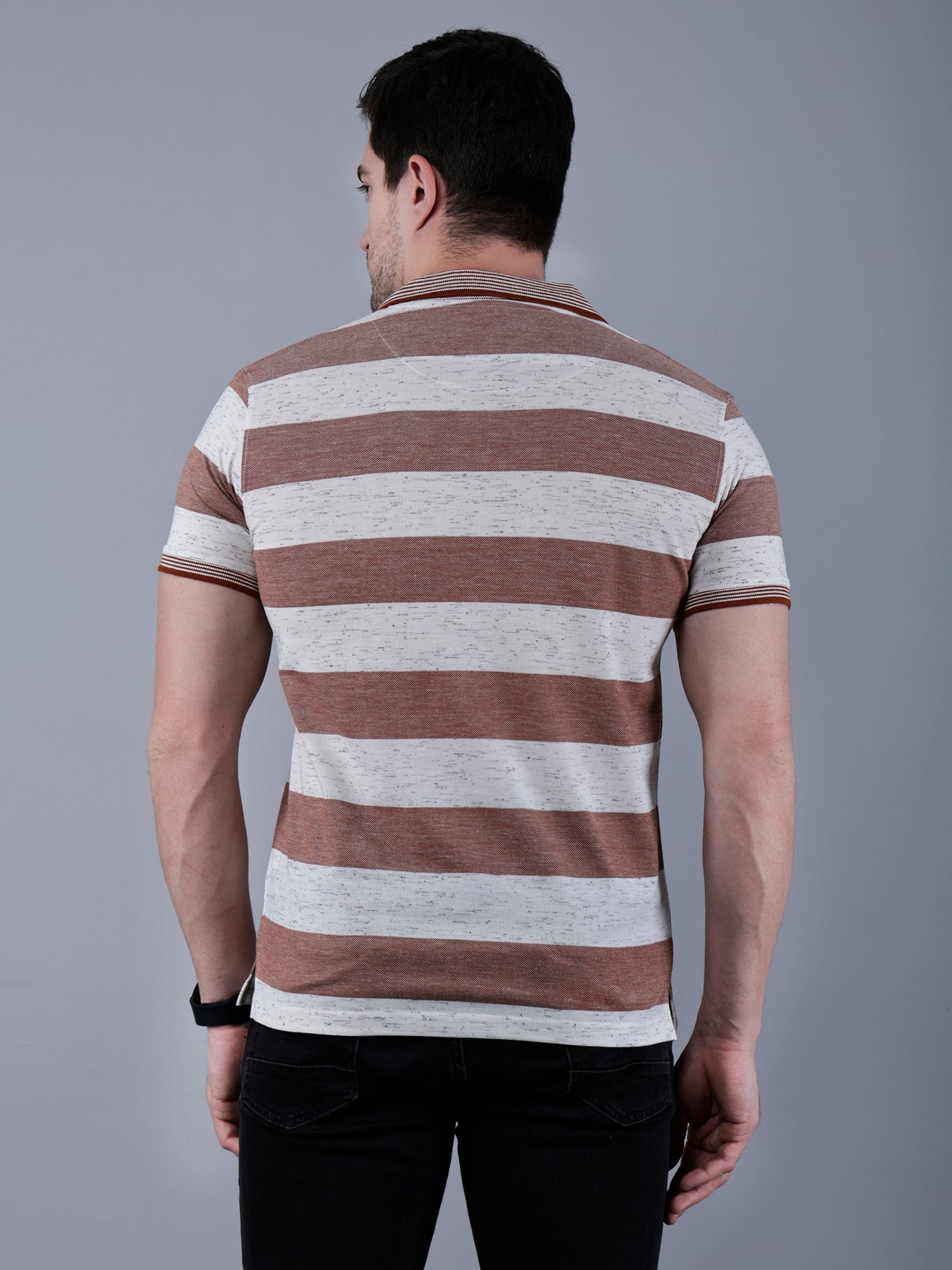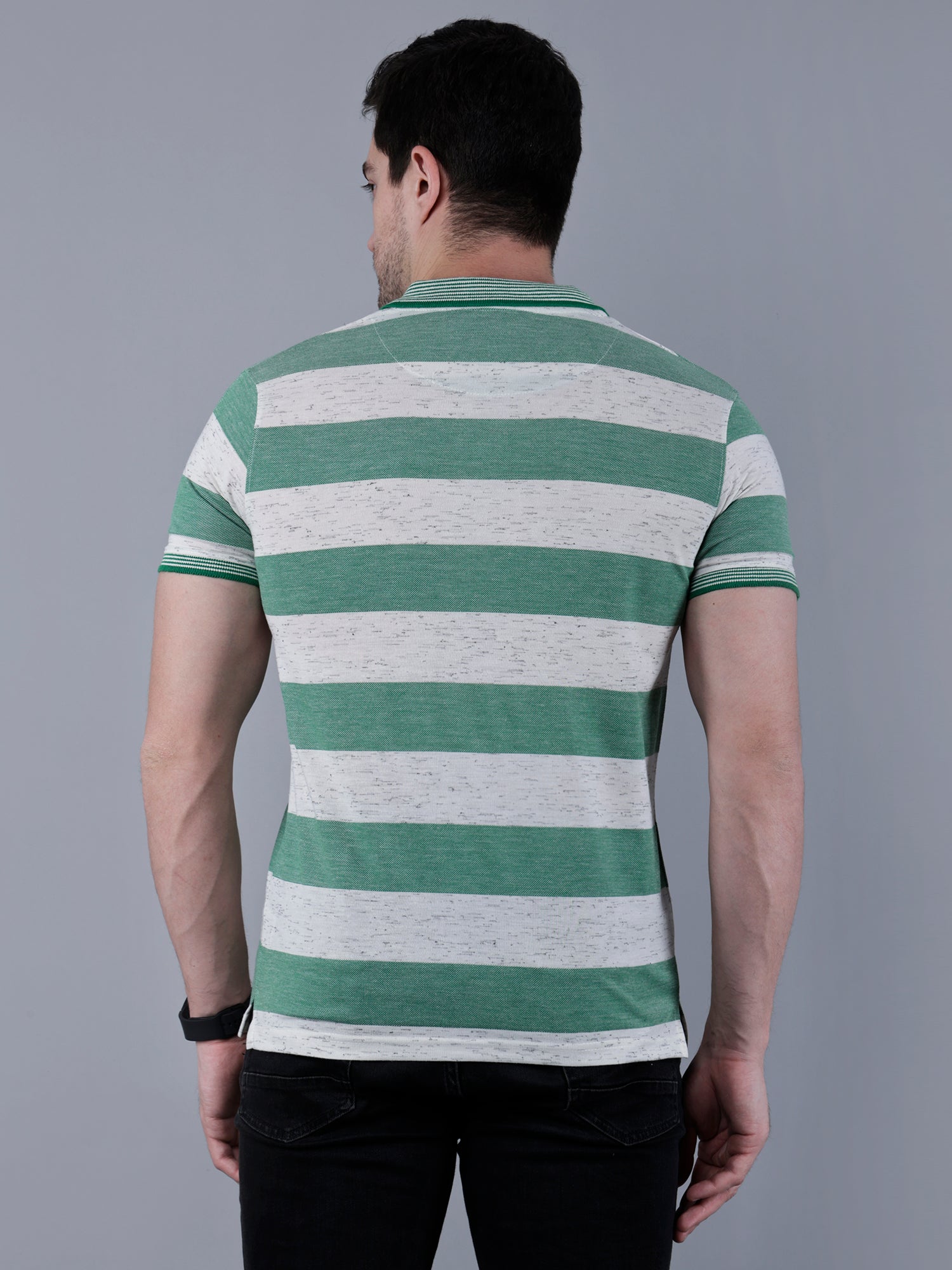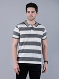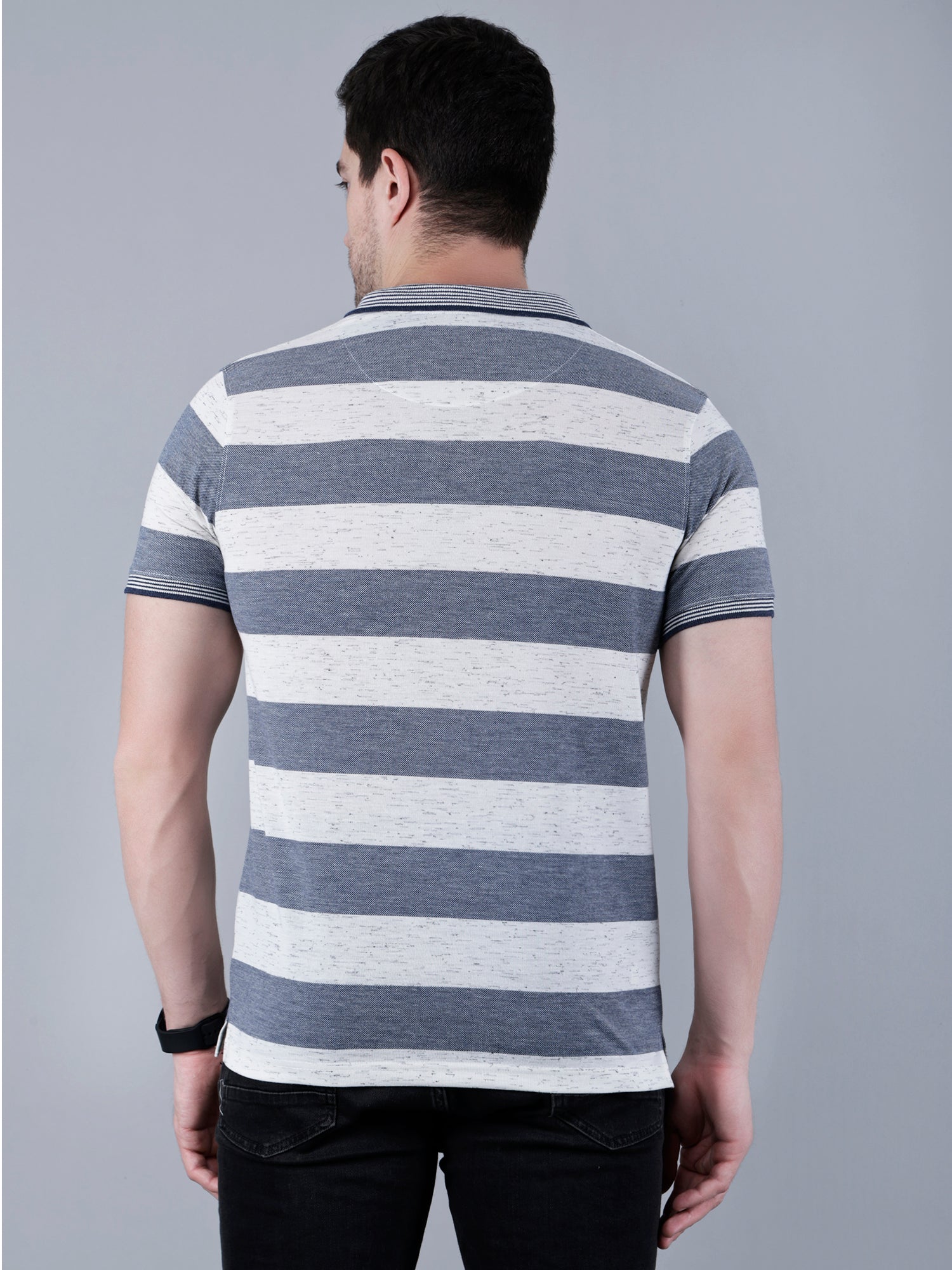 Men's Striped Polo Neck Cotton Blend T-Shirt