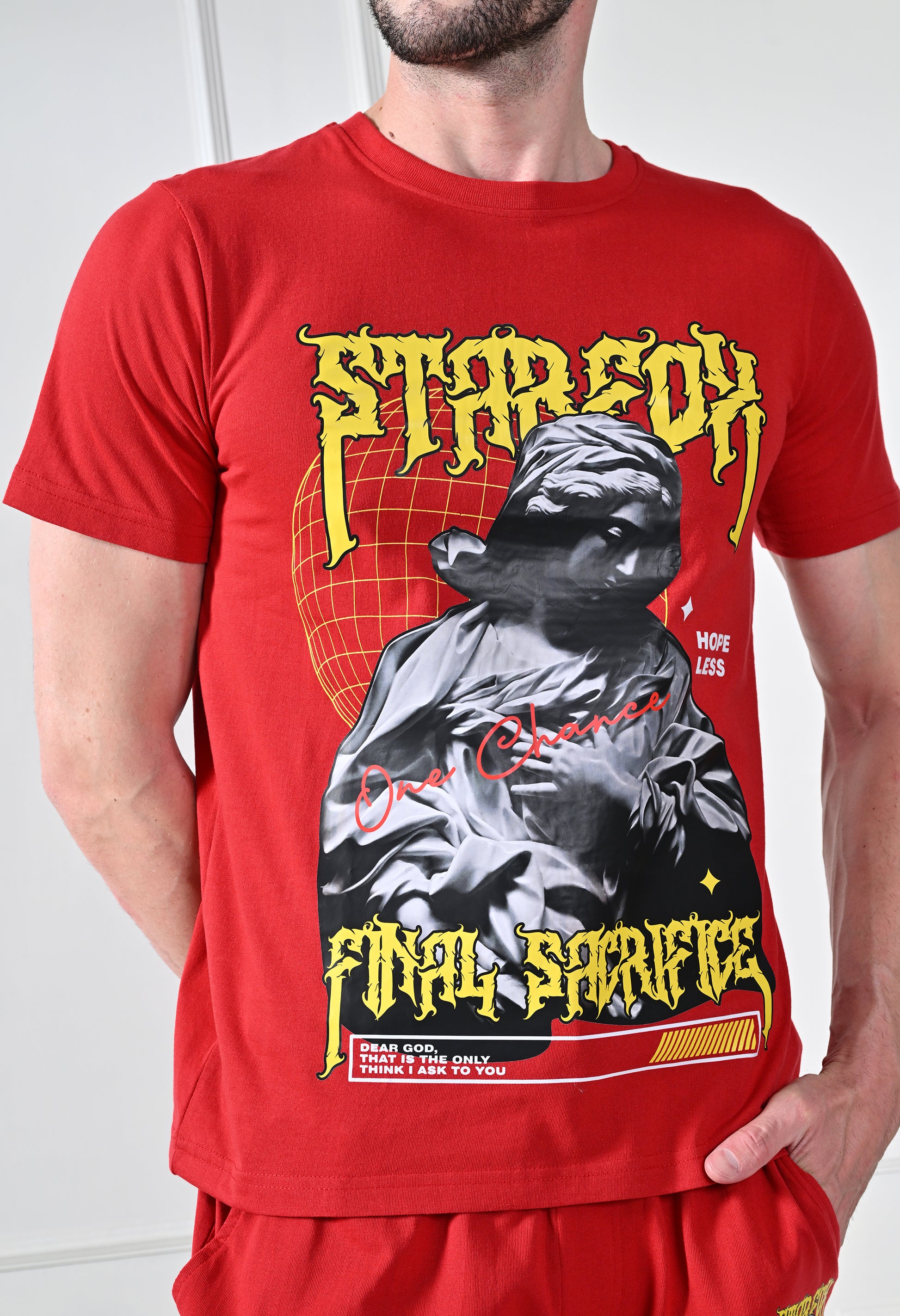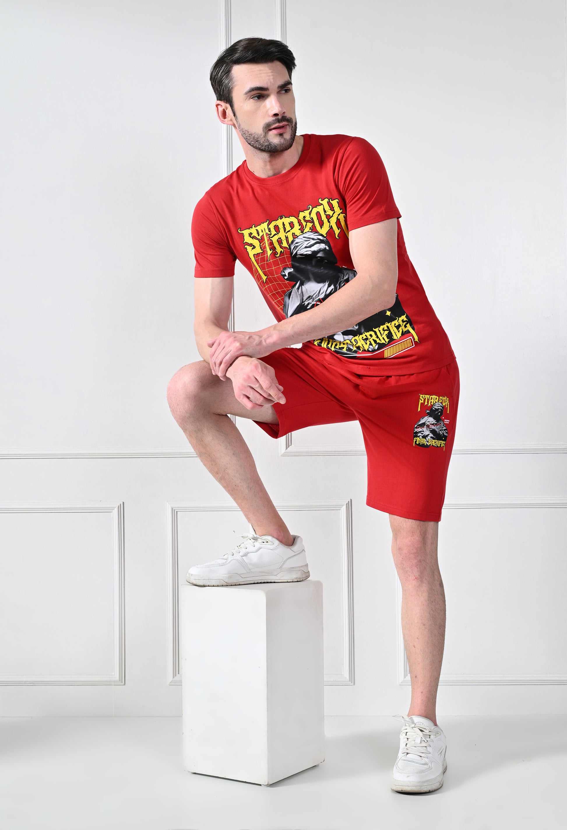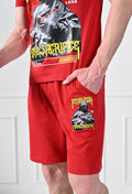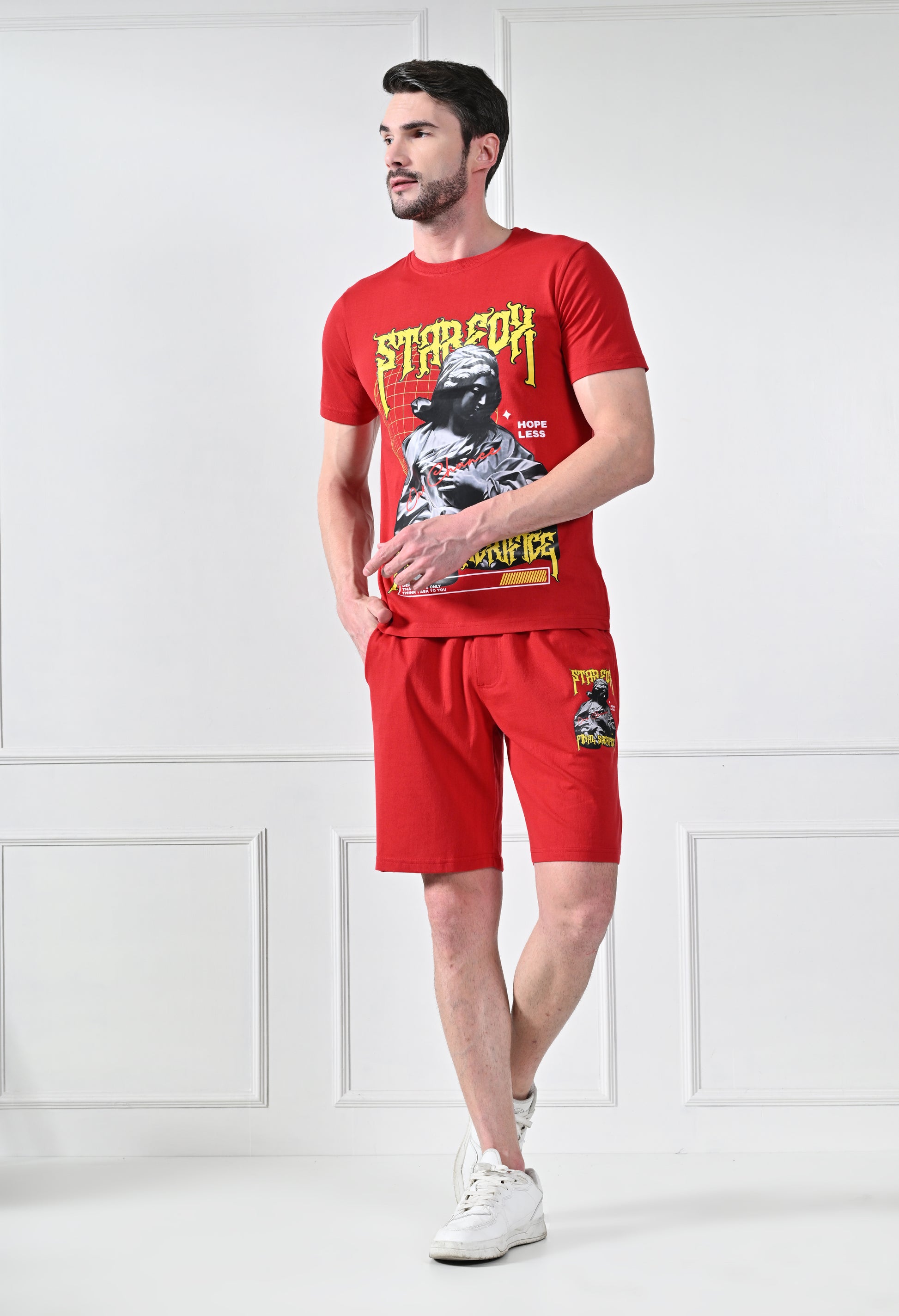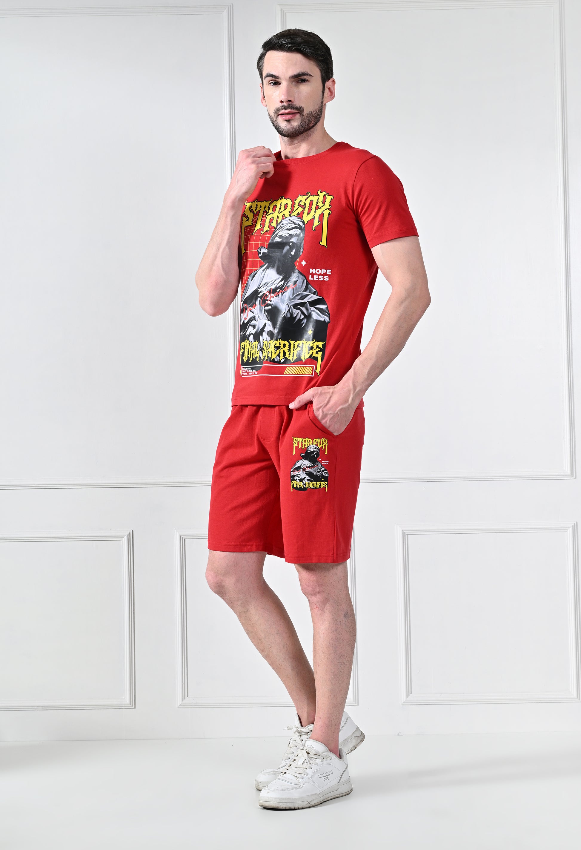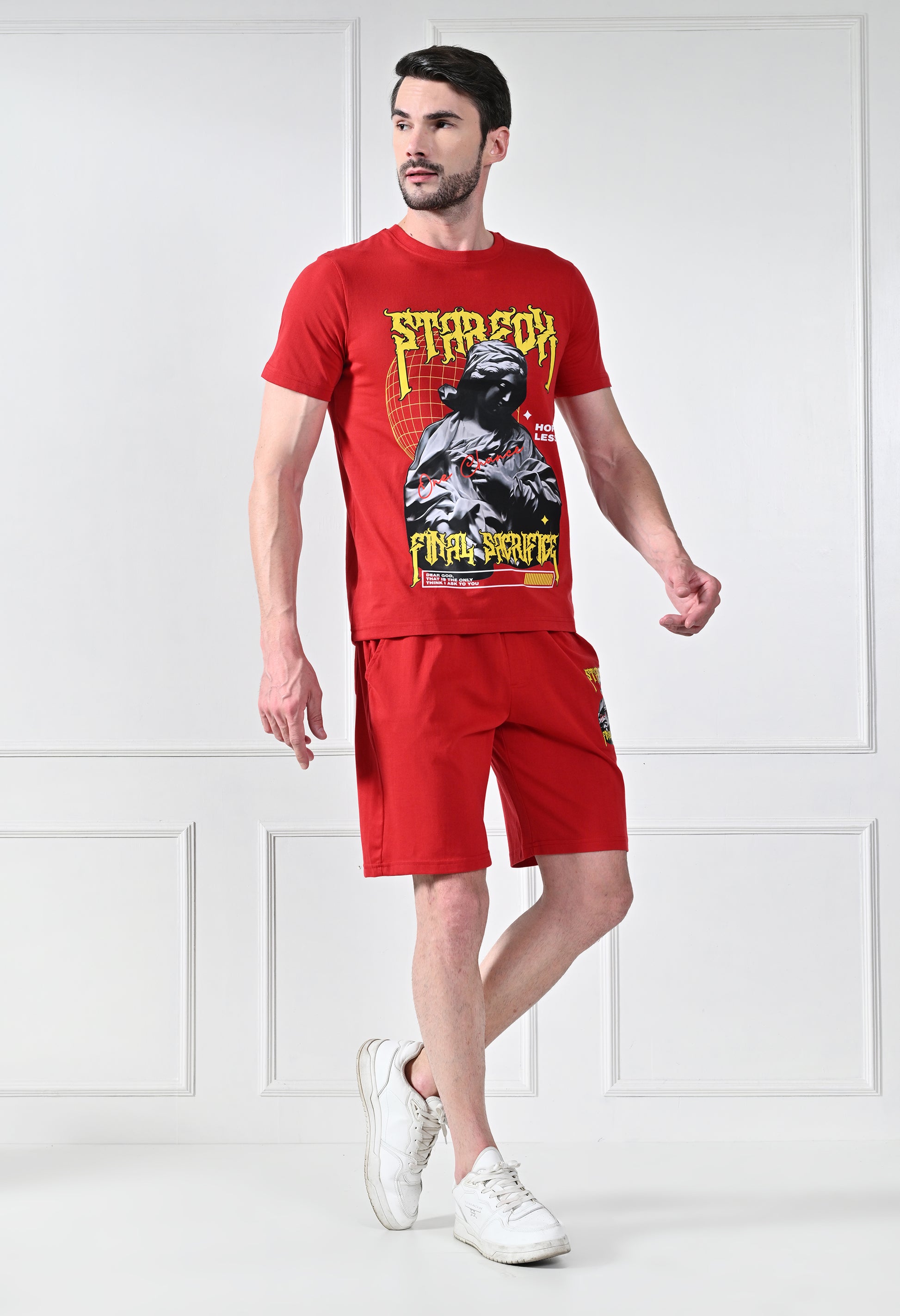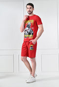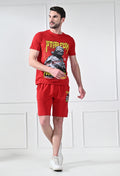 Red Printed T-Shirt With Shorts Co-Ord Set