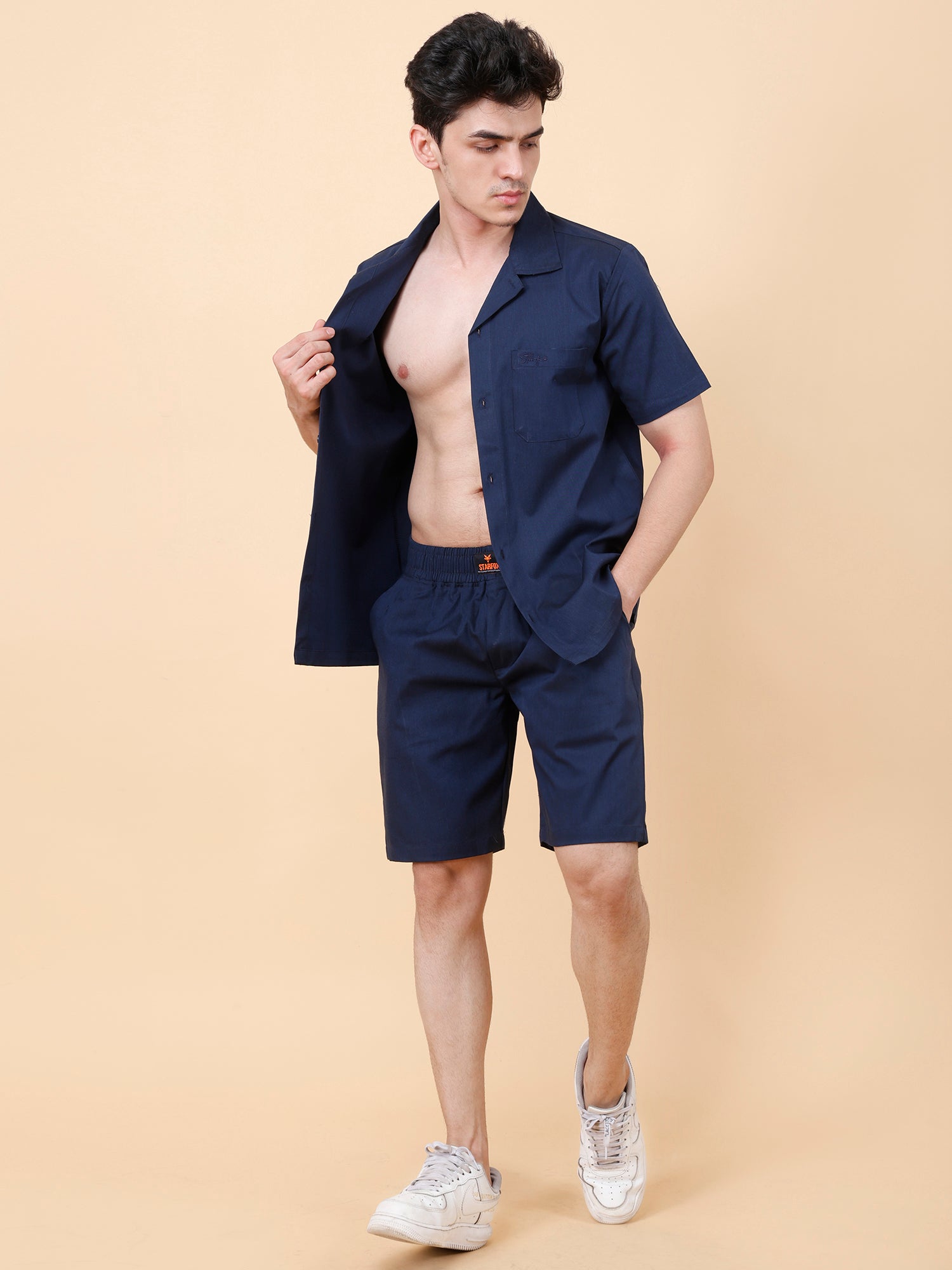 Get ready to rock the perfect duo with our Navy Shirt and Shorts Co-ord Set! Made with pure cotton, this set is not only ideal for all-day wear but also boasts a slim fit for a flattering look. Plus, with the added bonus of insert pockets and premium fabric, this set is both practical and stylish.