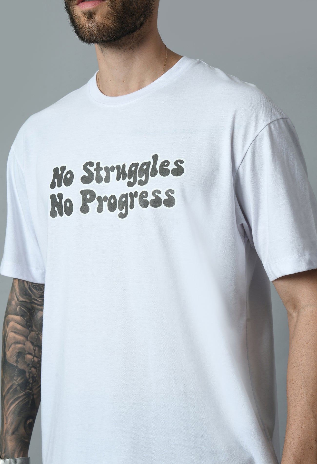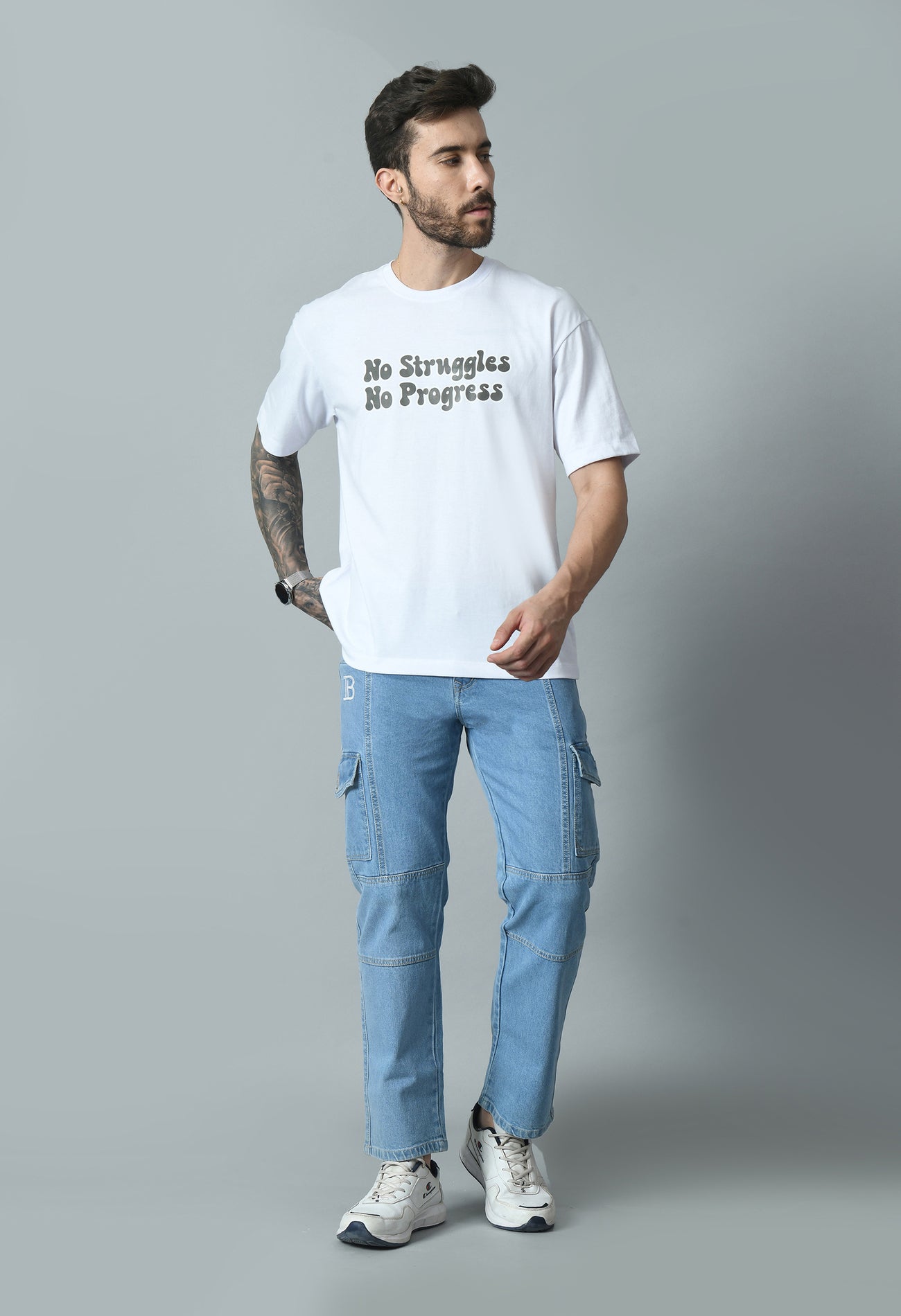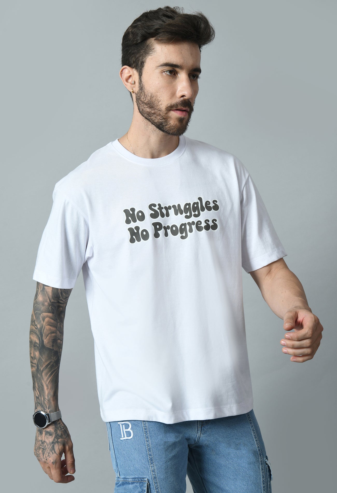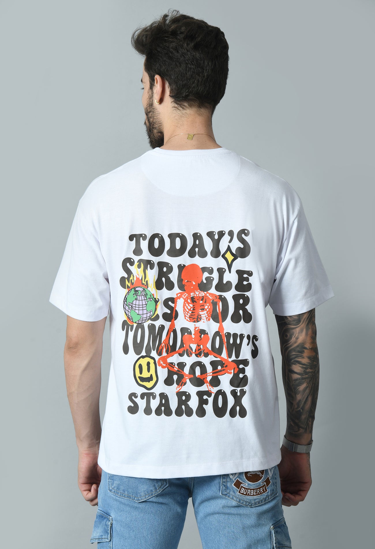 Introducing Today's Struggle Printed Oversized T-shirt. Made from 240 gsm cotton biowash fabric, this T-shirt is preshrunk and features no fade fabric. With trendy and quirky prints, an oversized fit, and a perfect day-to-day wear option, pair it with jeans or joggers for the ultimate comfort and style.