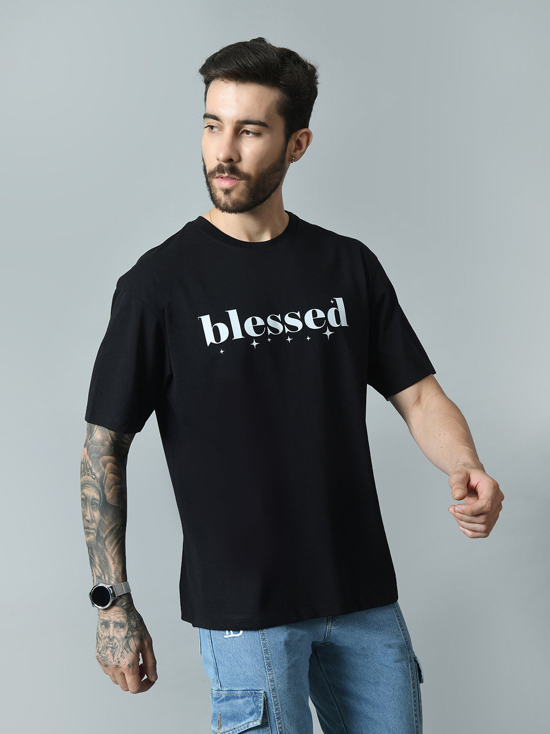 Looking for a fun and stylish addition to your wardrobe? Our Blessed Printed Oversized T-shirt has got you covered! Made with 240 gsm cotton biowash fabric, this preshrunk t-shirt features trendy and quirky prints that won't fade. Its oversized fit is perfect for day to day wear and pairs perfectly with jeans or joggers. Get ready to stand out in style!