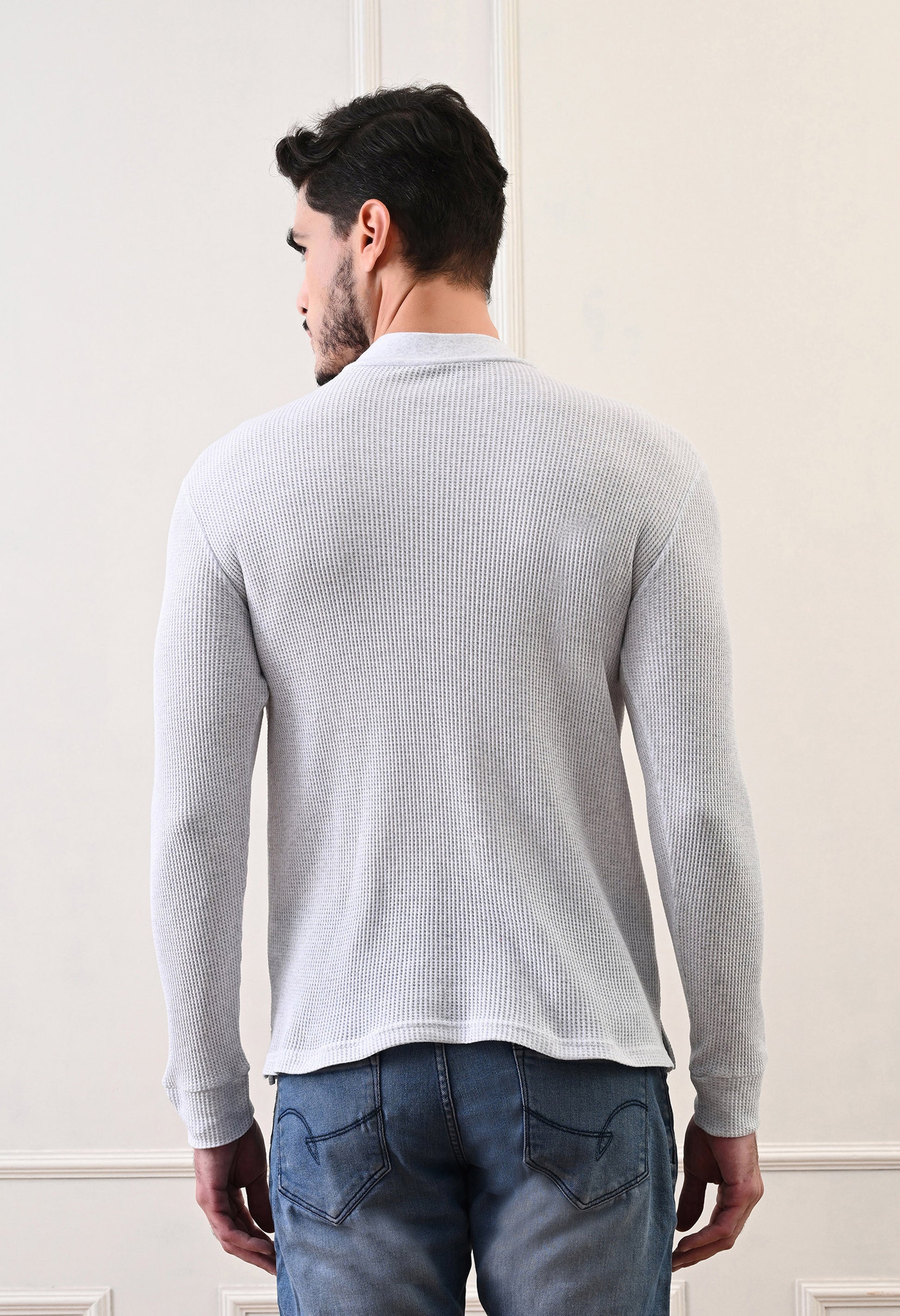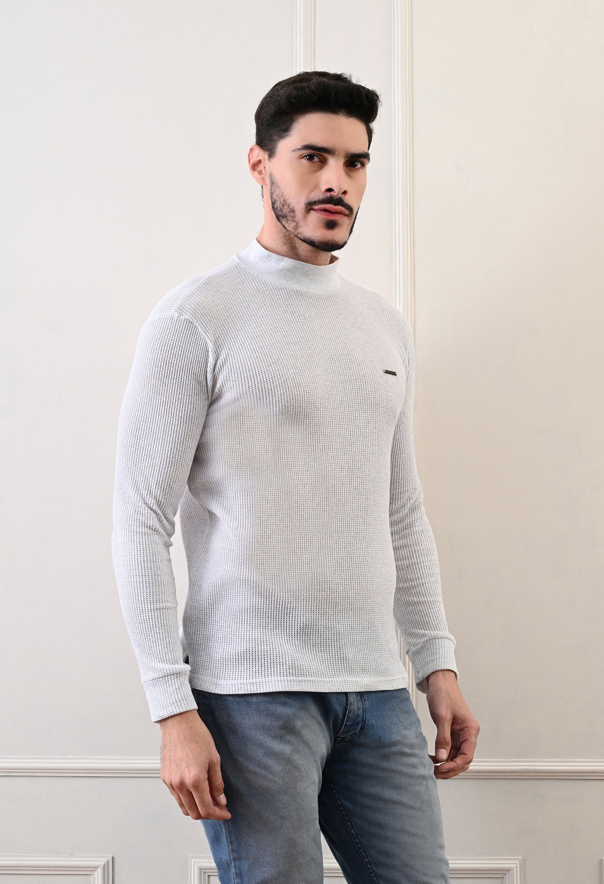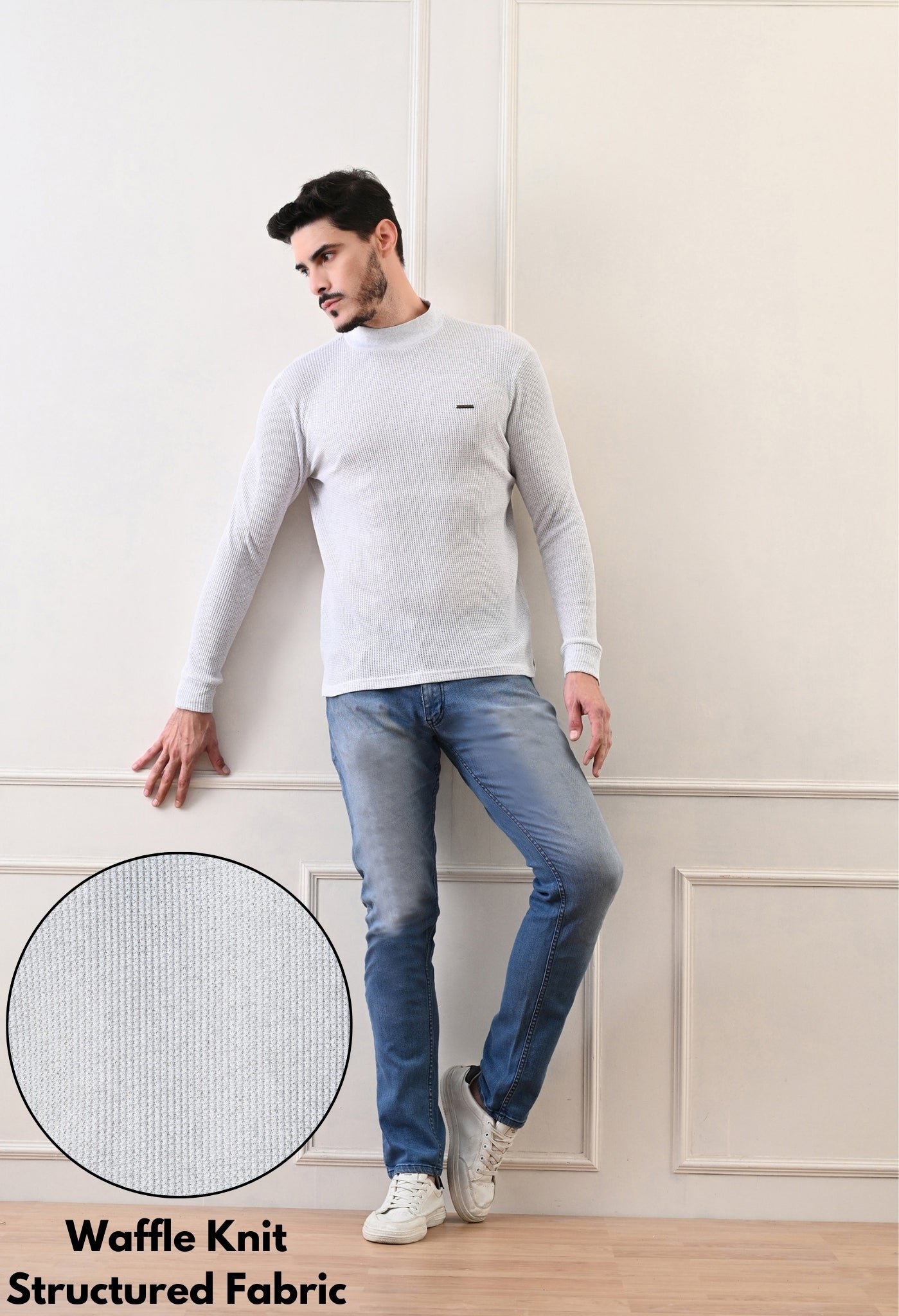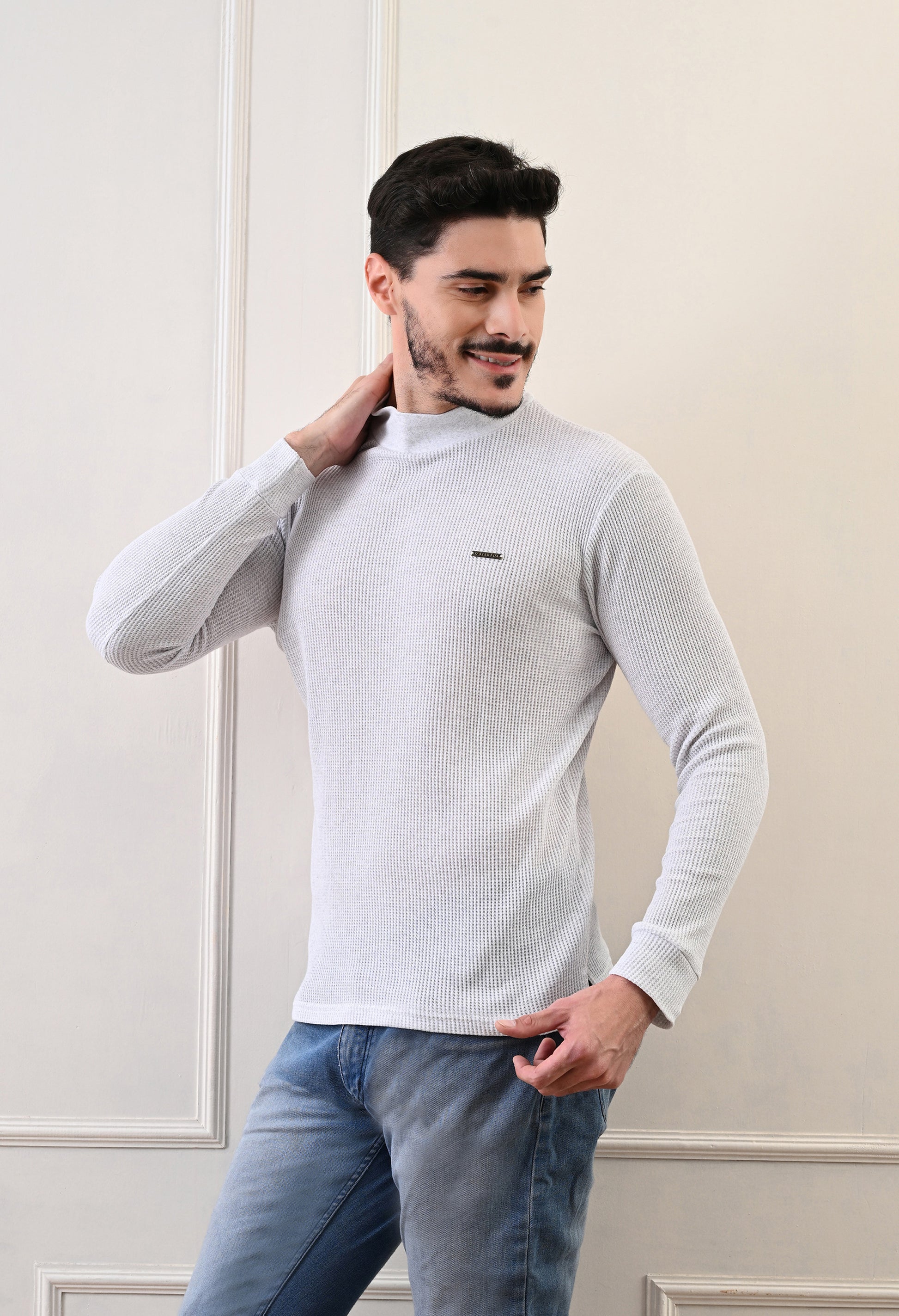 Men's Turtle Neck Textured Full Sleeve T-shirt