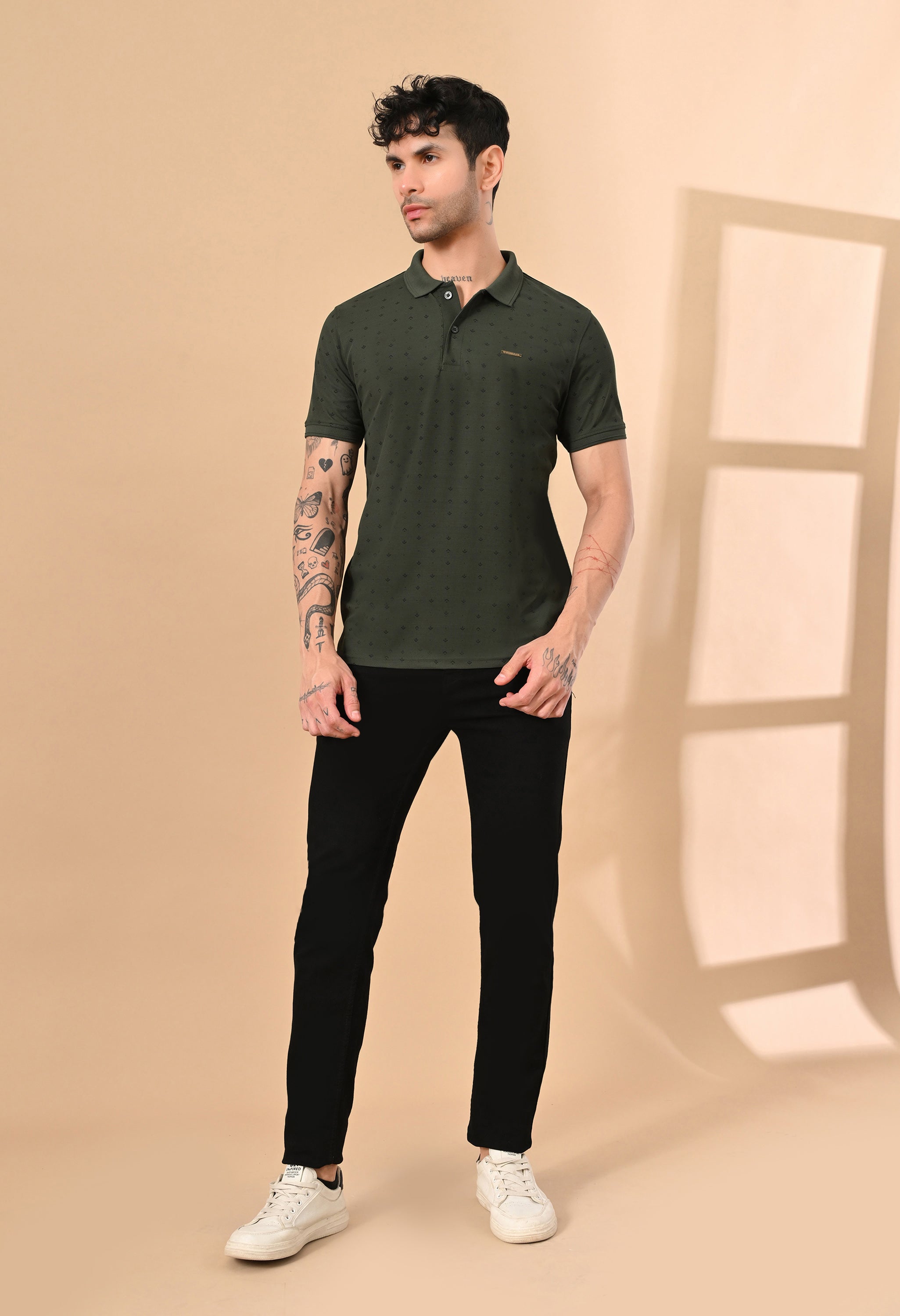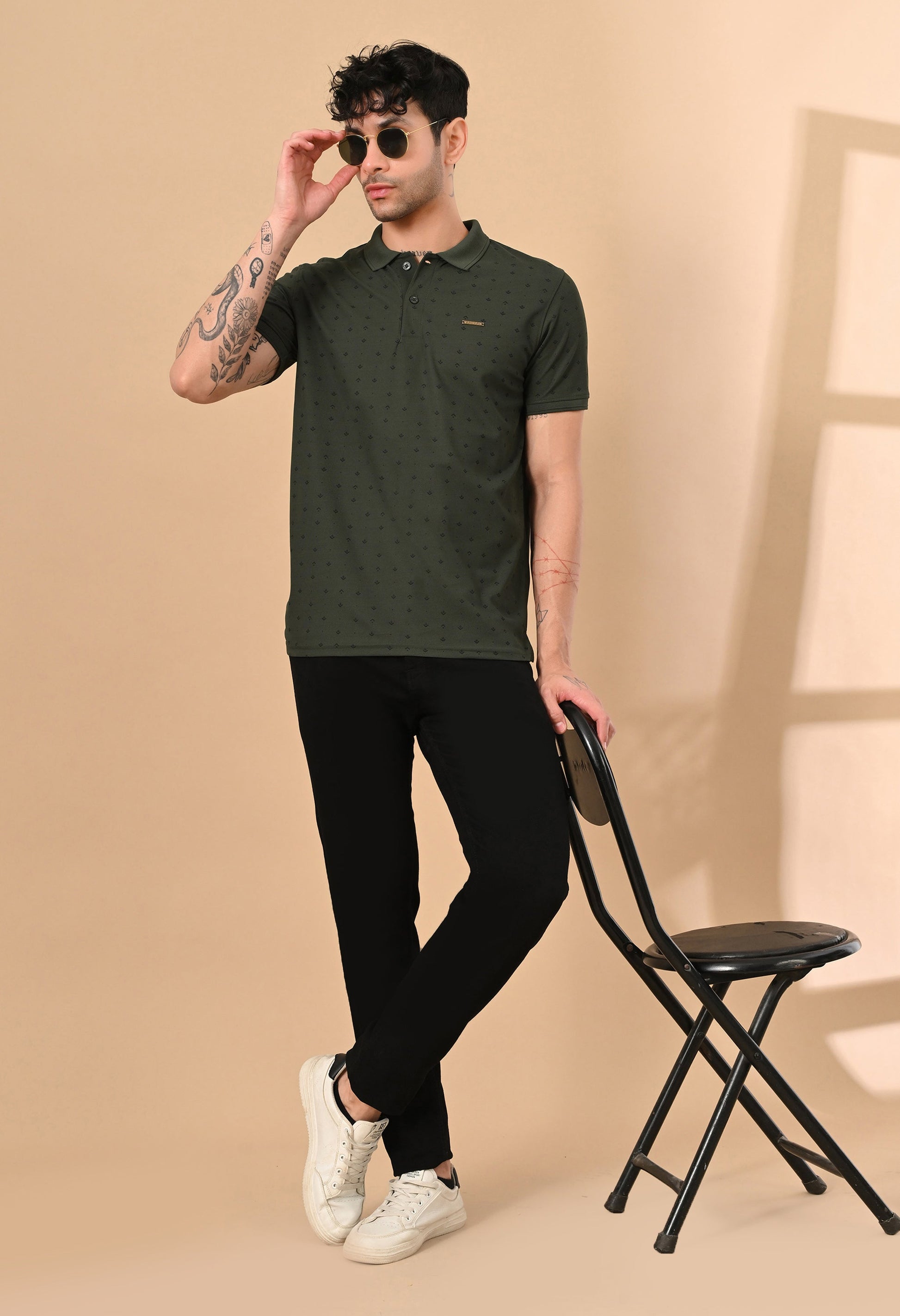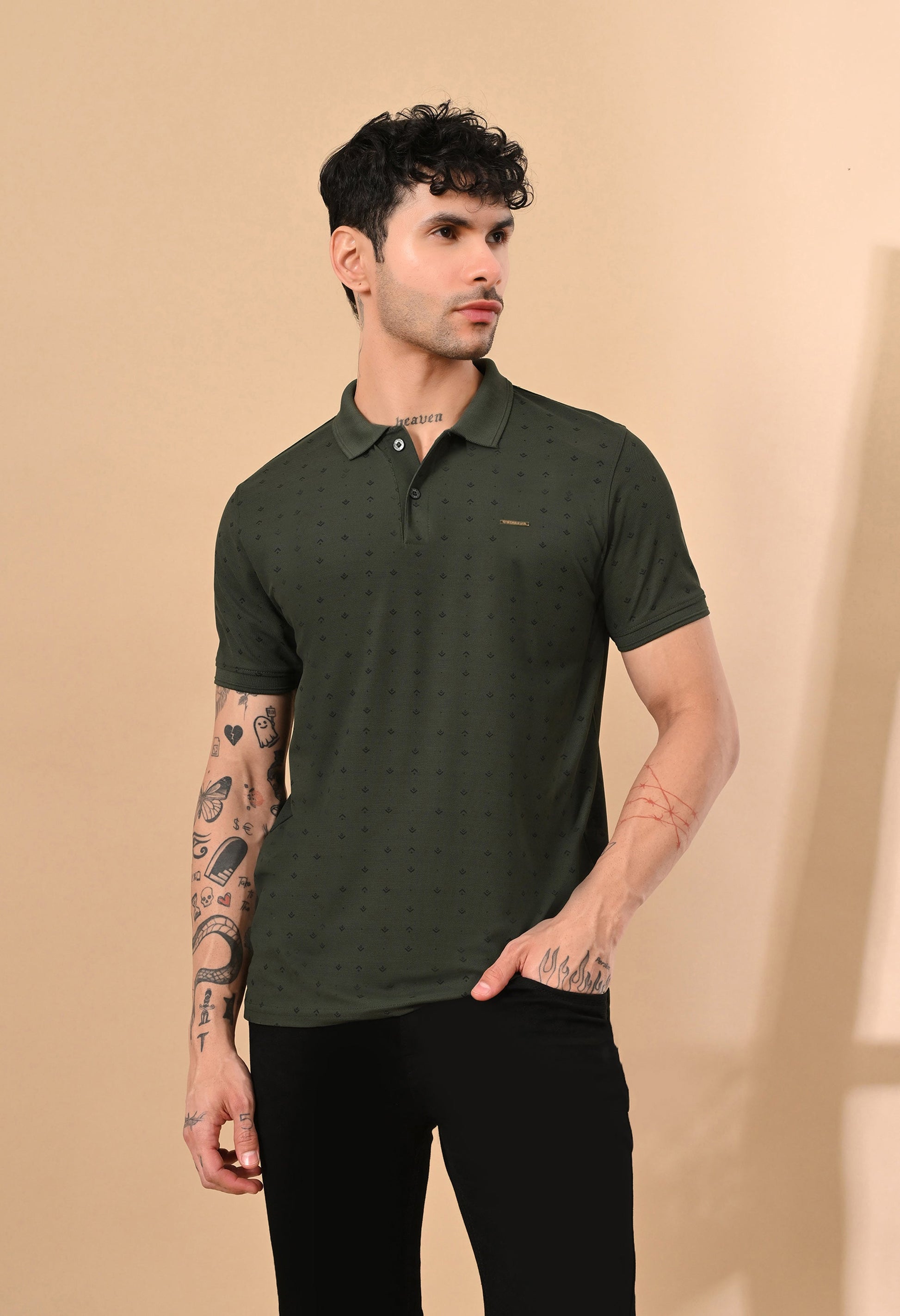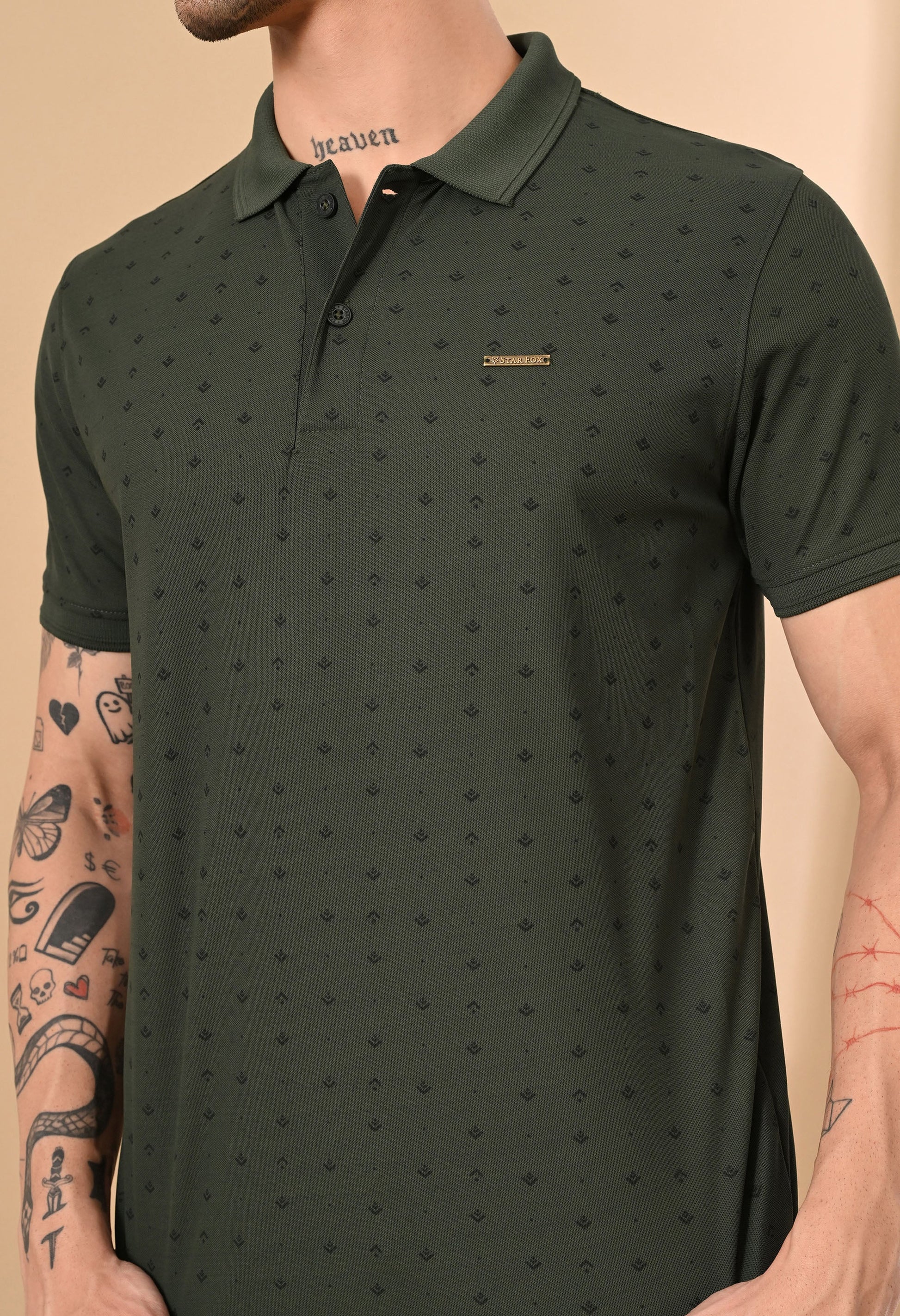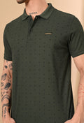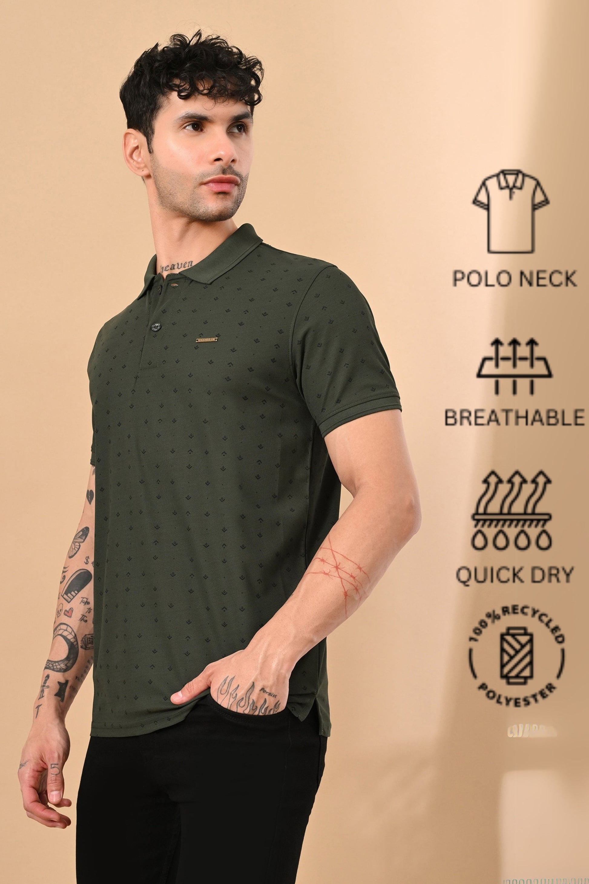 MOSS GREEN ALL OVER PRINTED DRY-FIT POLO
