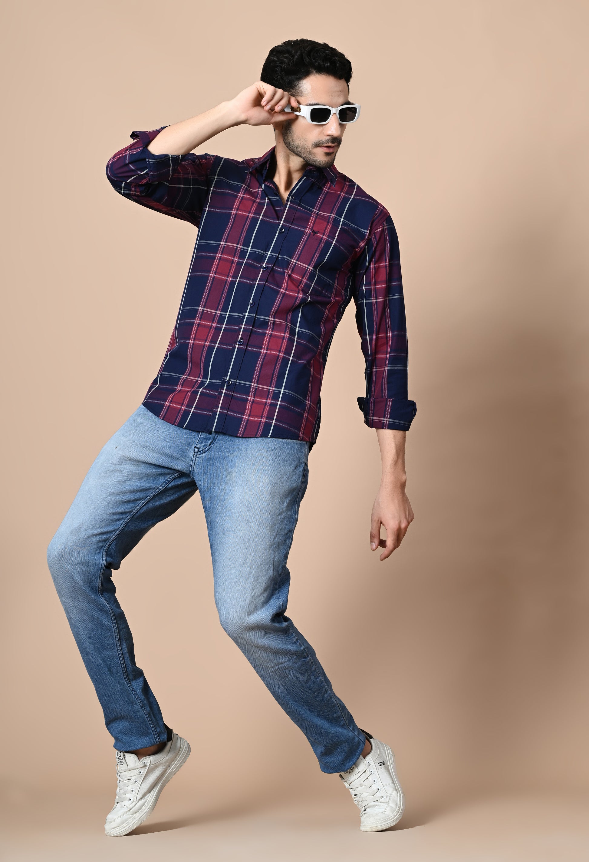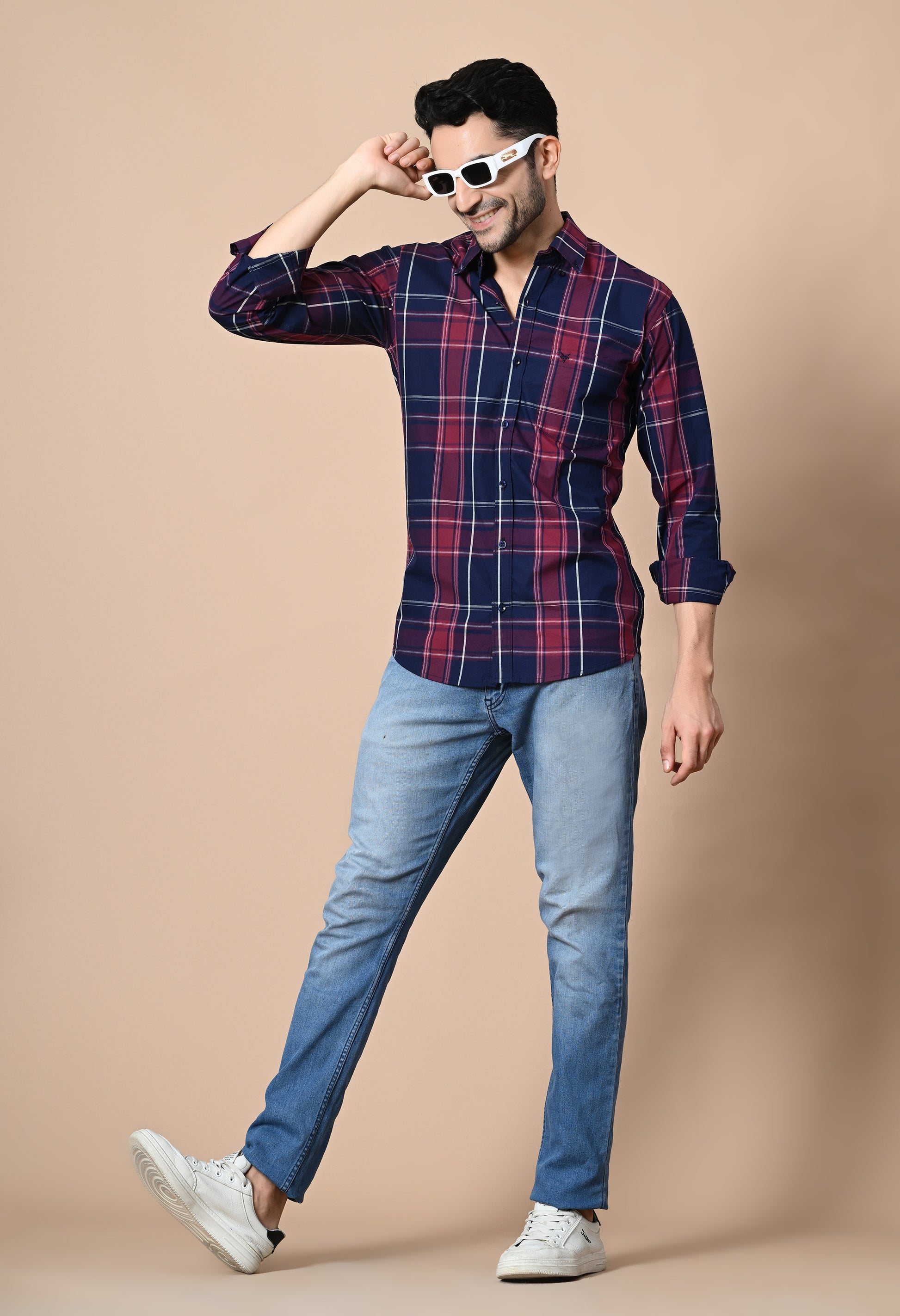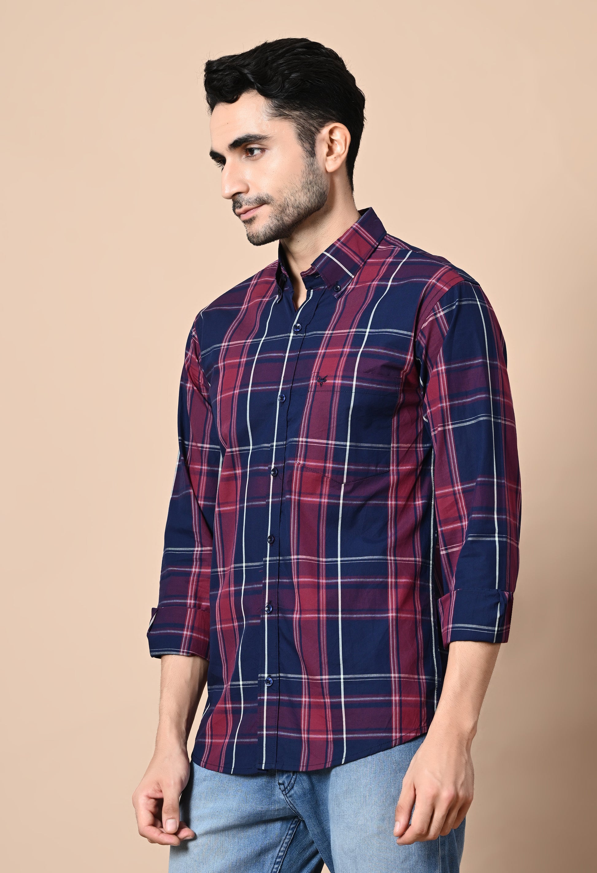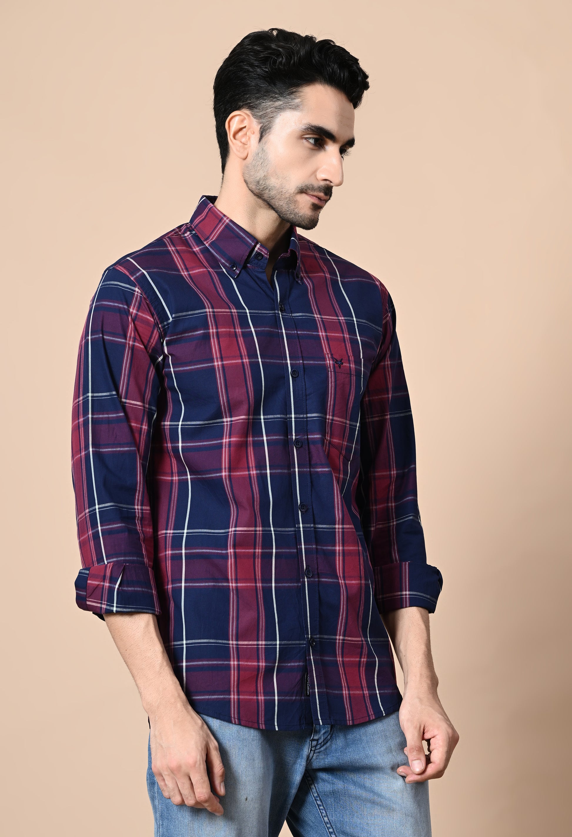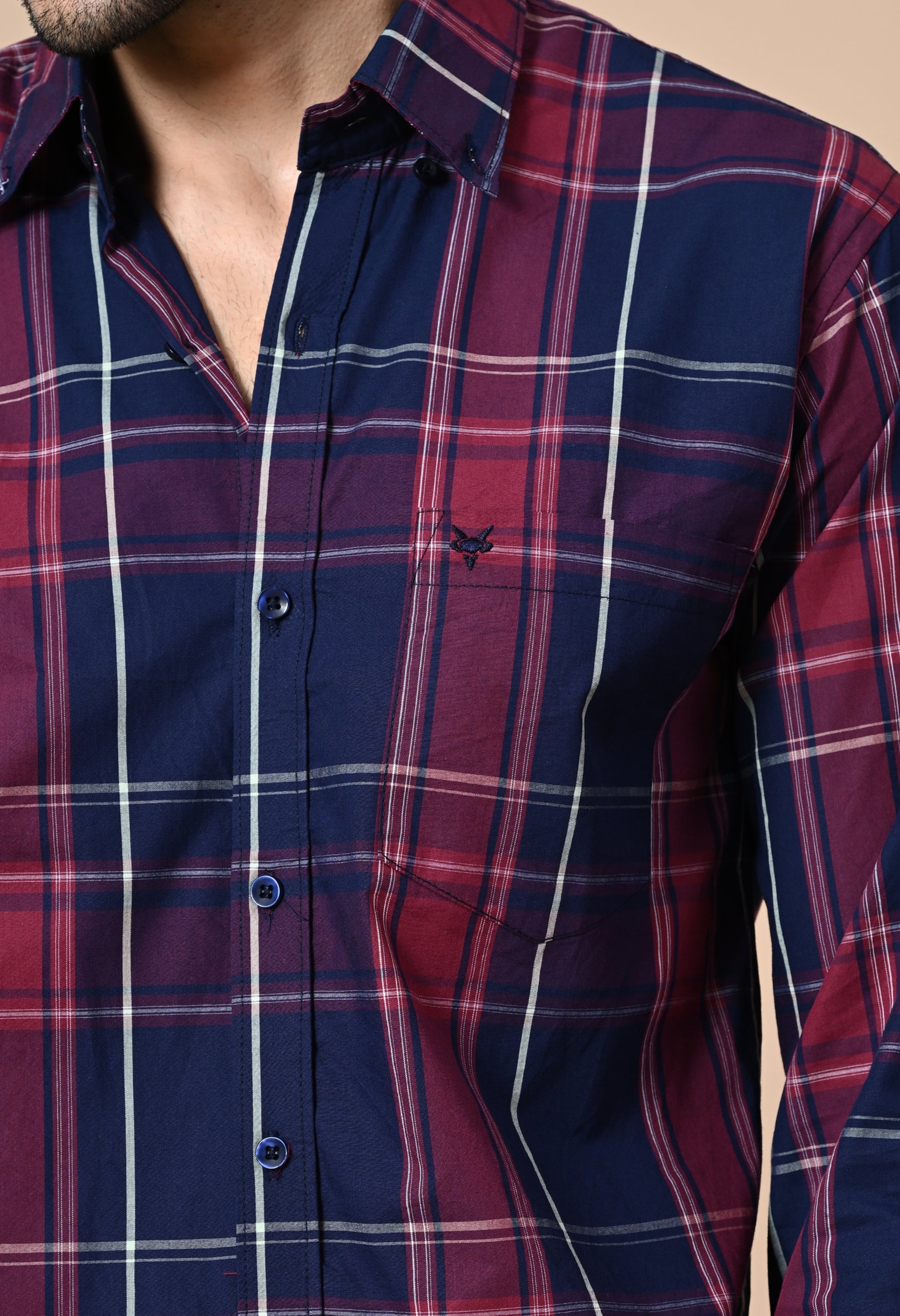 Experience style and sophistication with our Navy and Maroon Checked Formal Shirt! Designed for men, this shirt adds a touch of elegance to any formal outfit. Stand out with the contrasting navy and maroon checks, perfect for any occasion. Embrace your unique sense of fashion with this must-have shirt.