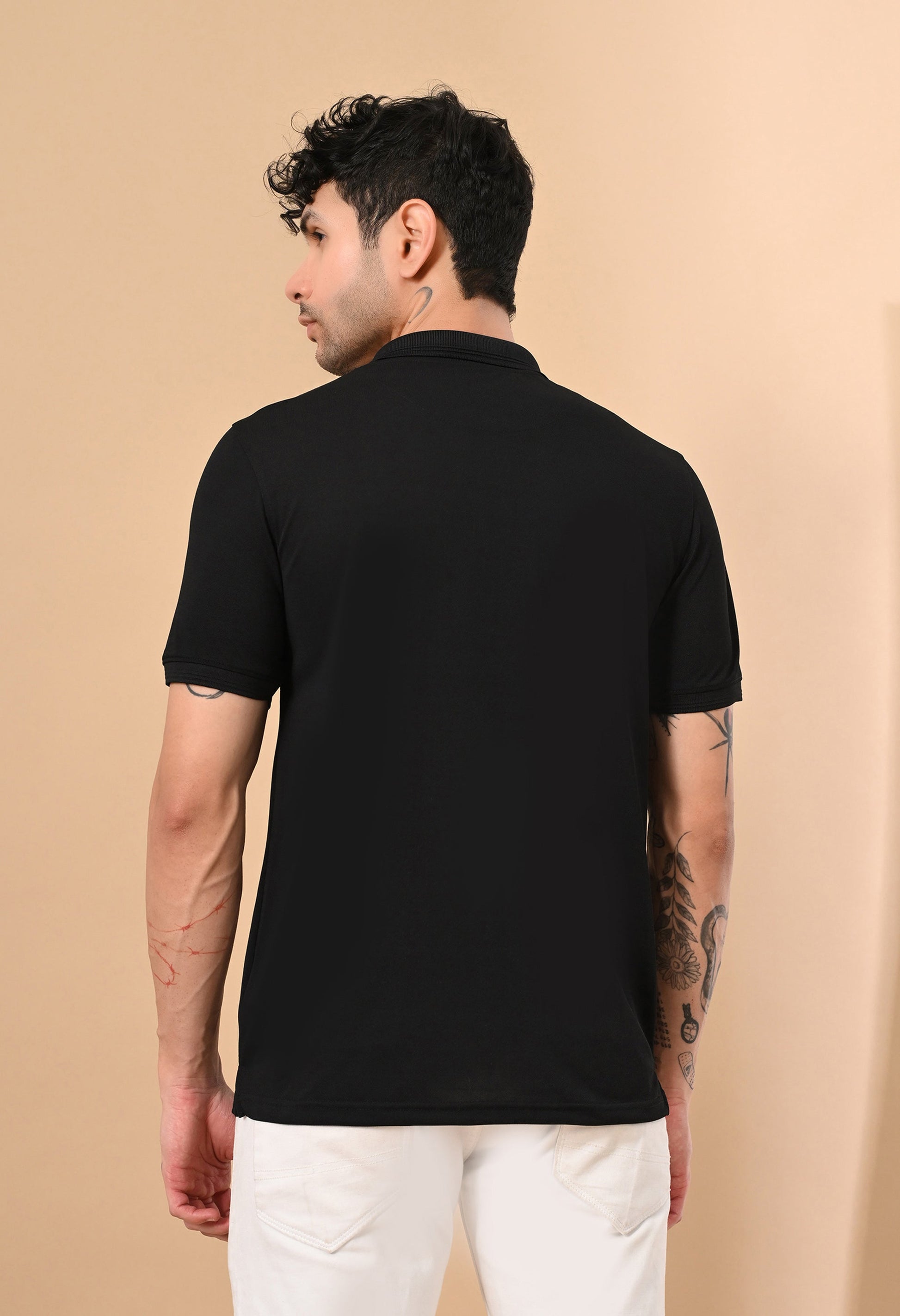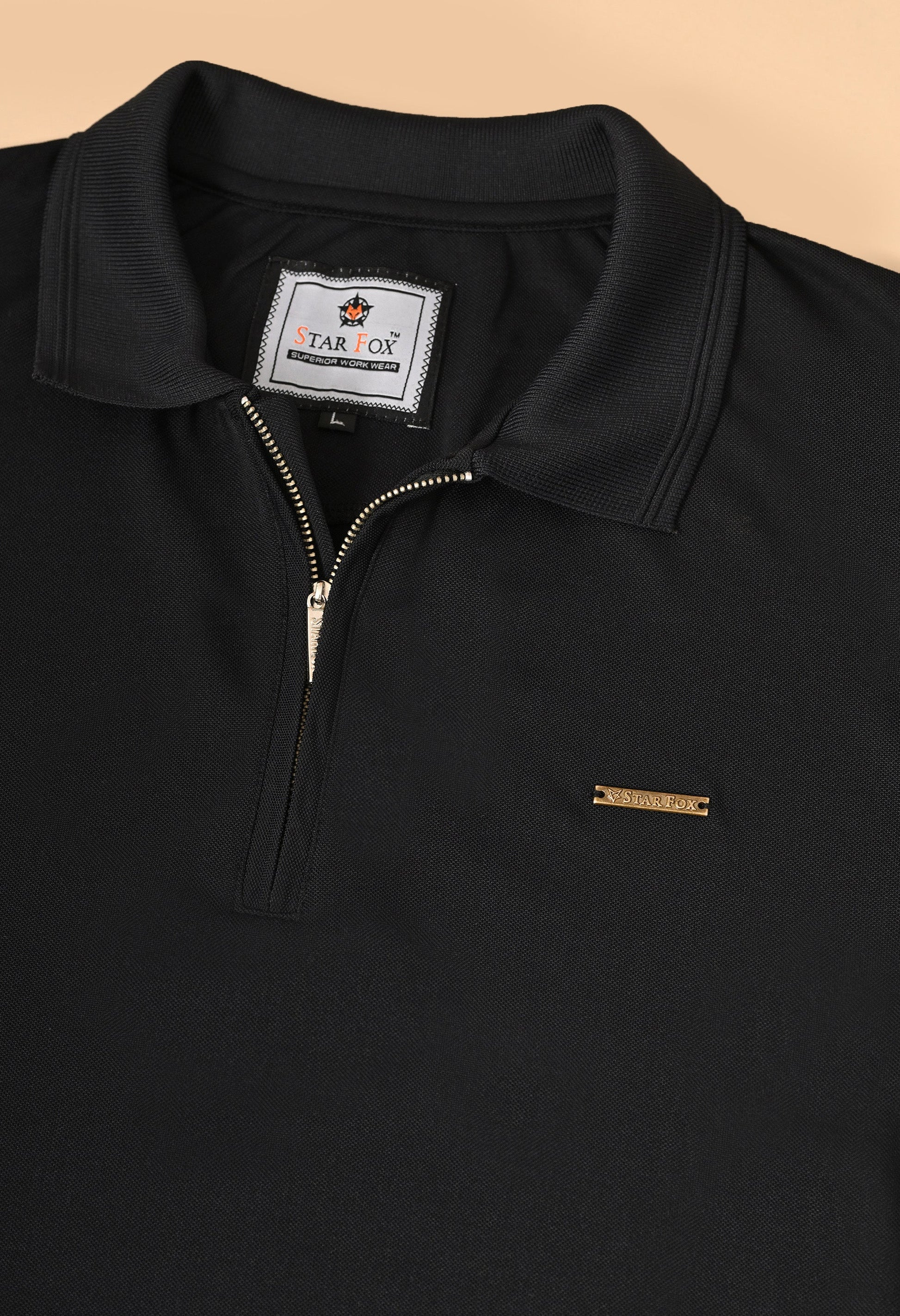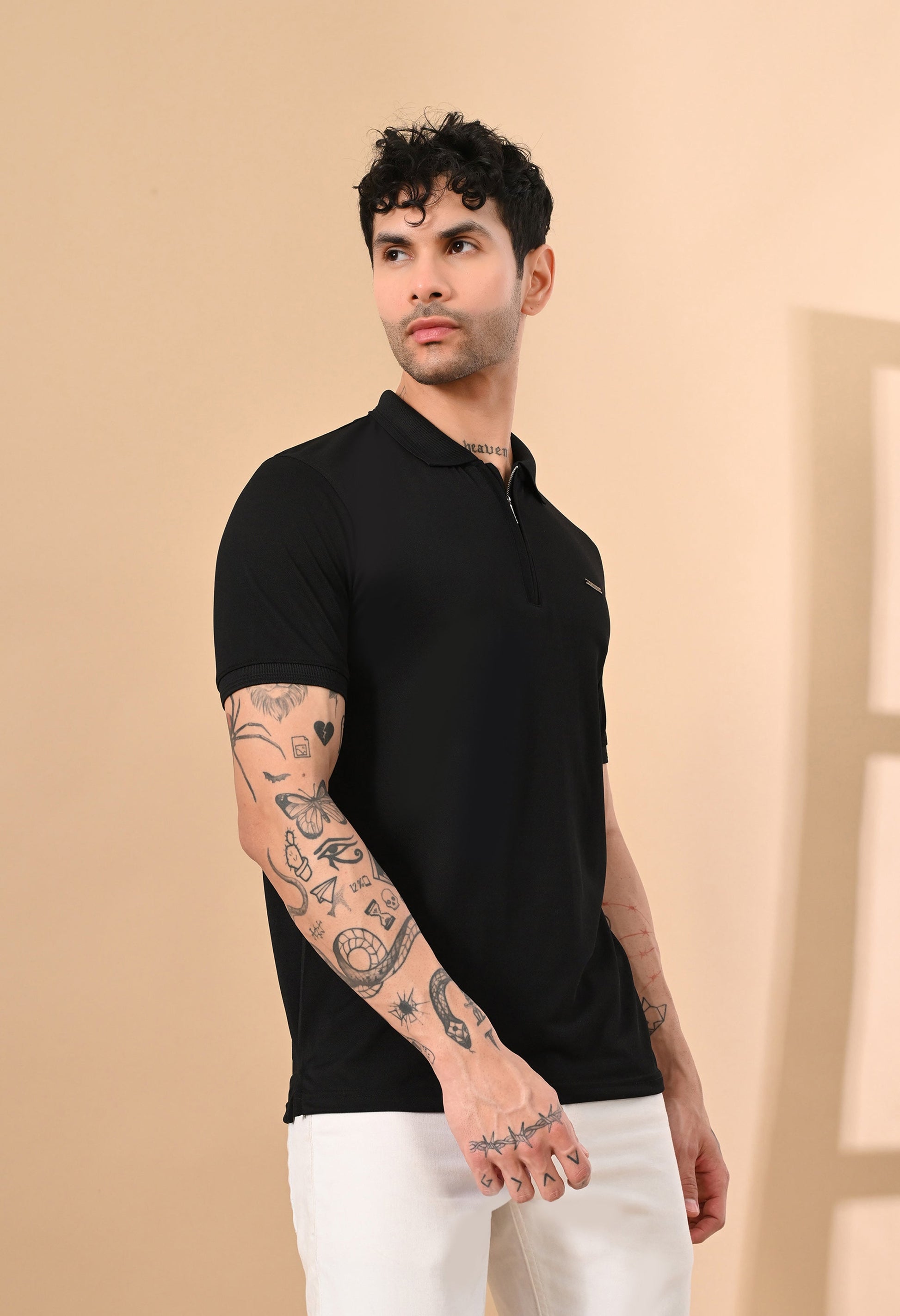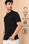 RAVEN BLACK ZIPPER POLO DRY FIT FABRIC