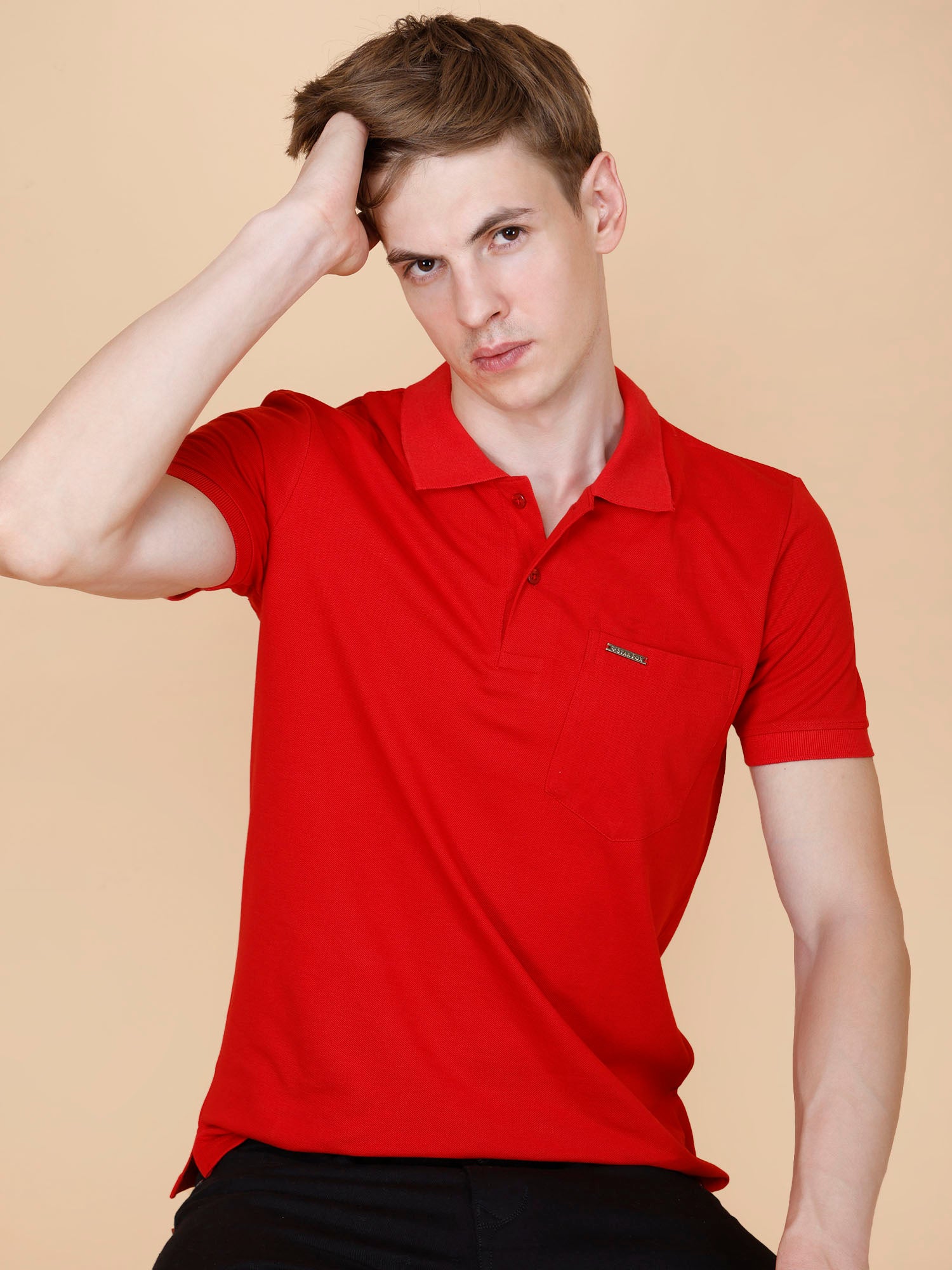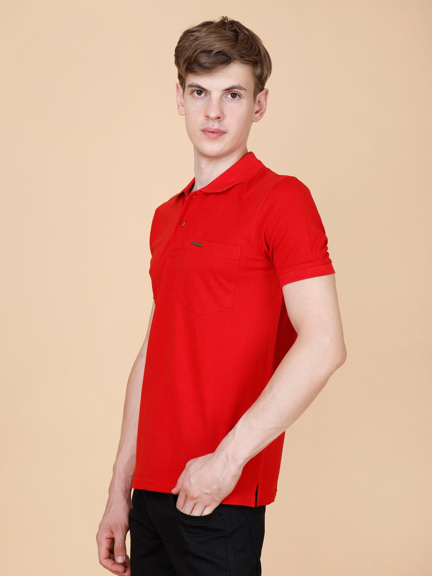 Stay stylish and comfortable with our Red Polo Neck Half Sleeve T-Shirt. Made from a soft cotton blend fabric for ultimate comfort. Perfect for any occasion, this T-Shirt is a must-have in your wardrobe. Upgrade your style game with this versatile piece.
