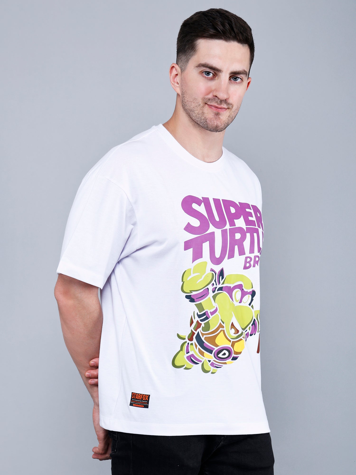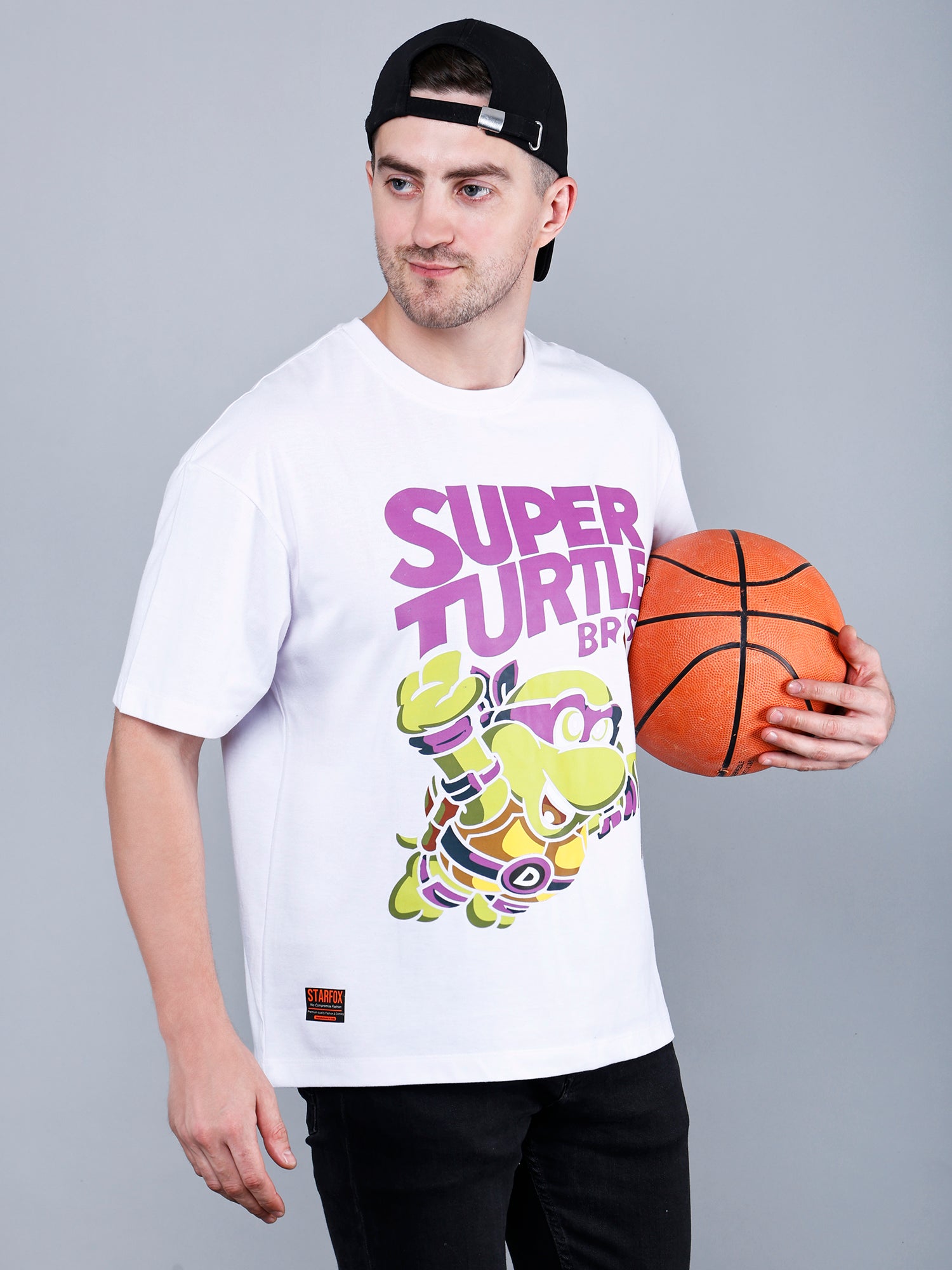 Unleash your whimsical side with our Super Turtle Printed Oversized T-Shirt! Made with 240 gsm cotton biowash fabric, this tee is preshrunk and boasts no-fade technology. The trendy and quirky prints add a unique touch, while the oversized fit provides ultimate comfort. Perfect for day to day wear, pair it with jeans or joggers for a fun and playful look.