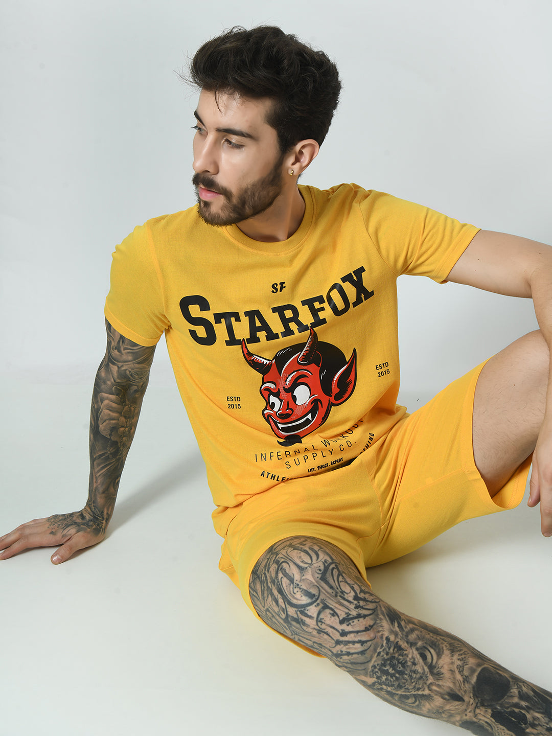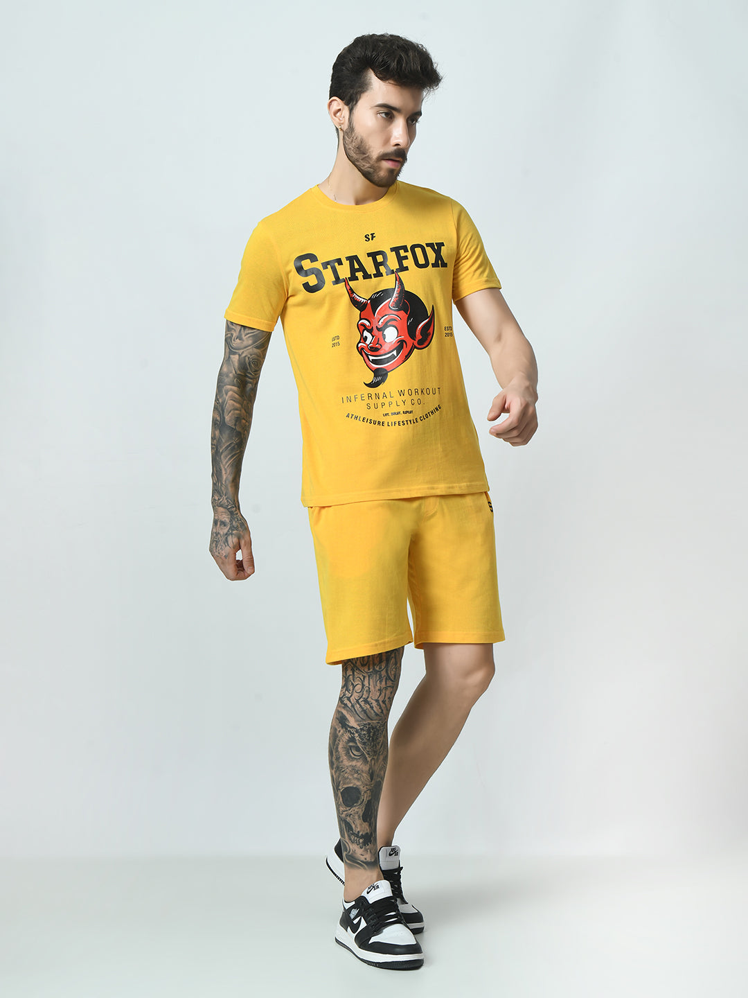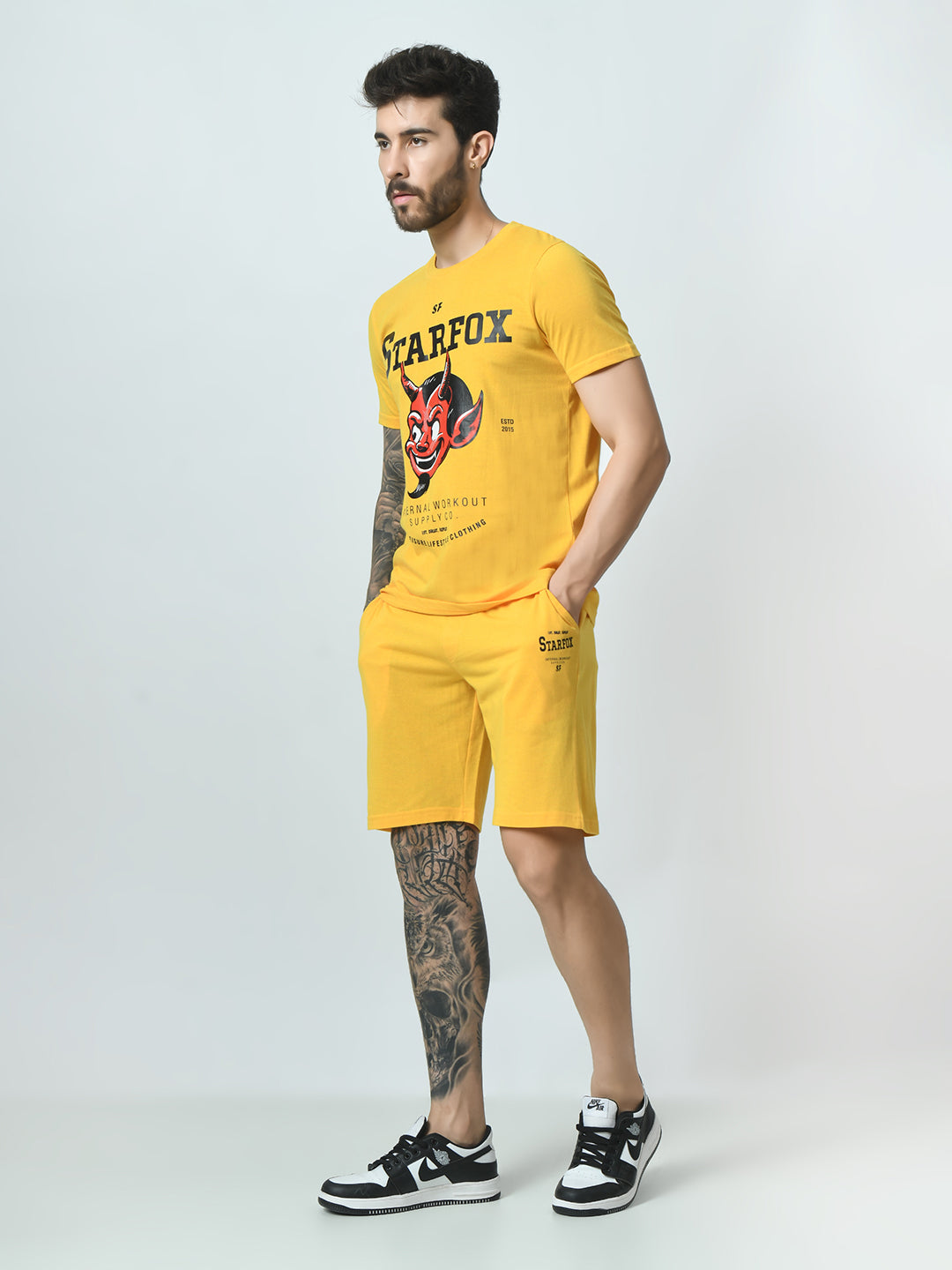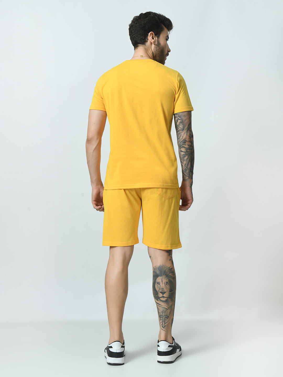 Elevate your wardrobe with our Mustard Yellow Printed T-shirt and Shorts Co-ord Set. Made with pure cotton for all-day comfort, this slim fit set is the epitome of luxury. Featuring a vibrant mustard yellow color and convenient pockets, it's the perfect choice for any occasion. Upgrade your style with this timeless and versatile set.